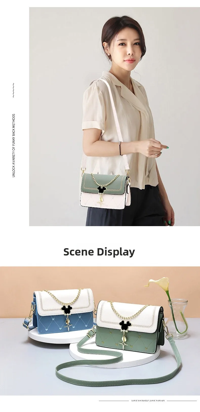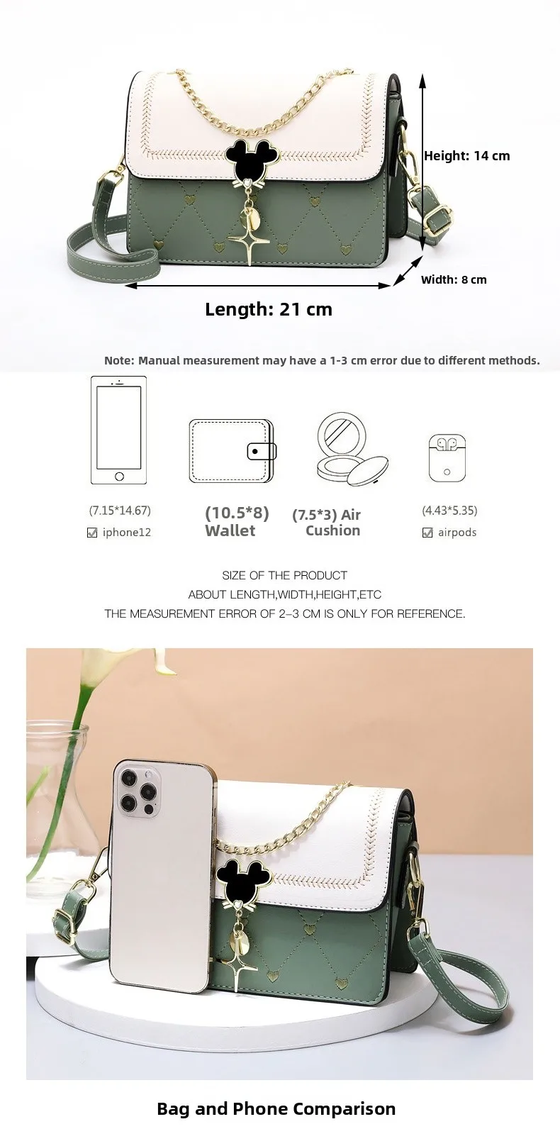 Este pequeno bolso quadrado apresenta um estilo moderno e elegante, perfeito para qualquer ocasião.