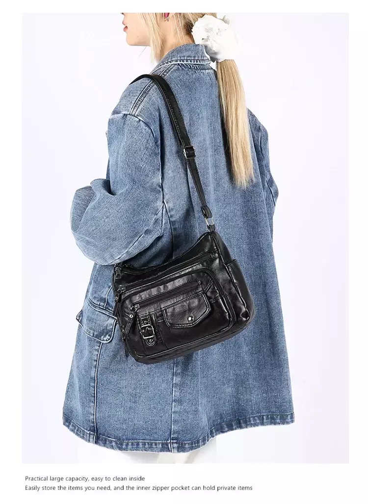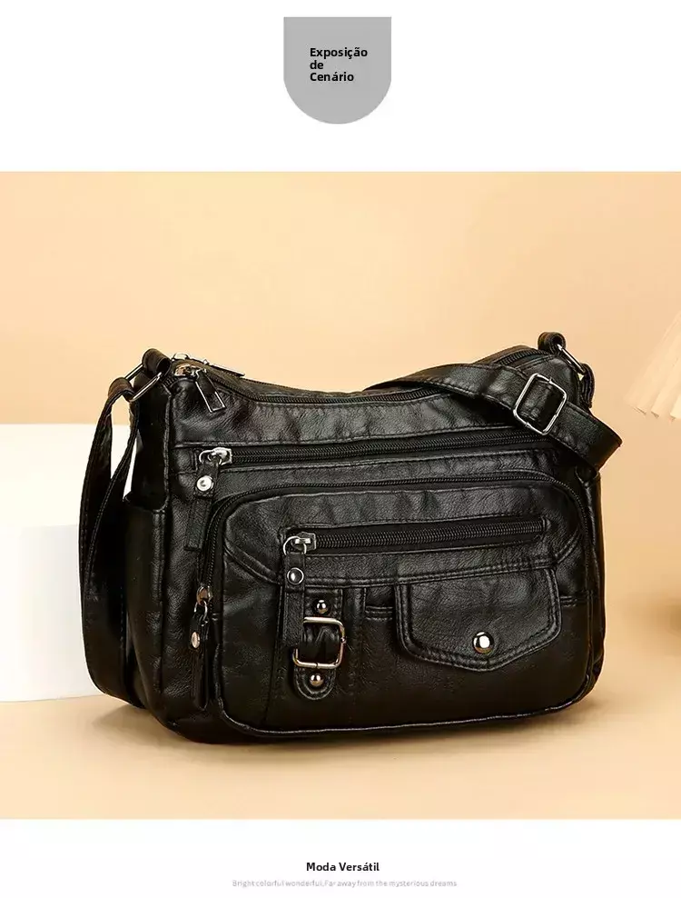 Feita de material PU, esta bolsa é durável e resistente, garantindo um longo tempo de uso.