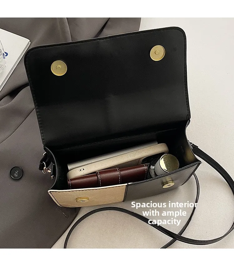 Este pequeno bolso quadrado apresenta um design retro e moderno, perfeito para quem gosta de combinar estilo com funcionalidade.