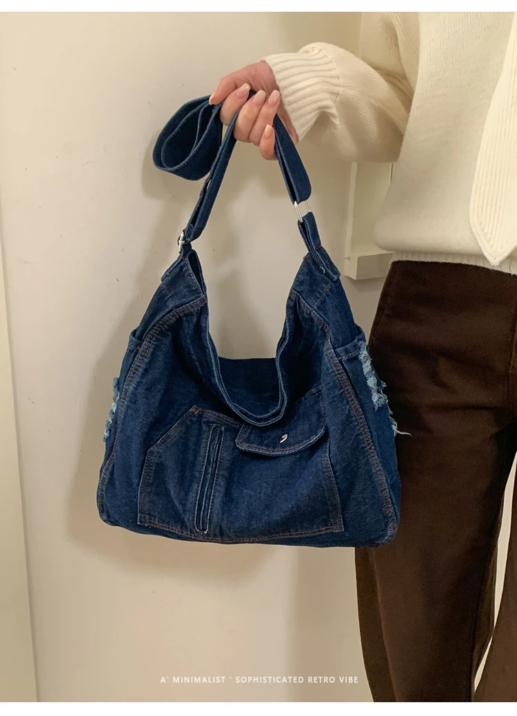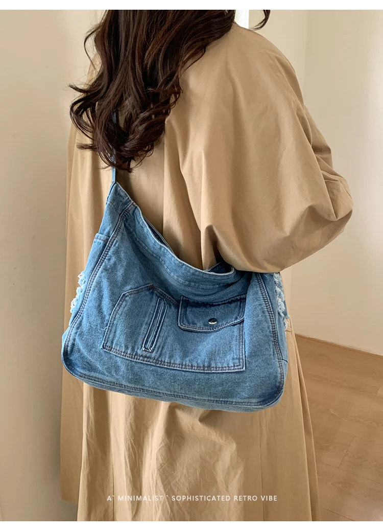 Traga um toque despojado e autêntico ao seu look com a nossa Bolsa Jeans Denim. Perfeita para mulheres modernas que adoram a versatilidade do tecido mais clássico do mundo. Combinando com praticamente qualquer peça do seu guarda-roupa, ela oferece um visual jovem, resistente e super prático para todas as ocasiões.