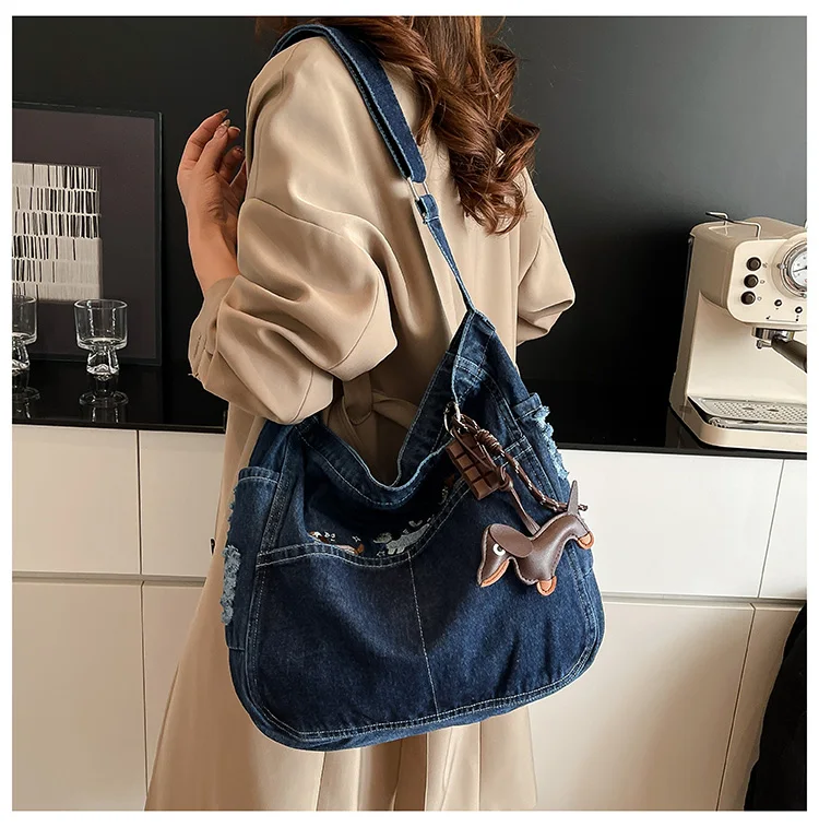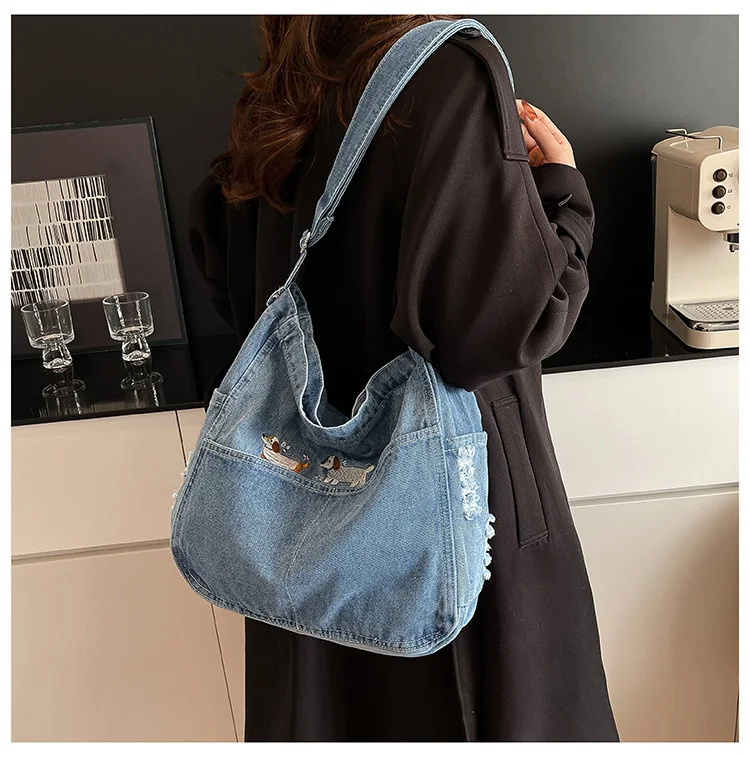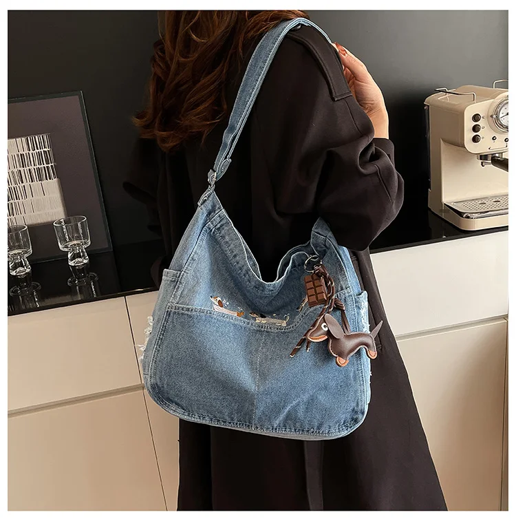 Traga um toque despojado e autêntico ao seu look com a nossa Bolsa Jeans Denim. Perfeita para mulheres modernas que adoram a versatilidade do tecido mais clássico do mundo. Combinando com praticamente qualquer peça do seu guarda-roupa, ela oferece um visual jovem, resistente e super prático para todas as ocasiões.