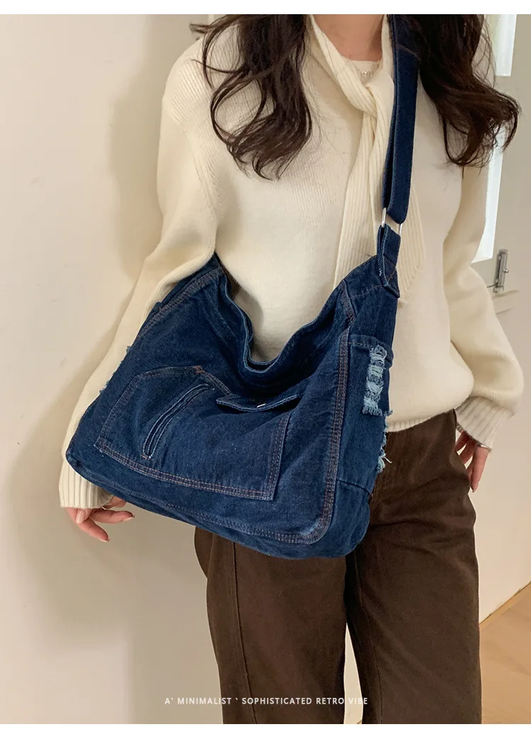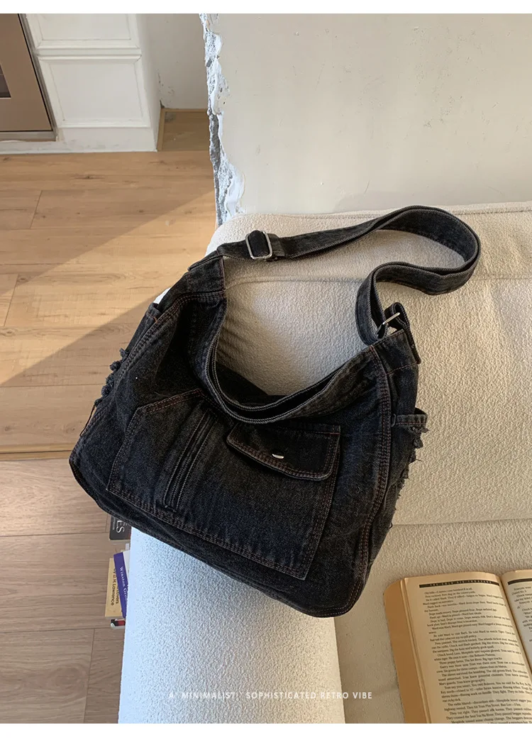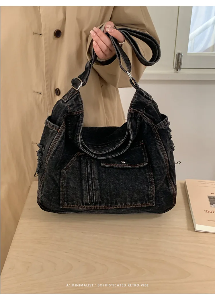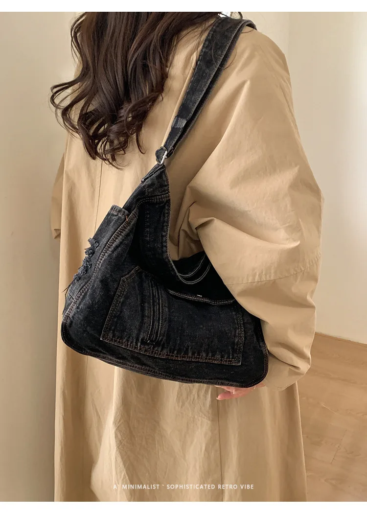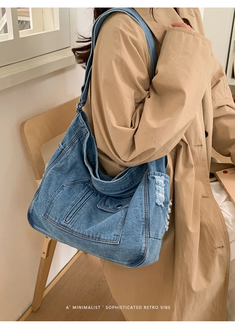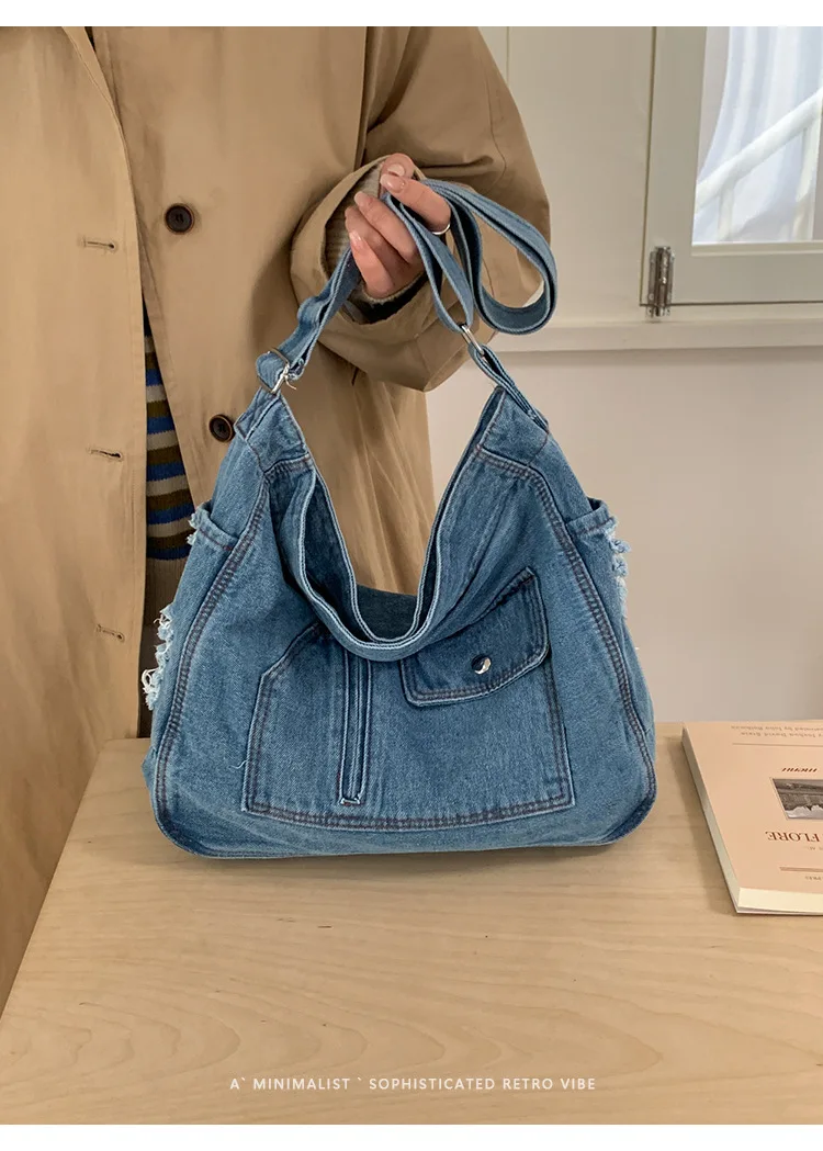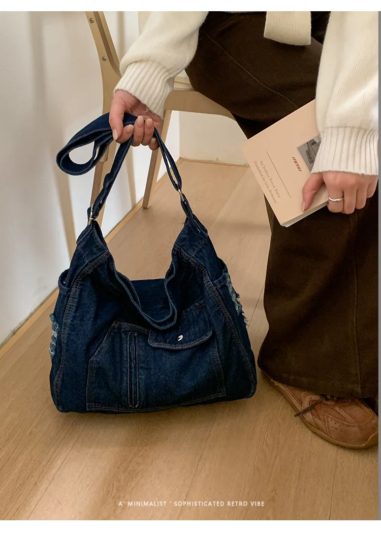 Abrace o charme do vintage com esta elegante bolsa jeans, perfeita para quem aprecia a estética retrô.