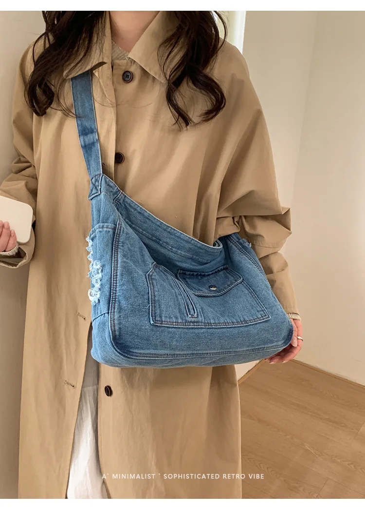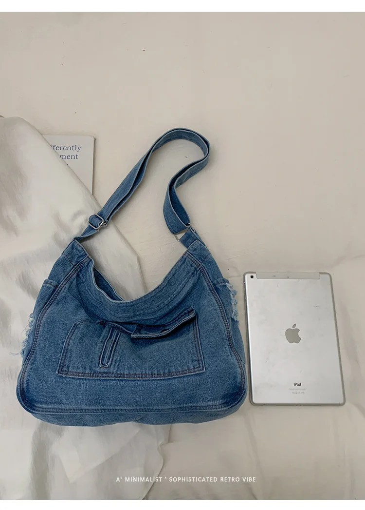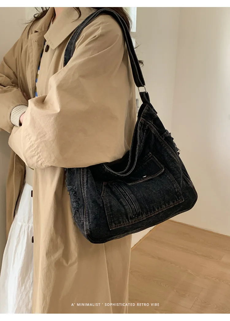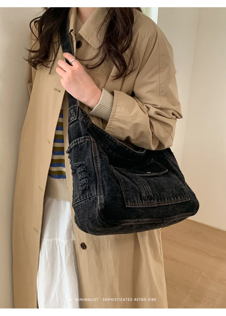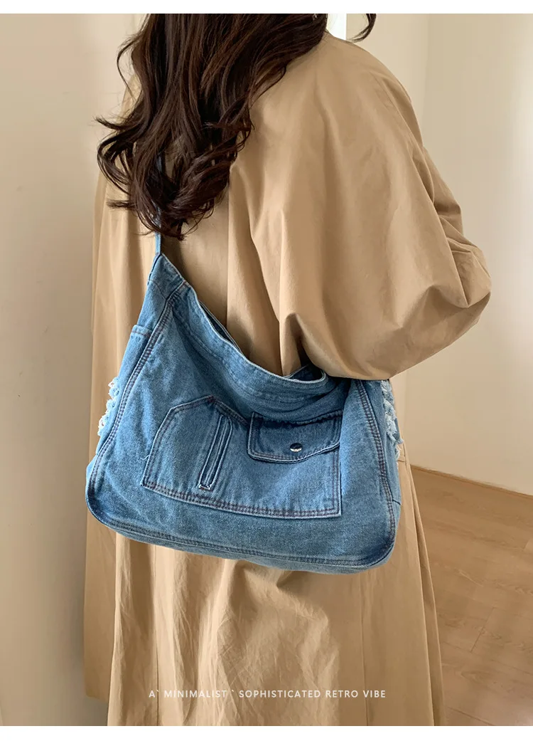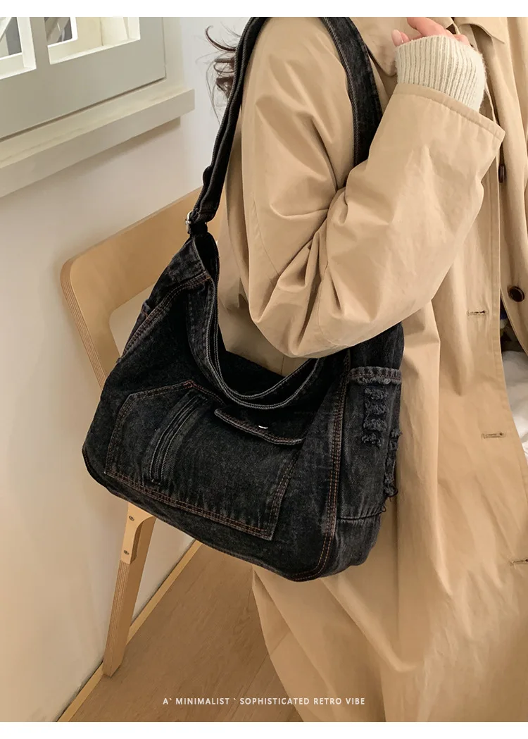 Abrace o charme do vintage com esta elegante bolsa jeans, perfeita para quem aprecia a estética retrô.