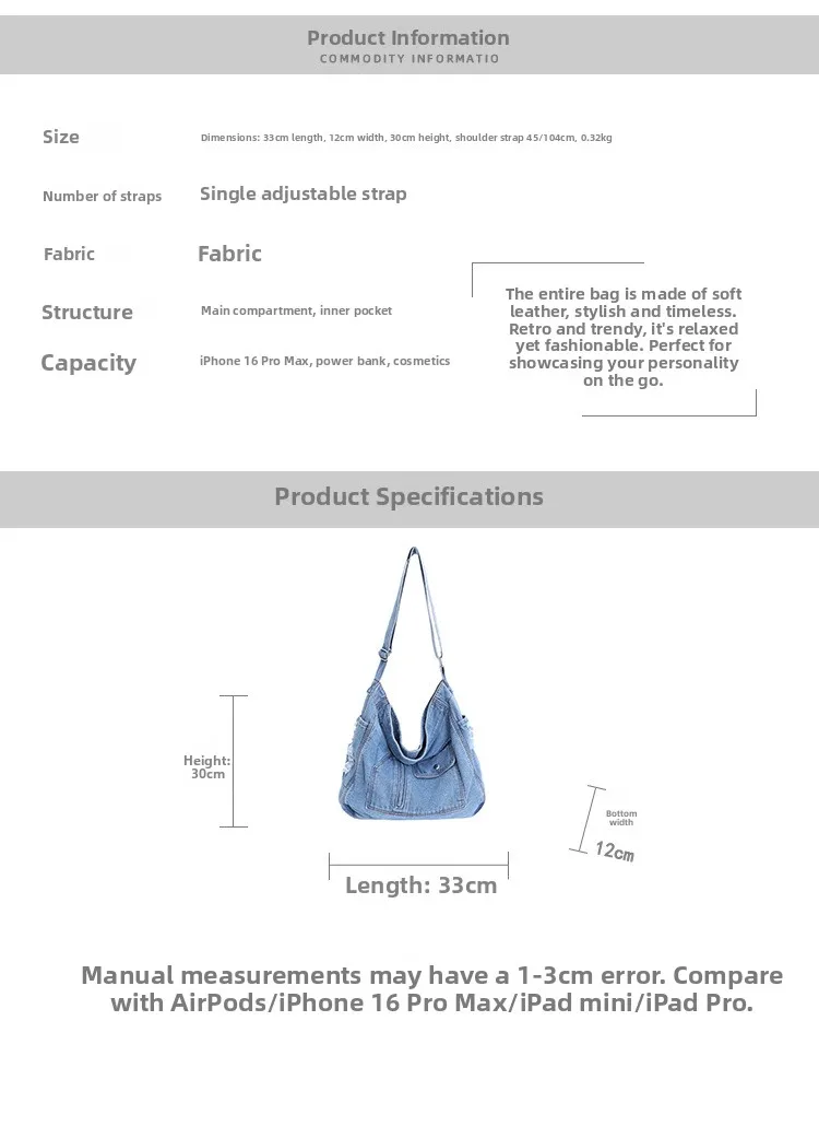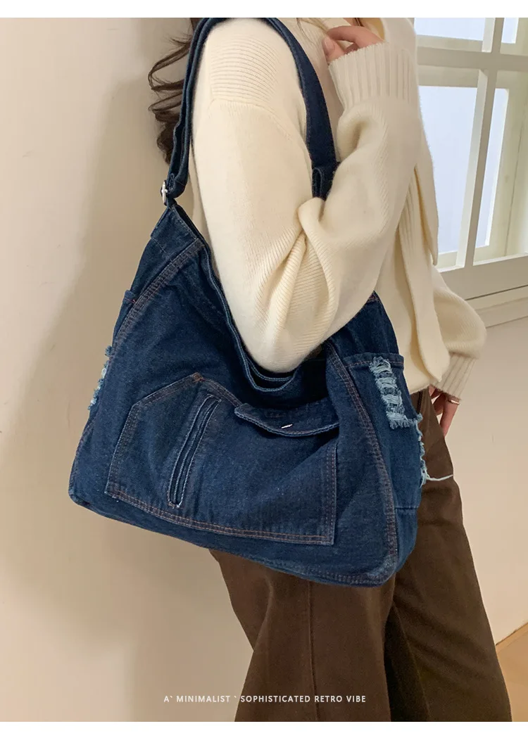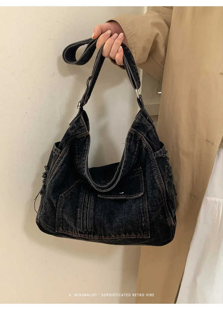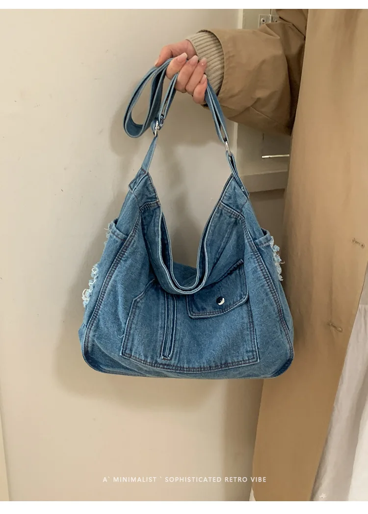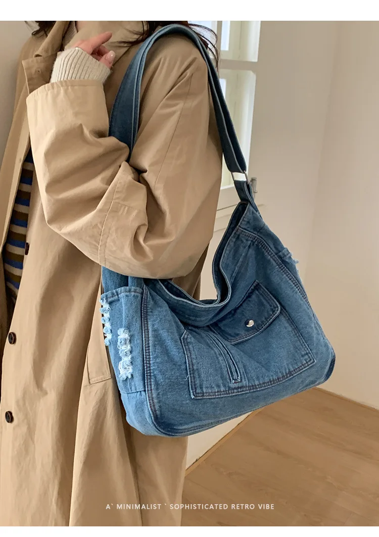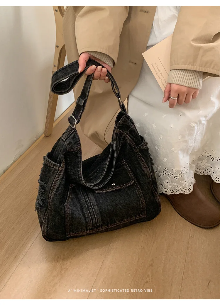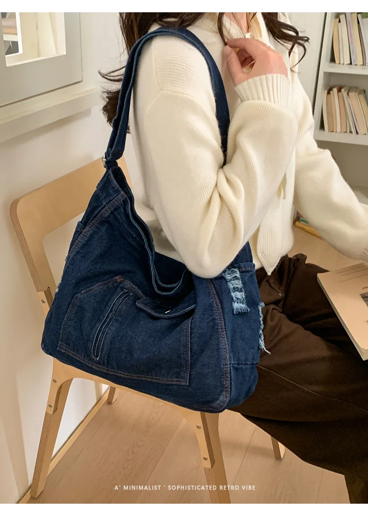 Abrace o charme do vintage com esta elegante bolsa jeans, perfeita para quem aprecia a estética retrô.