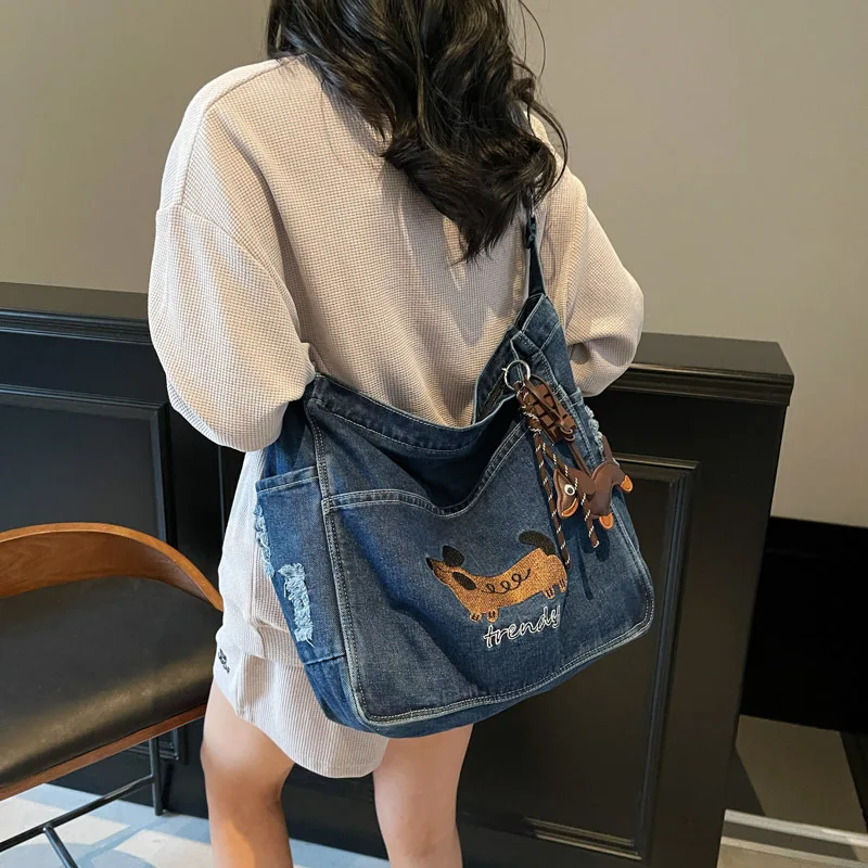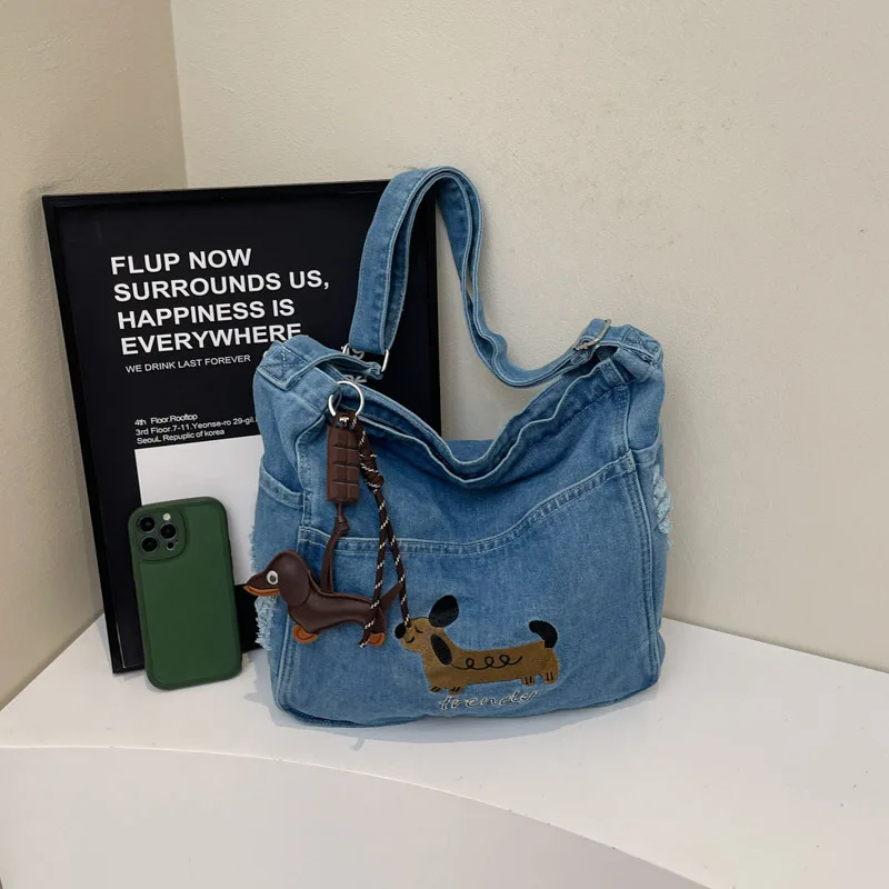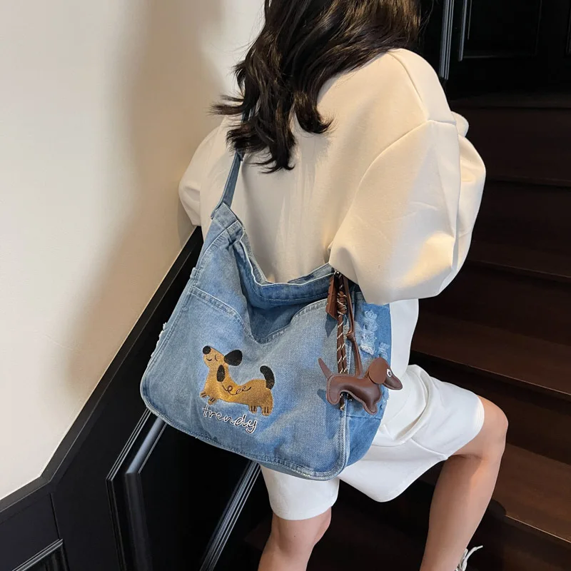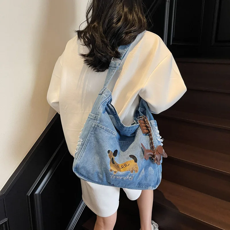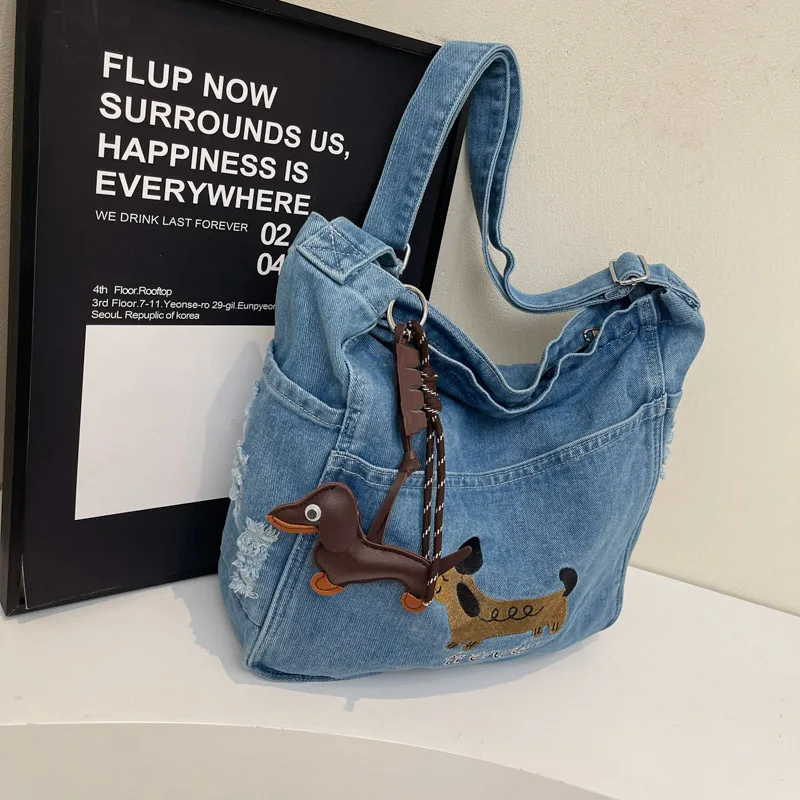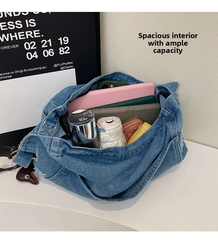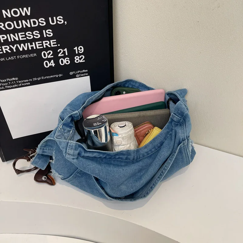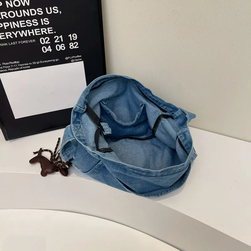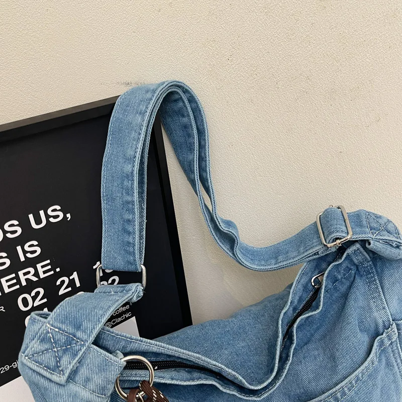Feita em denim resistente, esta bolsa oferece durabilidade e longevidade, garantindo que ela possa suportar o uso diário.