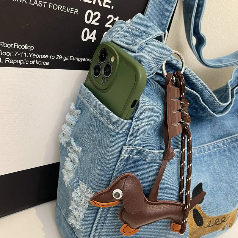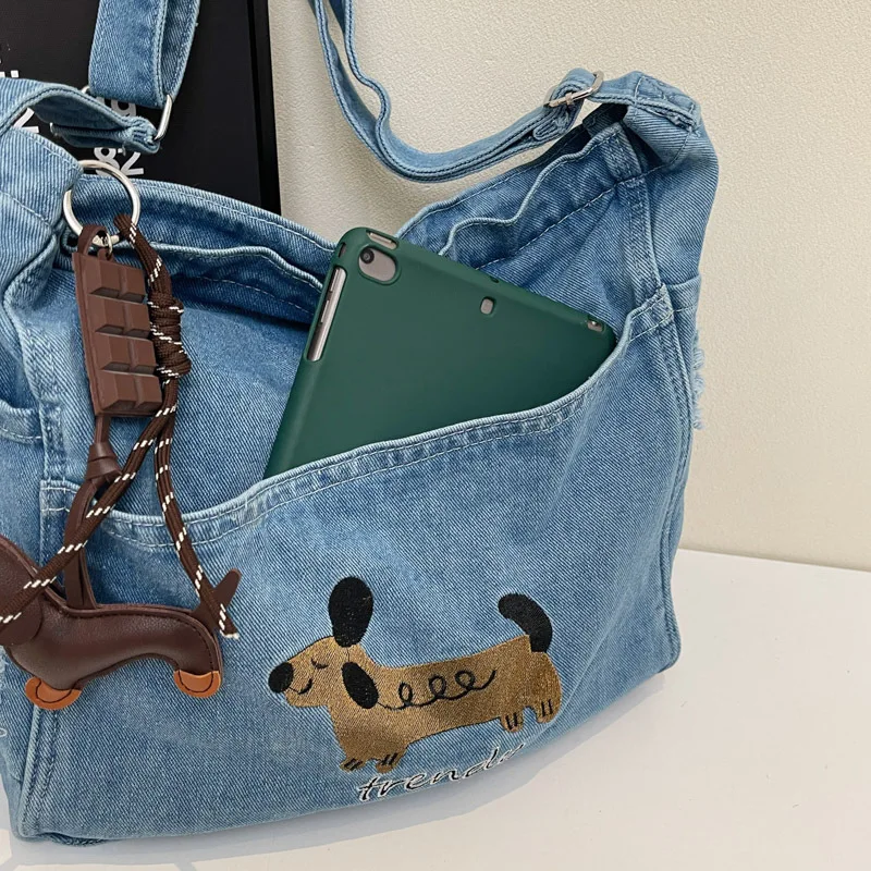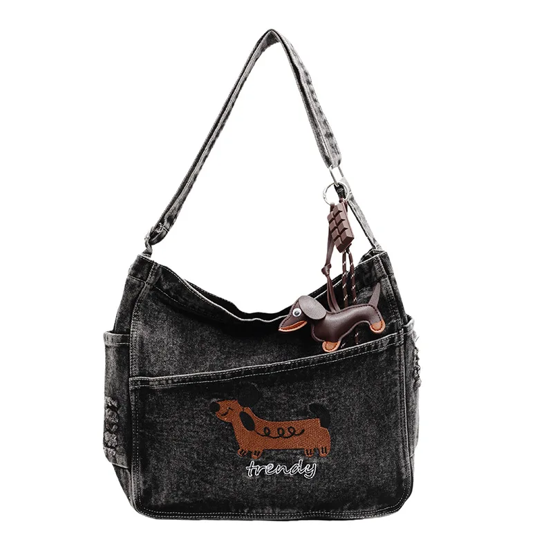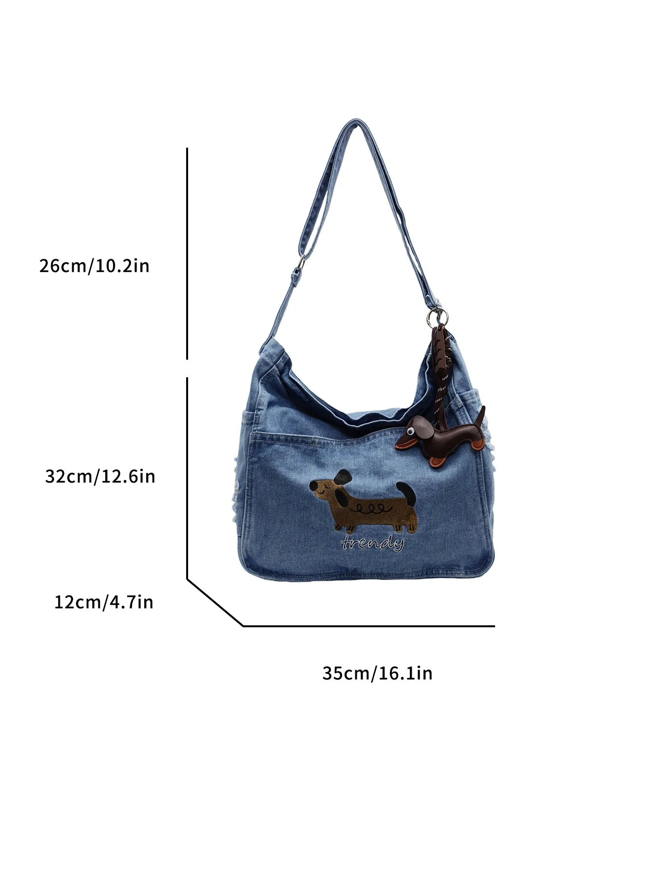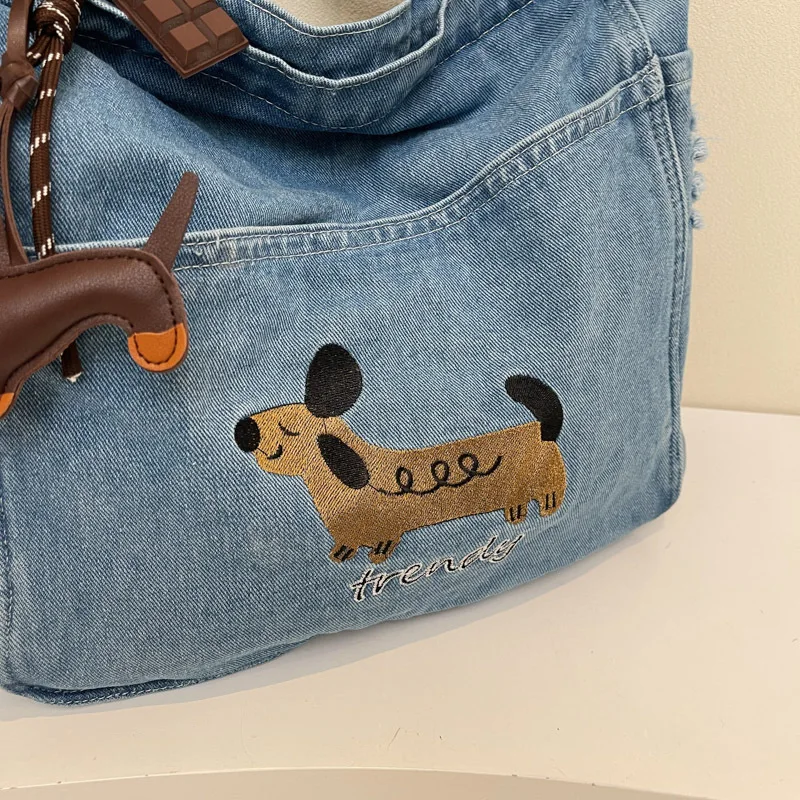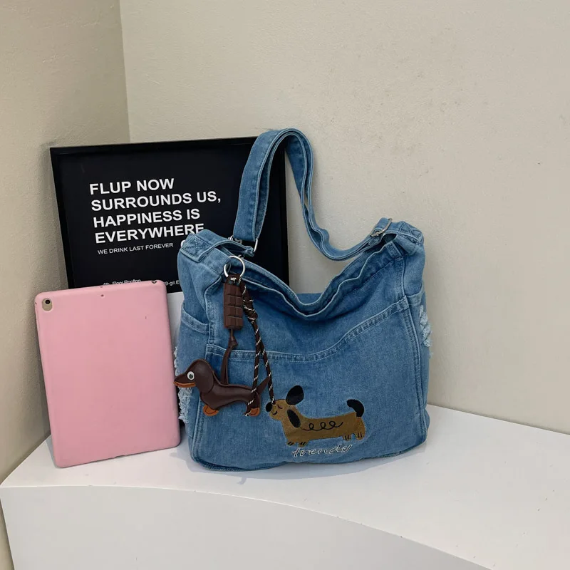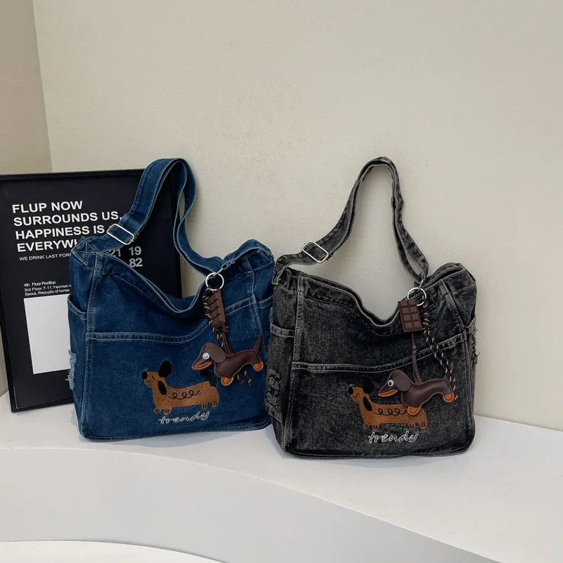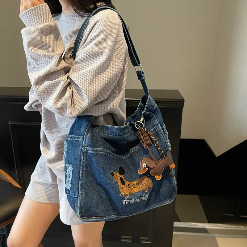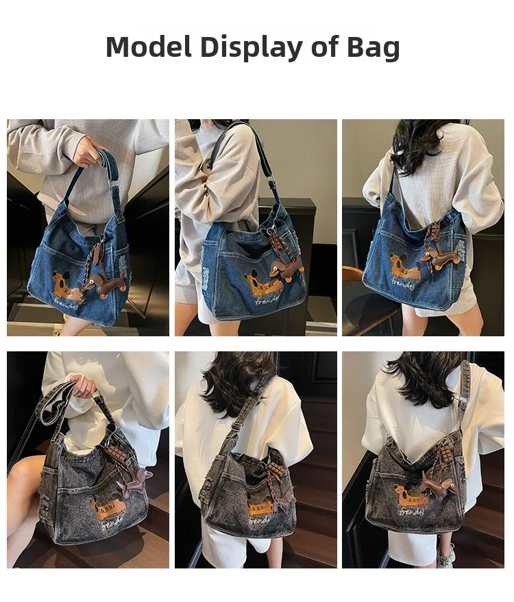 Feita em denim resistente, esta bolsa oferece durabilidade e longevidade, garantindo que ela possa suportar o uso diário.