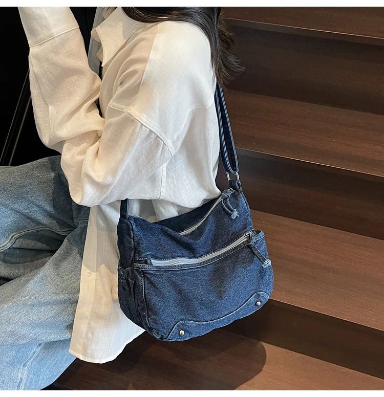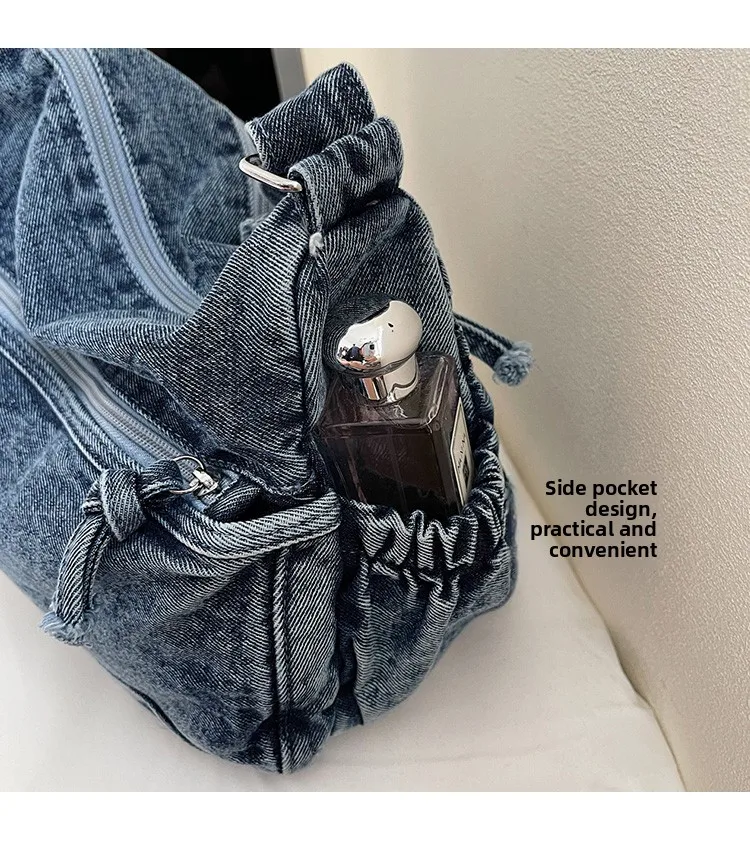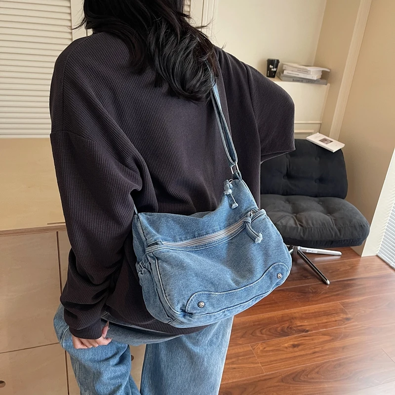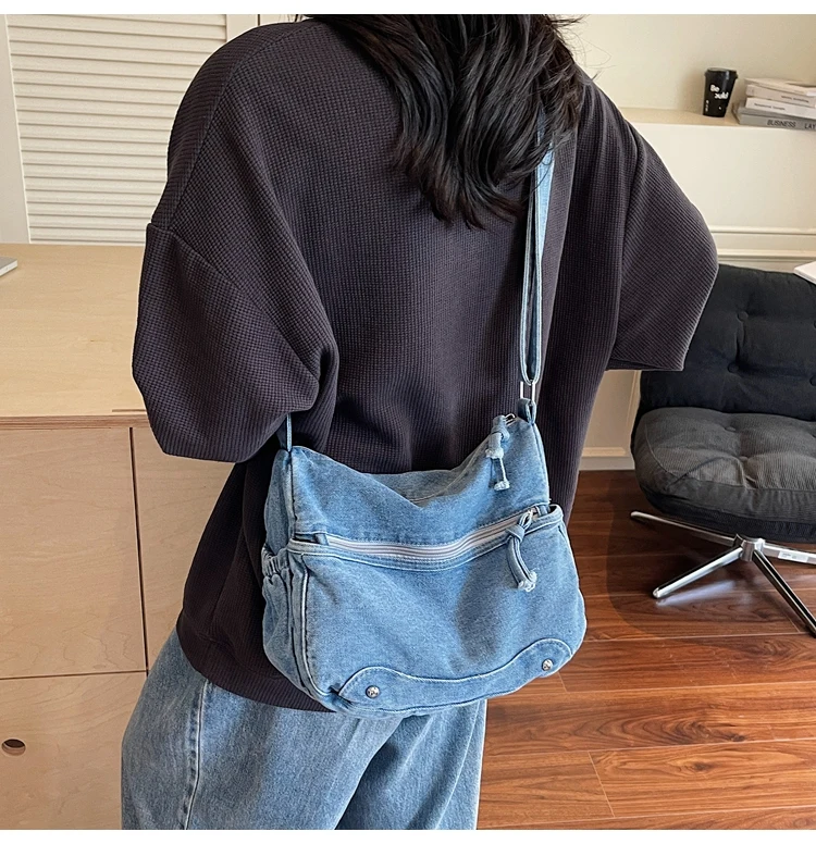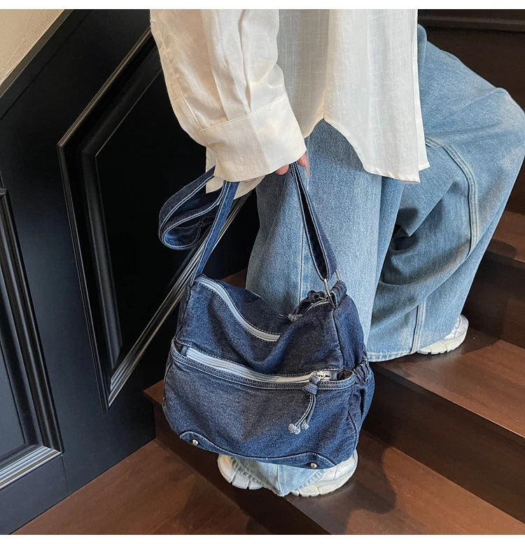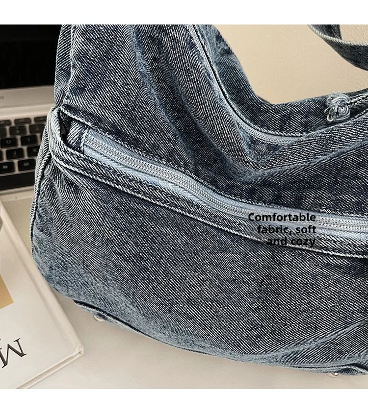Traga um toque despojado e autêntico ao seu look com a nossa Bolsa Jeans Denim. Perfeita para mulheres modernas que adoram a versatilidade do tecido mais clássico do mundo. Combinando com praticamente qualquer peça do seu guarda-roupa, ela oferece um visual jovem, resistente e super prático para todas as ocasiões.