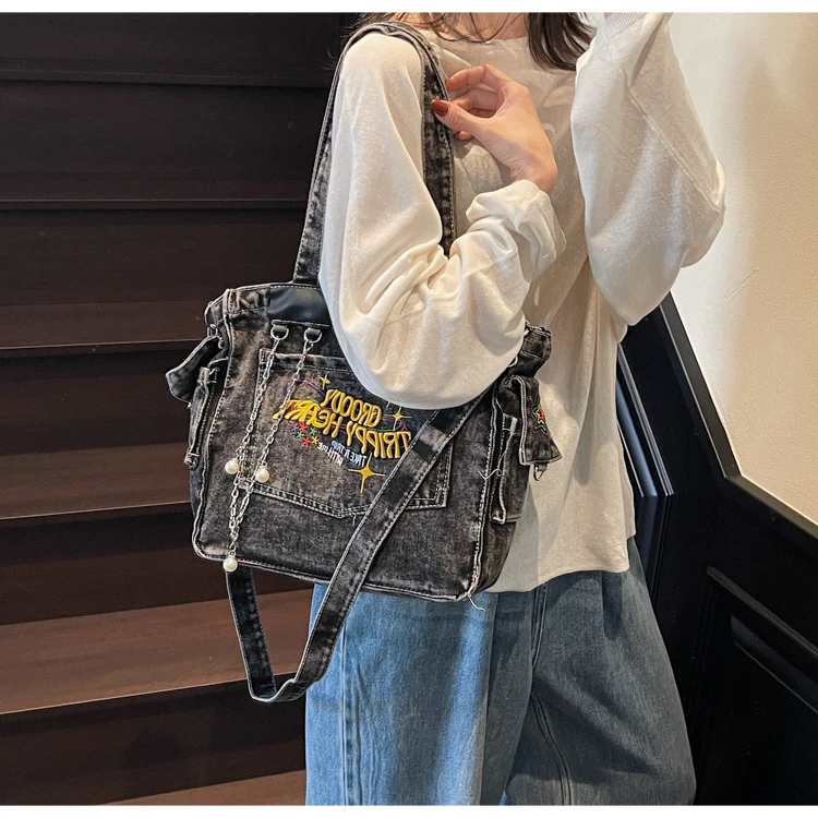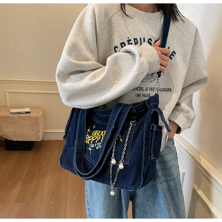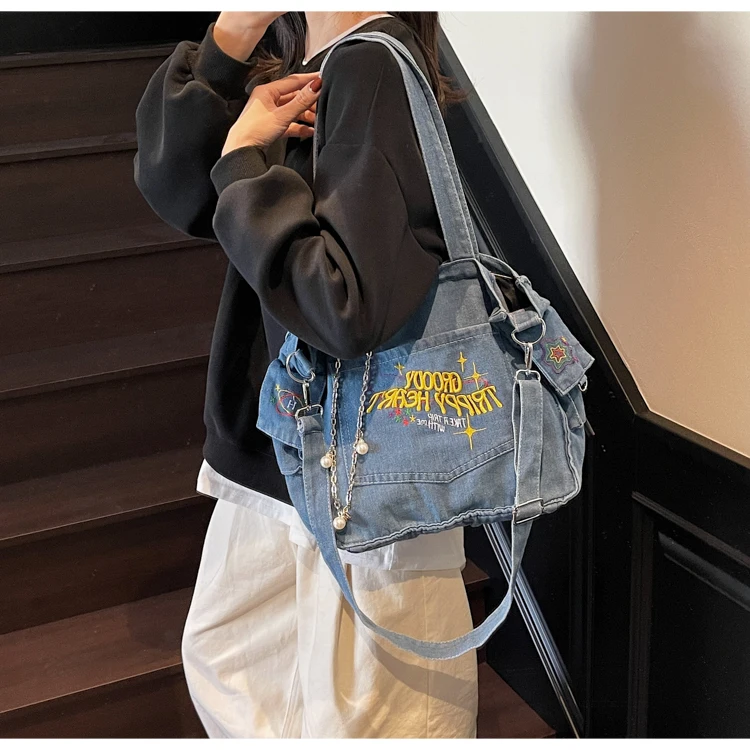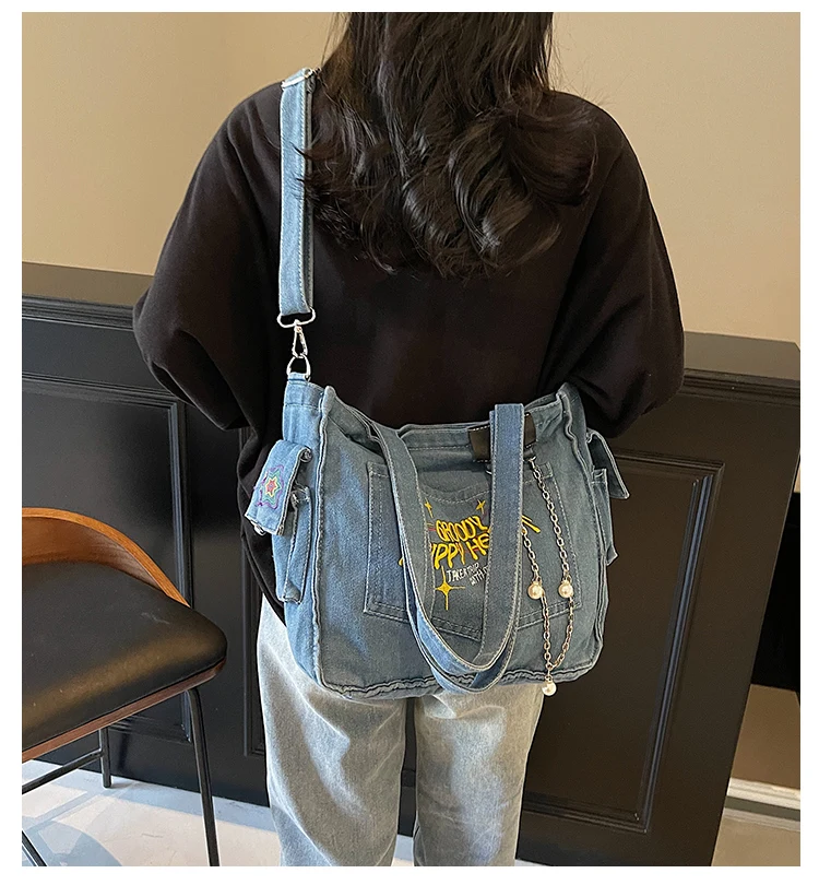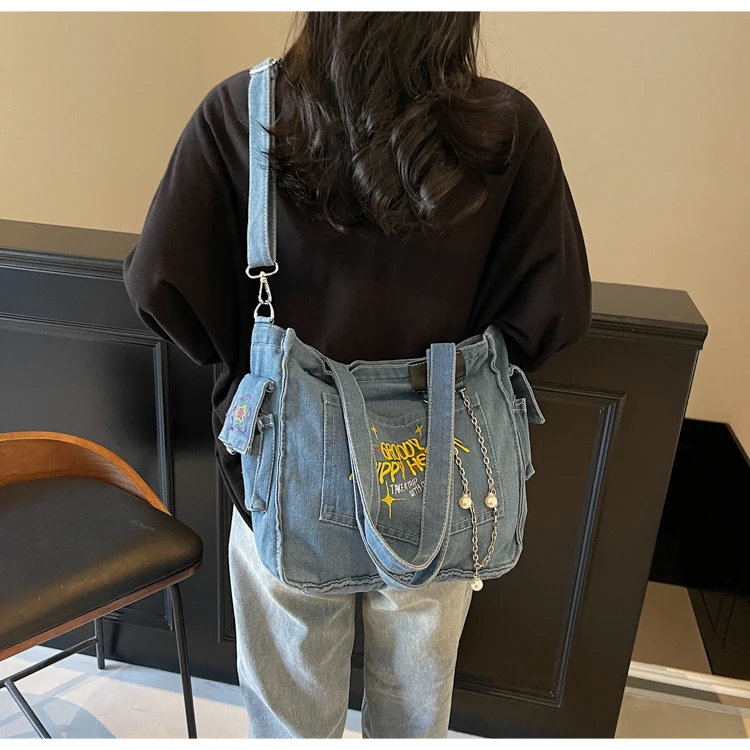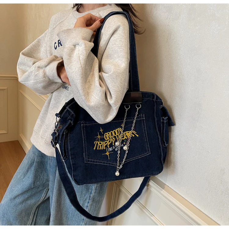Traga um toque despojado e autêntico ao seu look com a nossa Bolsa Jeans Denim. Perfeita para mulheres modernas que adoram a versatilidade do tecido mais clássico do mundo. Combinando com praticamente qualquer peça do seu guarda-roupa, ela oferece um visual jovem, resistente e super prático para todas as ocasiões.