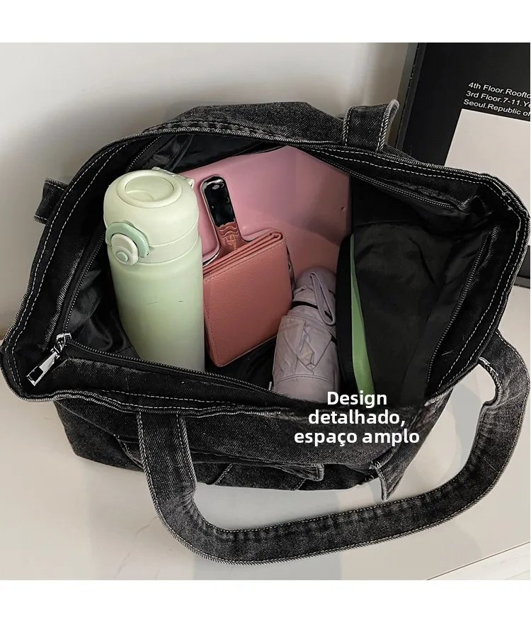 Com um estilo coreano moderno e elegante, este saco de compras é uma adição fashion para qualquer look.