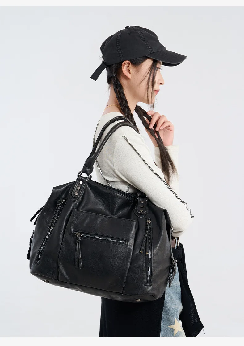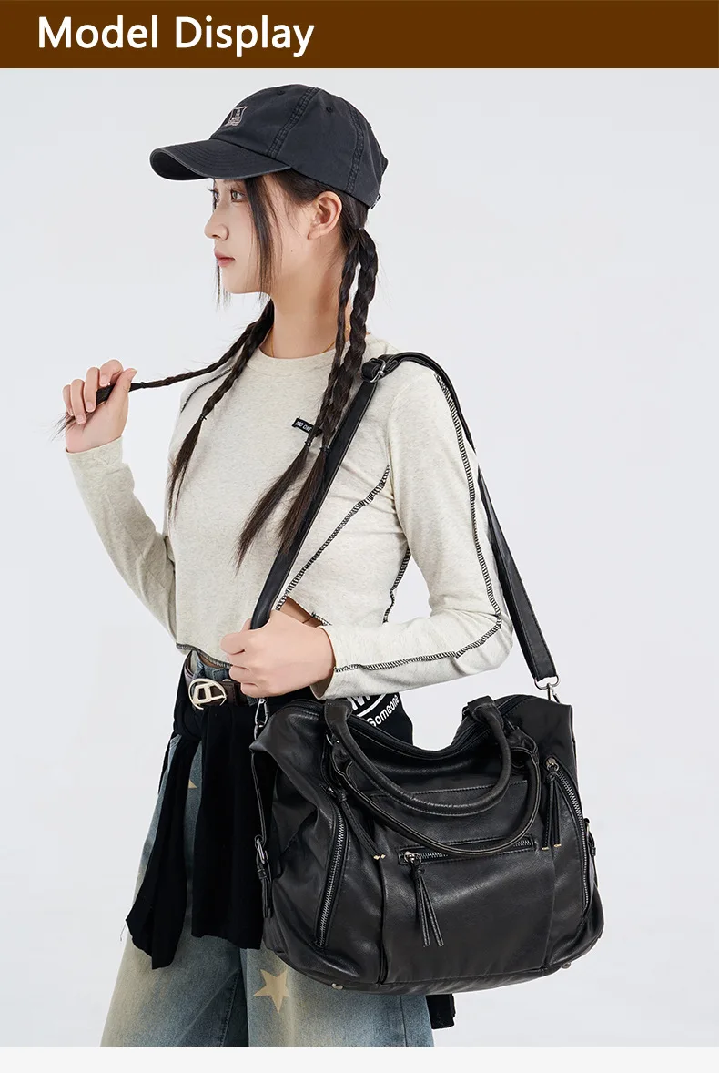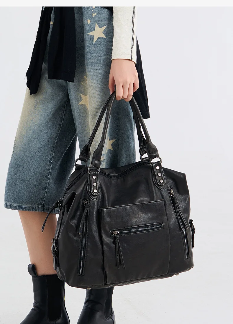 Fabricada em couro macio PU lavado com água, esta bolsa oferece uma sensação luxuosa e uma construção durável.