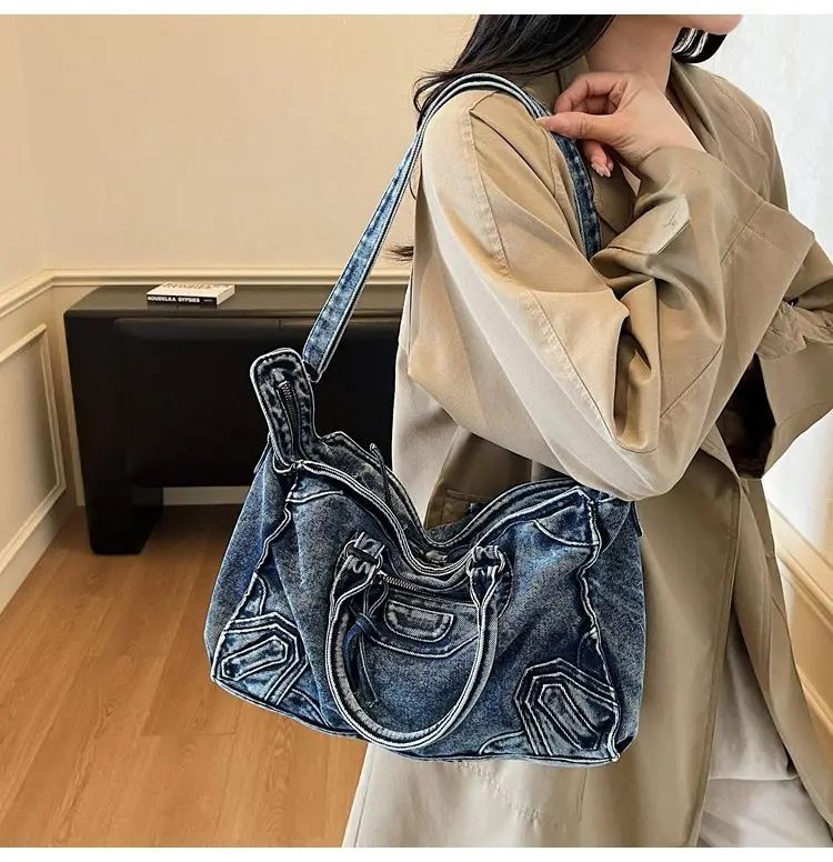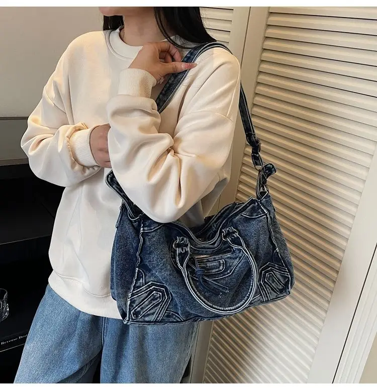 Traga um toque despojado e autêntico ao seu look com a nossa Bolsa Jeans Denim. Perfeita para mulheres modernas que adoram a versatilidade do tecido mais clássico do mundo. Combinando com praticamente qualquer peça do seu guarda-roupa, ela oferece um visual jovem, resistente e super prático para todas as ocasiões.