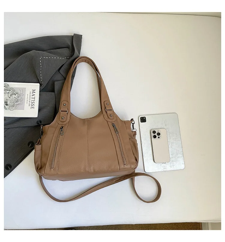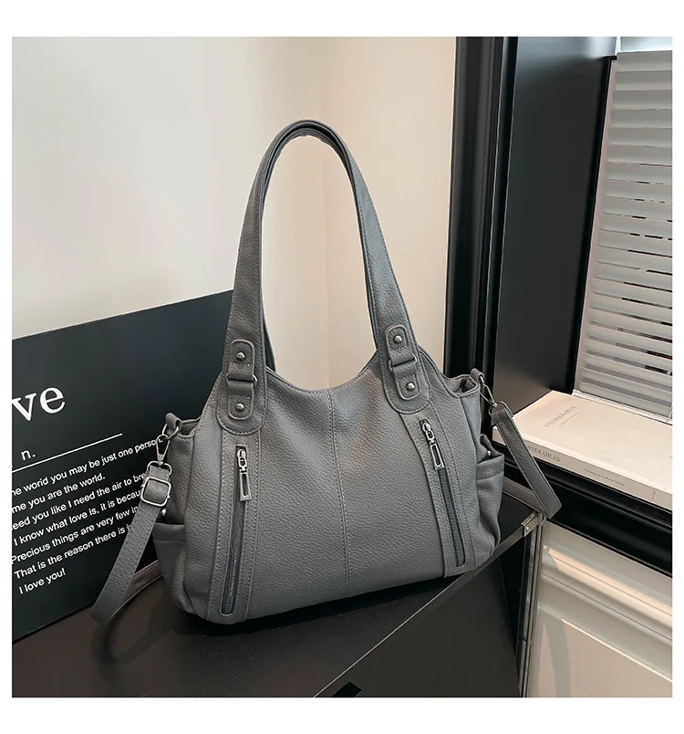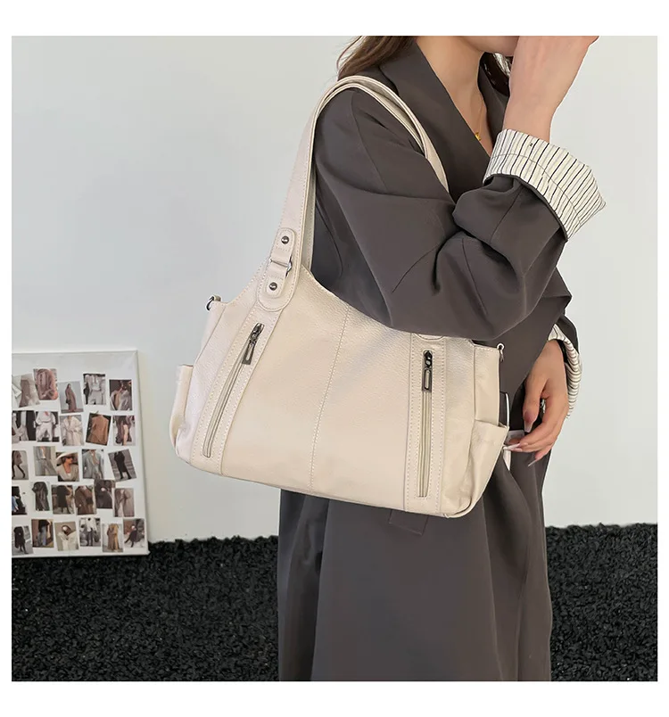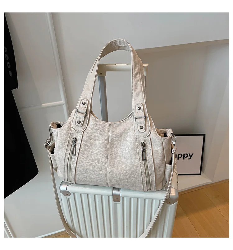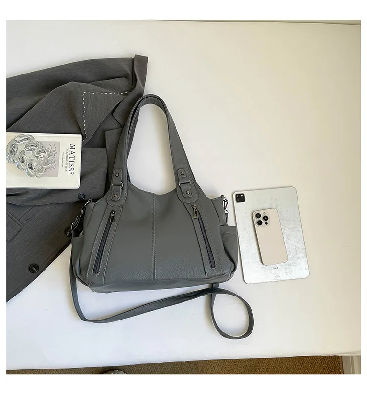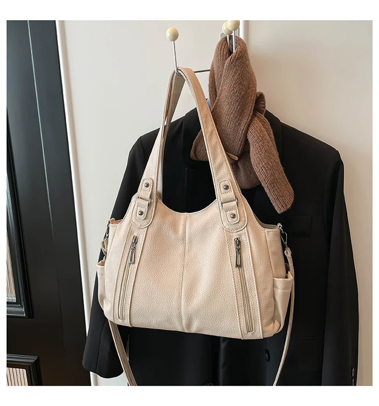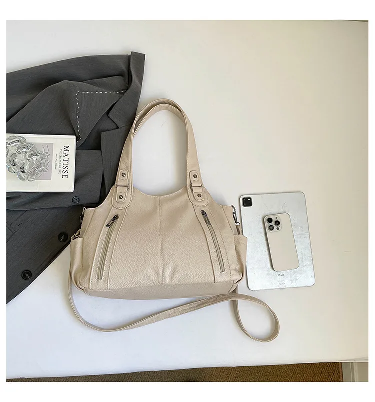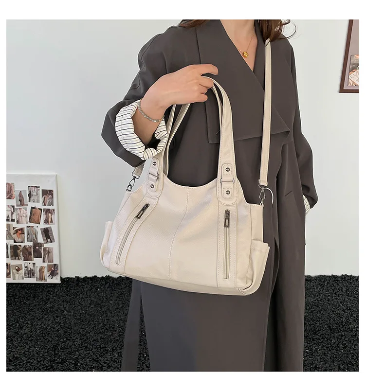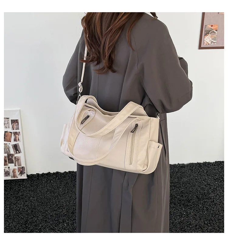 Com seu estilo casual e cor neutra, esta bolsa é um complemento versátil para qualquer look, adequada para diversas ocasiões.