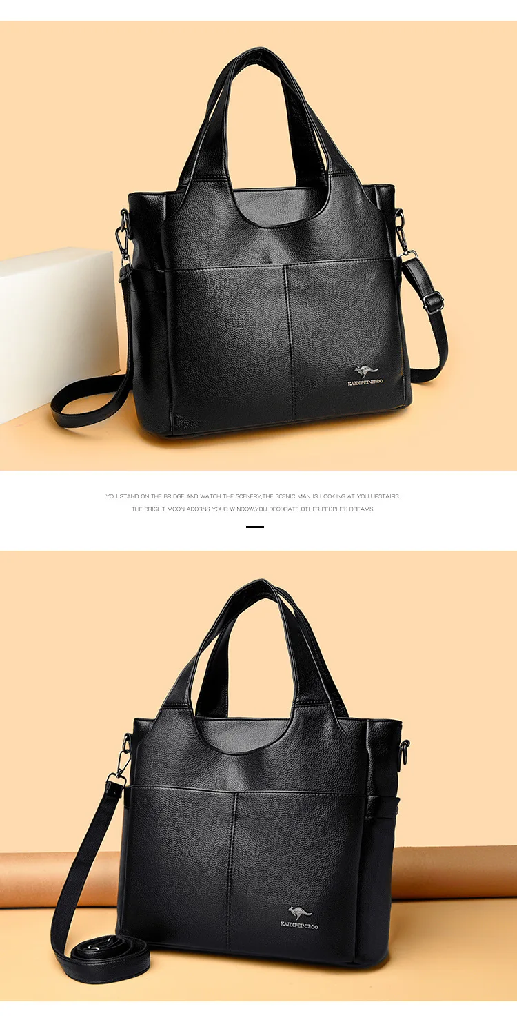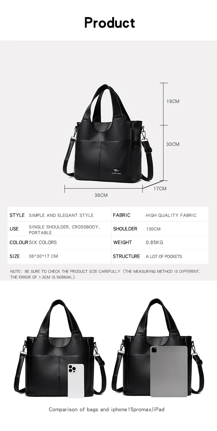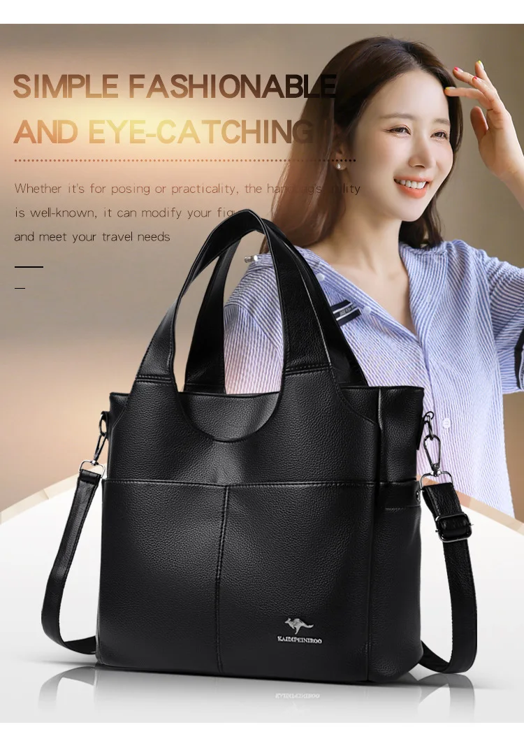 Feita de material PU durável, esta bolsa grande oferece amplo espaço para todos os seus itens essenciais.