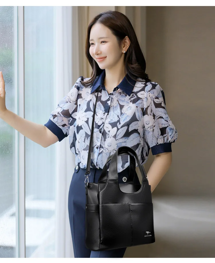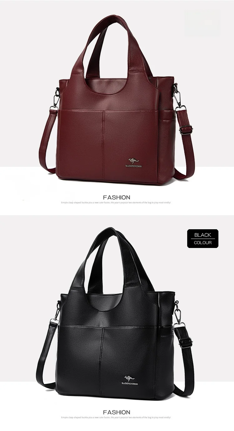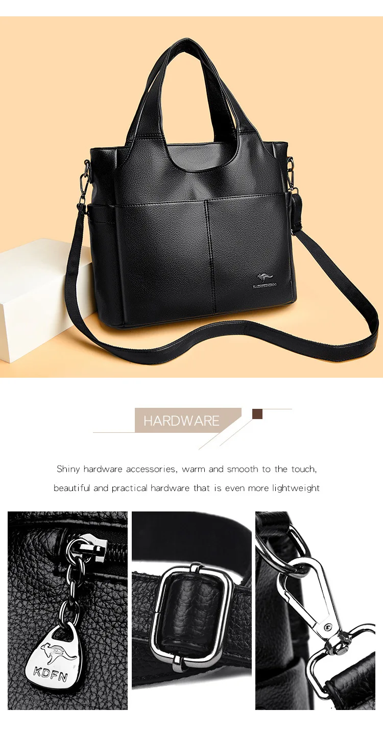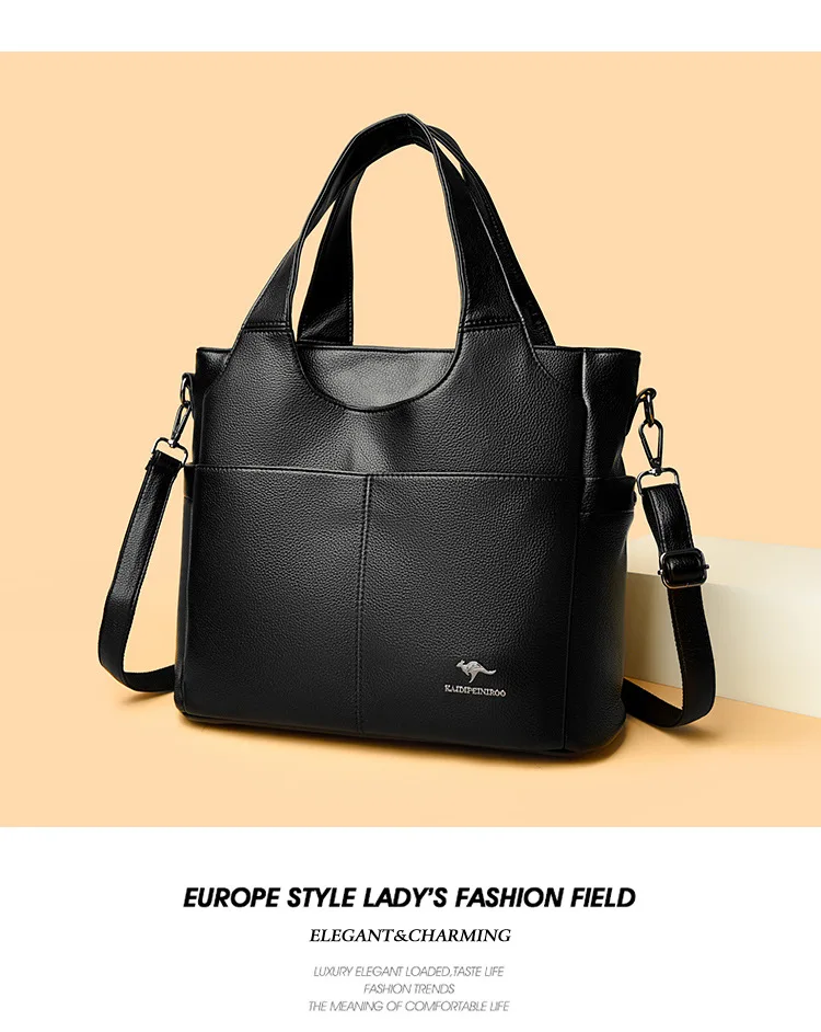 Feita de material PU durável, esta bolsa grande oferece amplo espaço para todos os seus itens essenciais.
