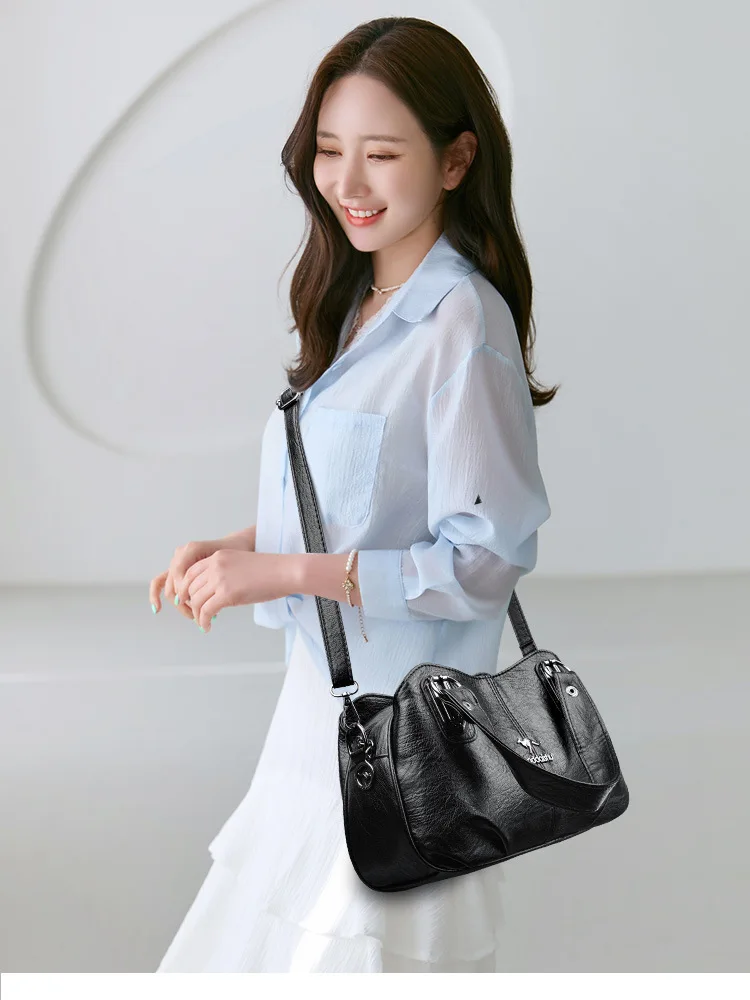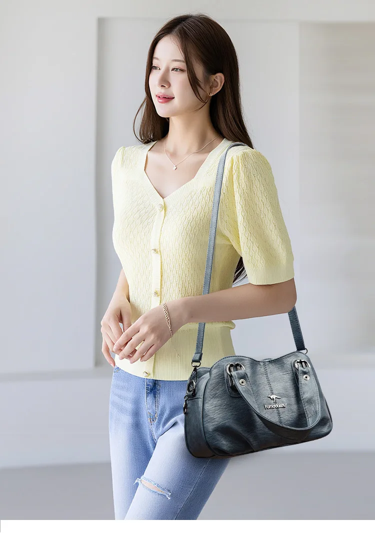 Equipada com alças duplas, esta sacola oferece conforto e versatilidade, seja carregada no ombro ou transversalmente ao corpo.