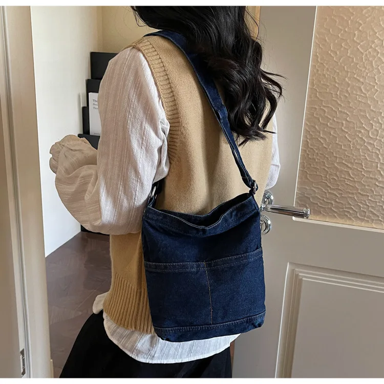 Traga um toque despojado e autêntico ao seu look com a nossa Bolsa Jeans Denim. Perfeita para mulheres modernas que adoram a versatilidade do tecido mais clássico do mundo. Combinando com praticamente qualquer peça do seu guarda-roupa, ela oferece um visual jovem, resistente e super prático para todas as ocasiões.