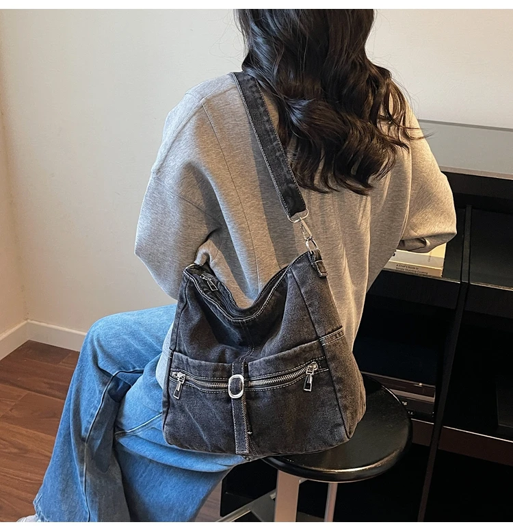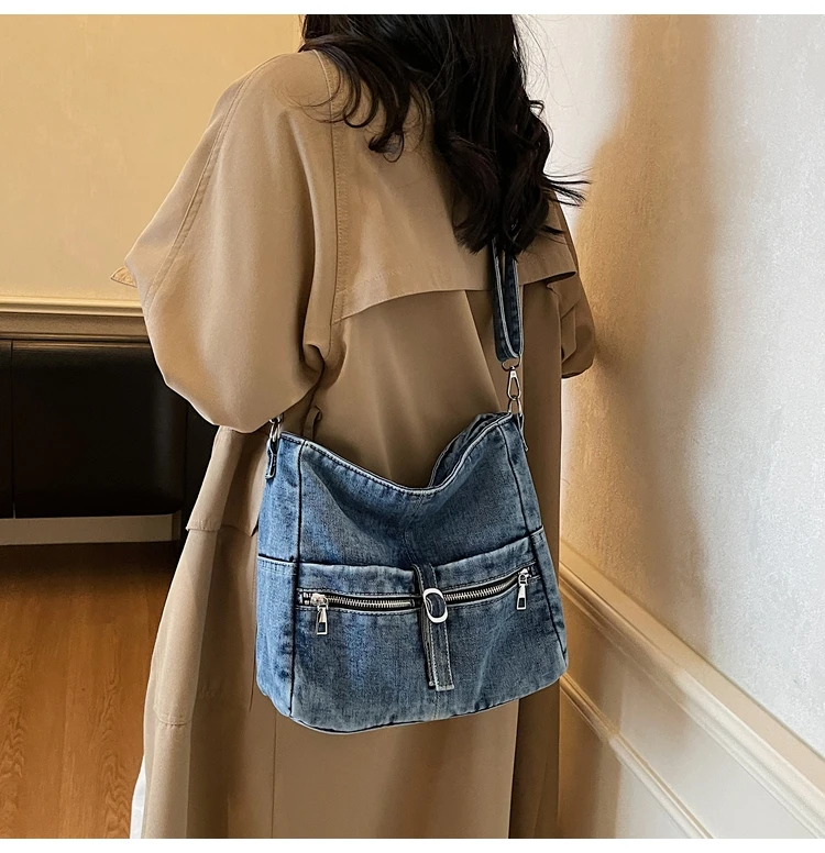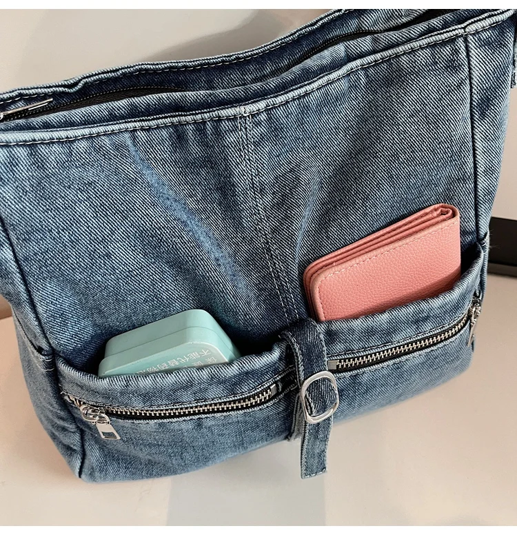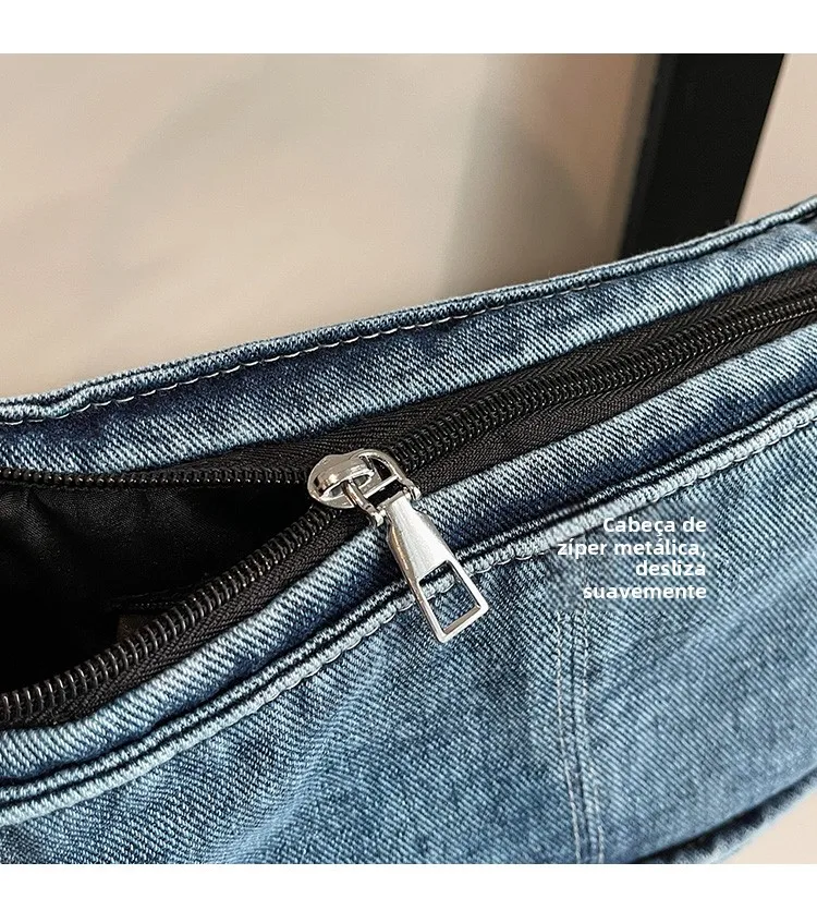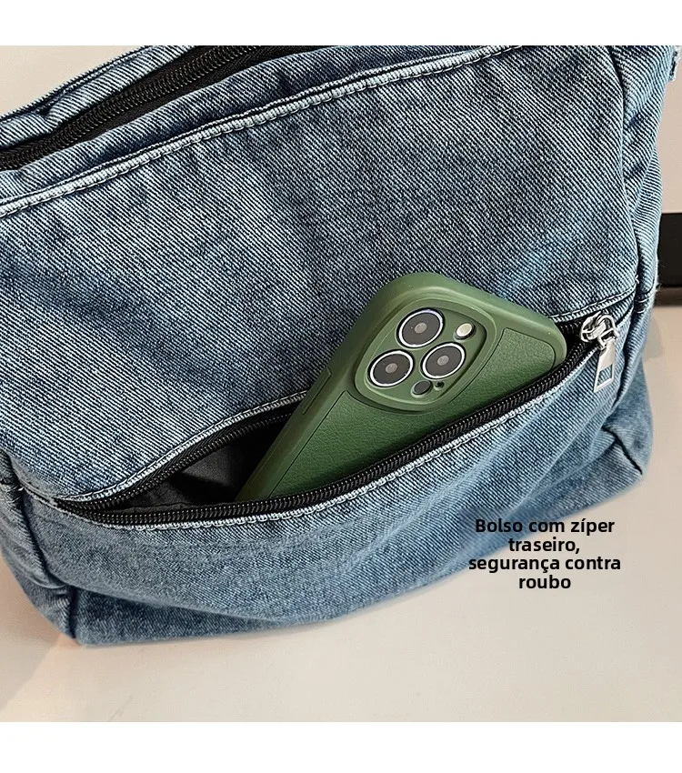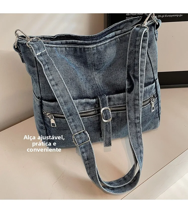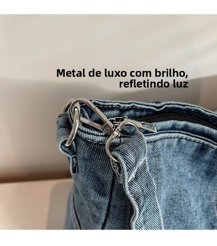 Traga um toque despojado e autêntico ao seu look com a nossa Bolsa Jeans Denim. Perfeita para mulheres modernas que adoram a versatilidade do tecido mais clássico do mundo. Combinando com praticamente qualquer peça do seu guarda-roupa, ela oferece um visual jovem, resistente e super prático para todas as ocasiões.