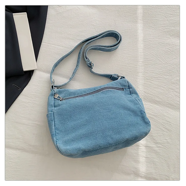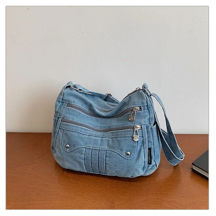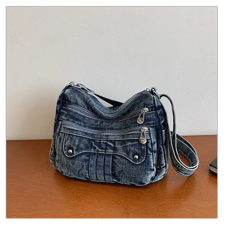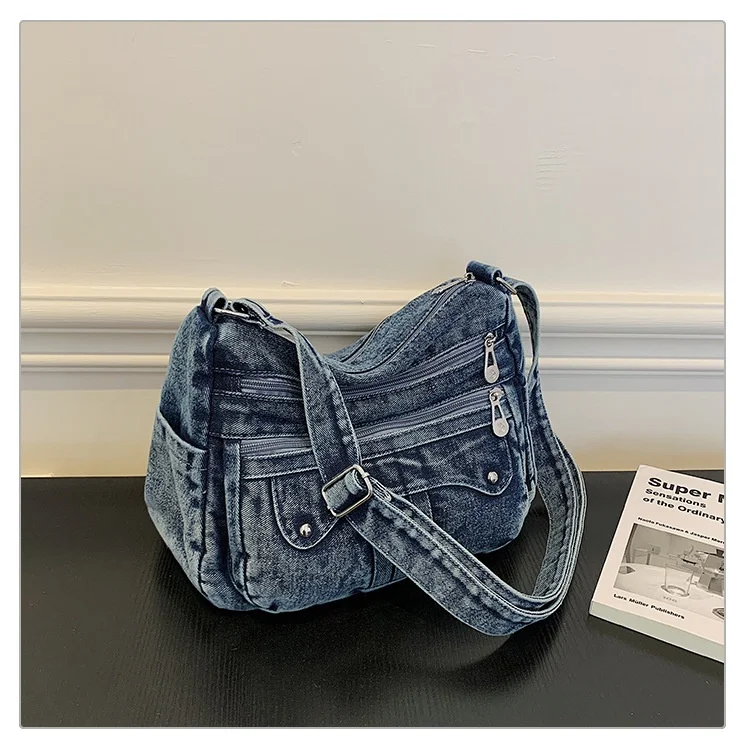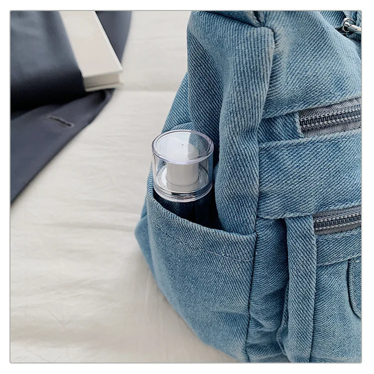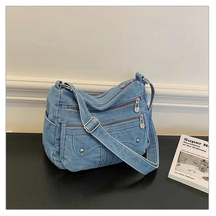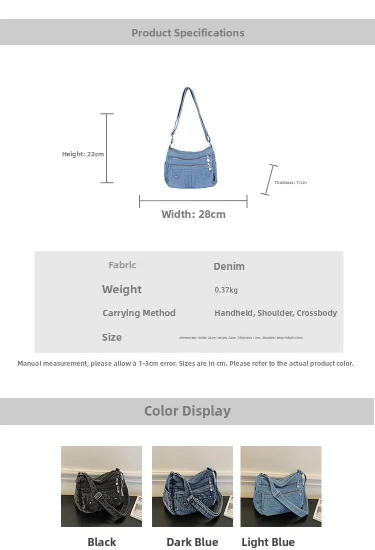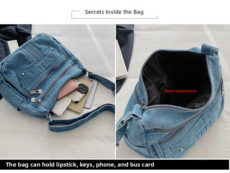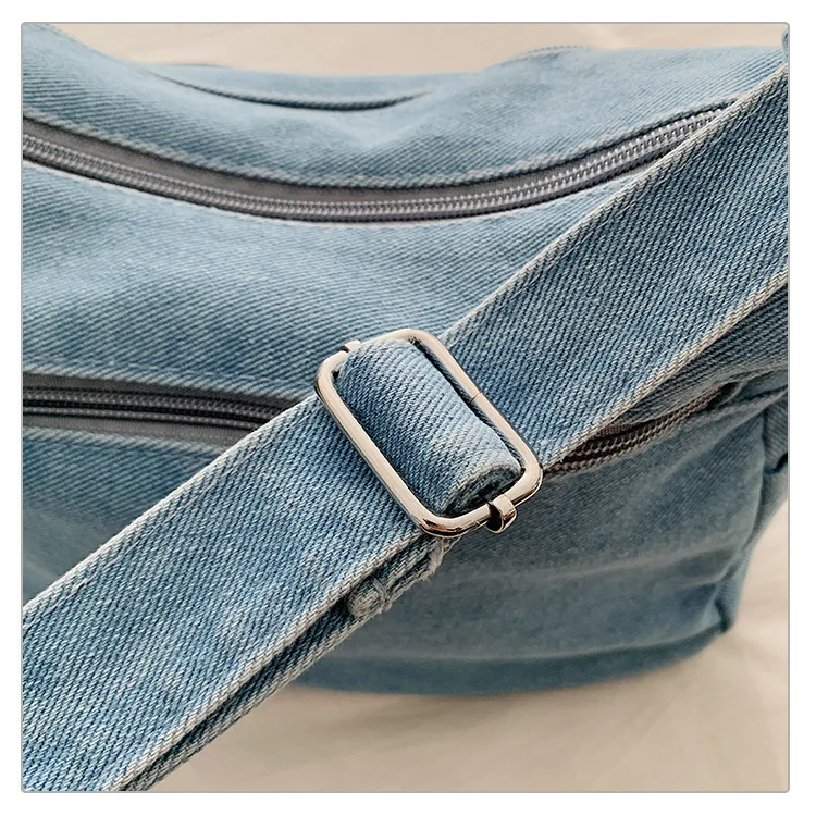 Esta bolsa jeans apresenta um estilo casual, perfeita para uso diário e viagens de lazer.Sua simplicidade e versatilidade fazem dele um acessório indispensável para qualquer look.