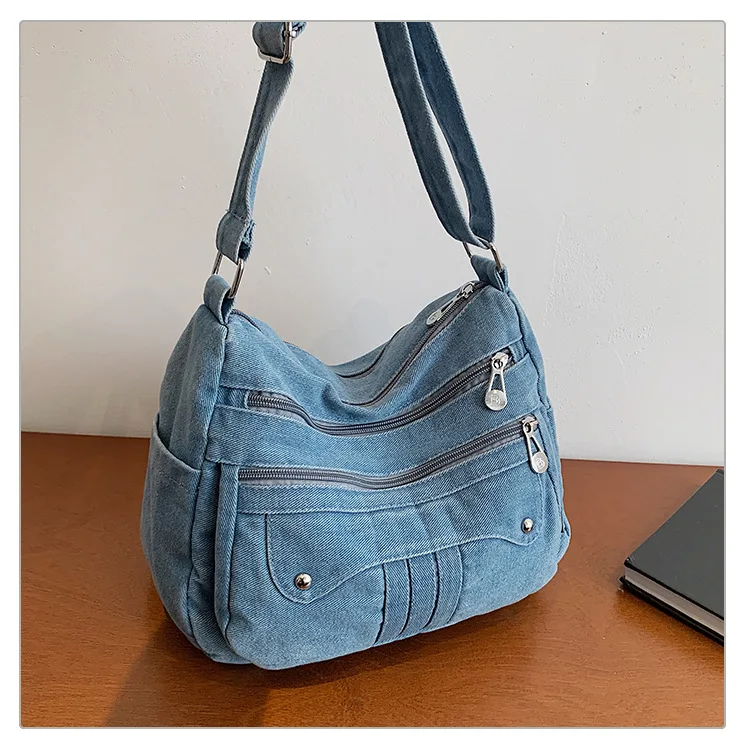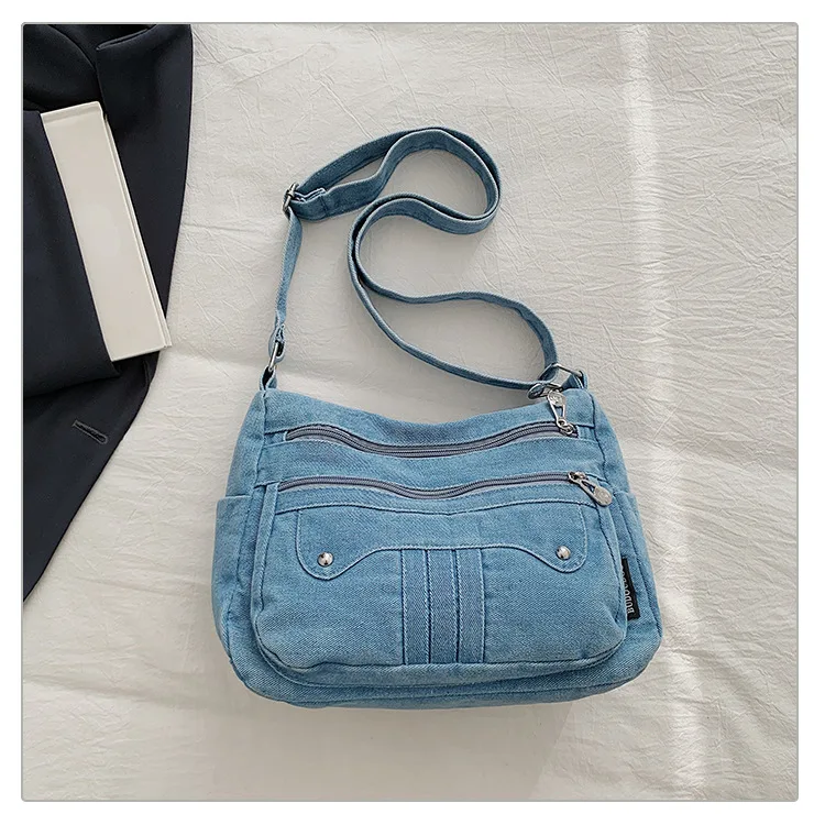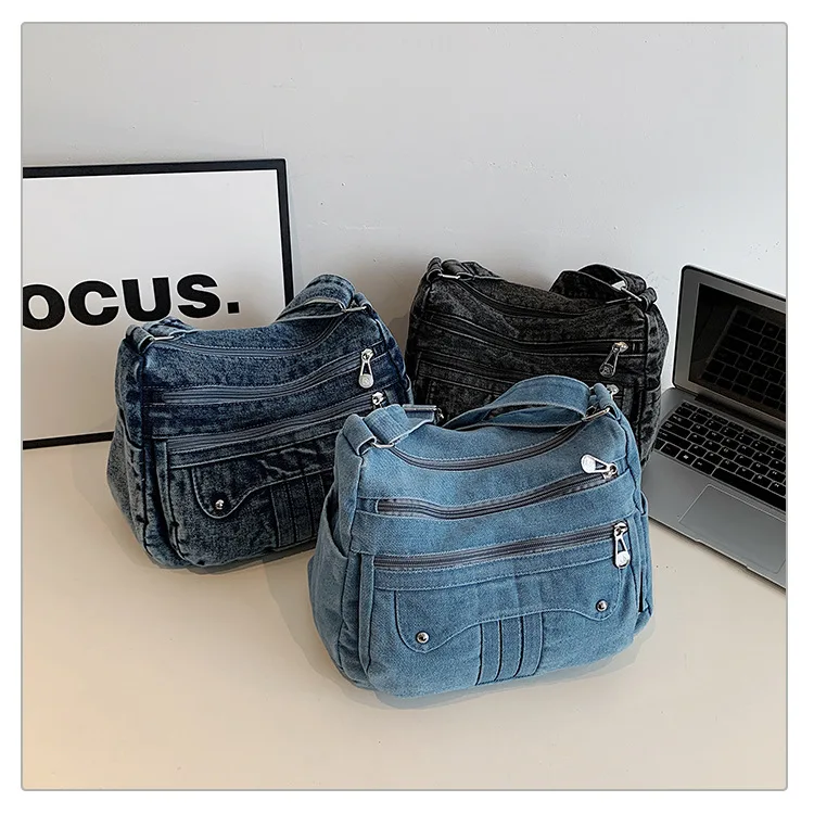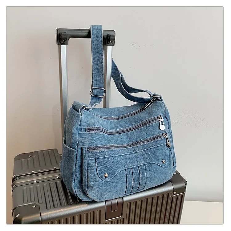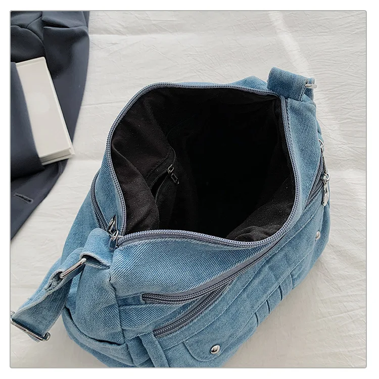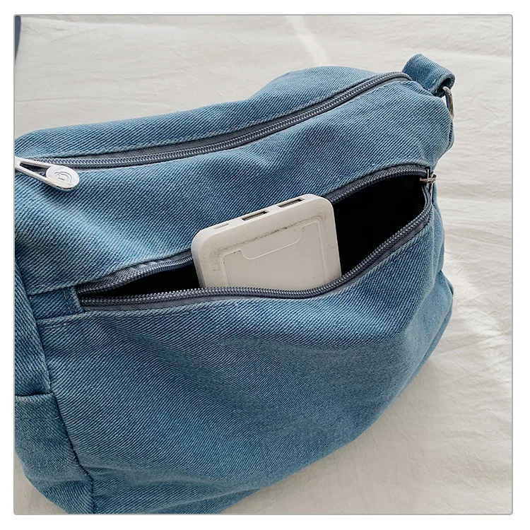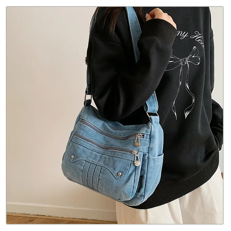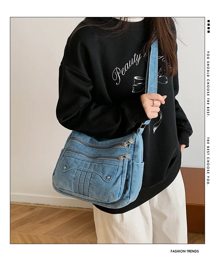 Esta bolsa jeans apresenta um estilo casual, perfeita para uso diário e viagens de lazer.Sua simplicidade e versatilidade fazem dele um acessório indispensável para qualquer look.