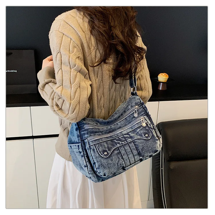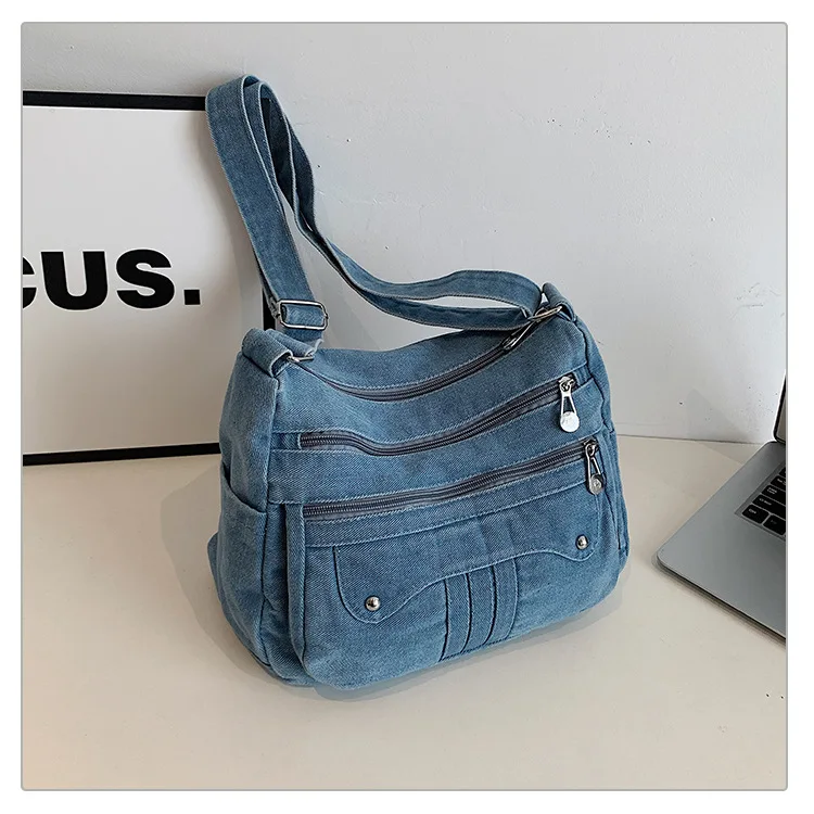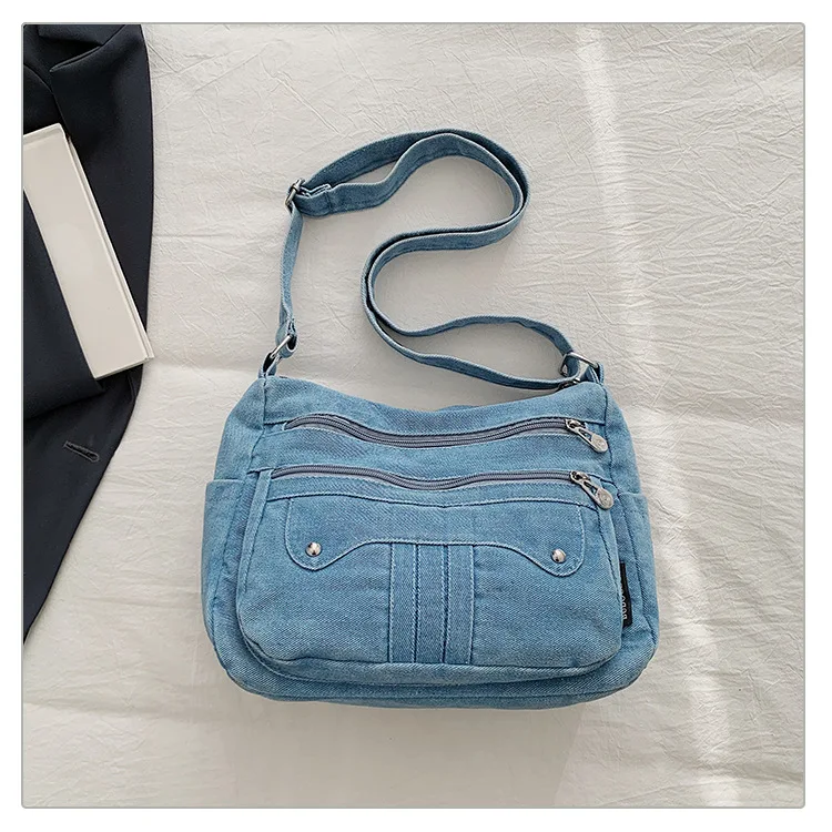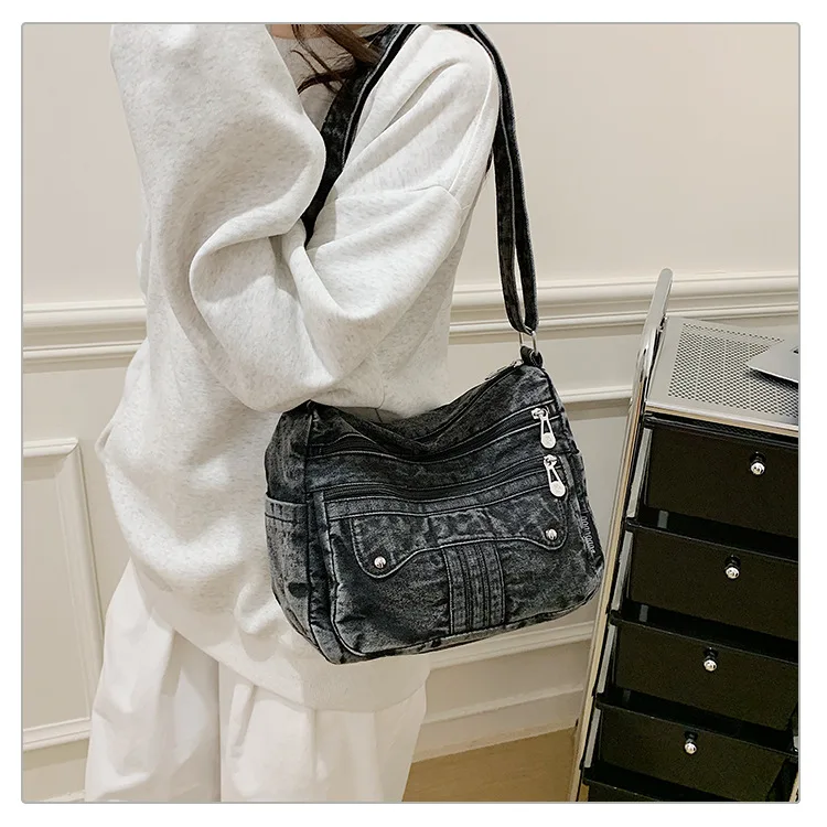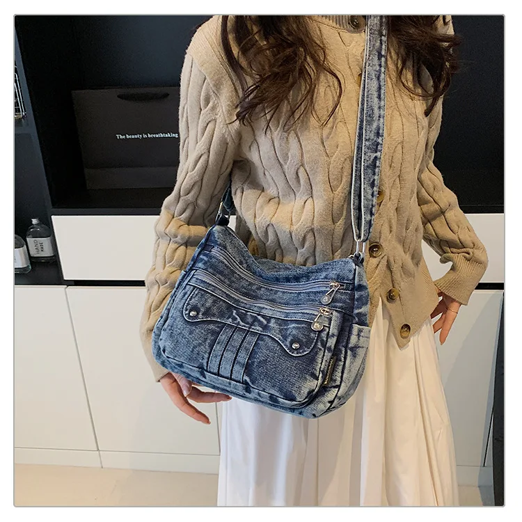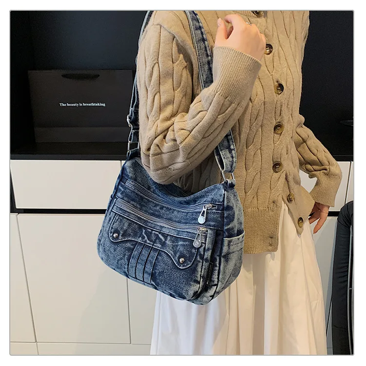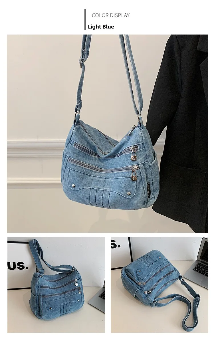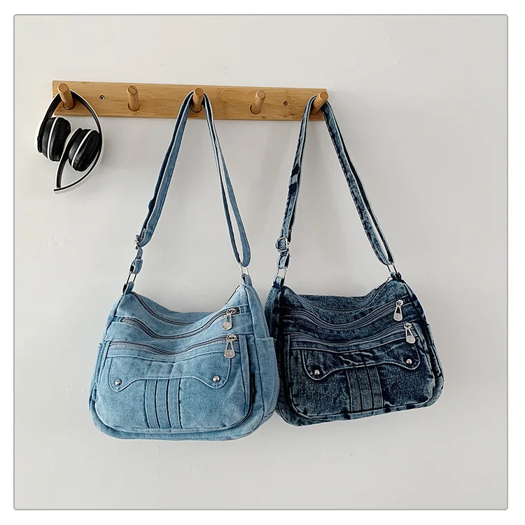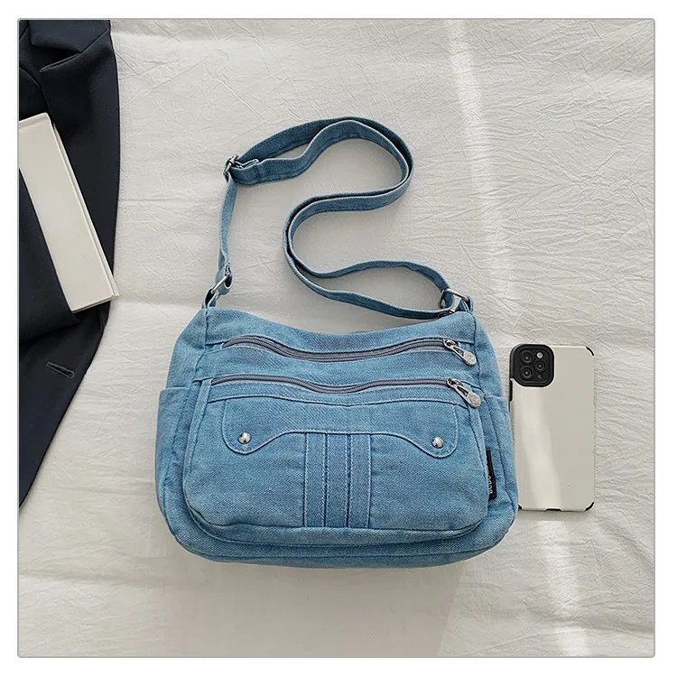 Esta bolsa jeans apresenta um estilo casual, perfeita para uso diário e viagens de lazer.Sua simplicidade e versatilidade fazem dele um acessório indispensável para qualquer look.