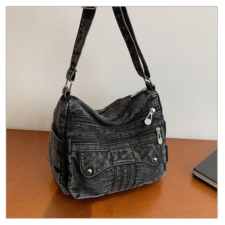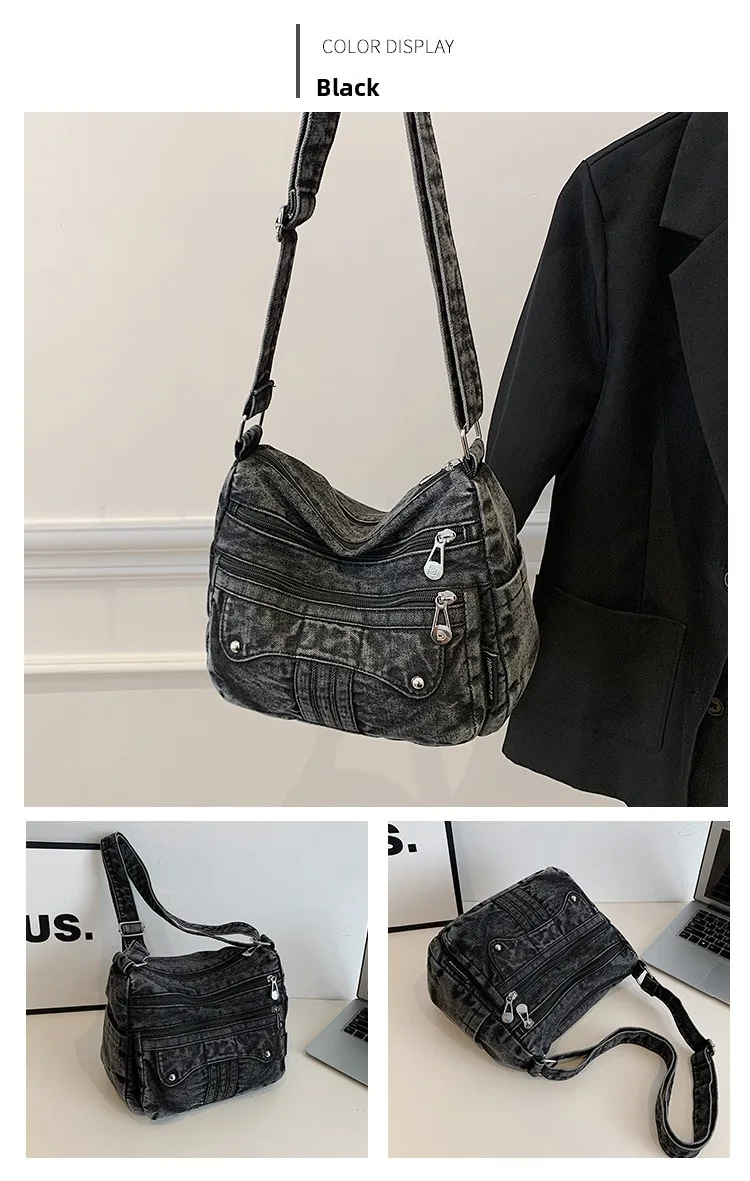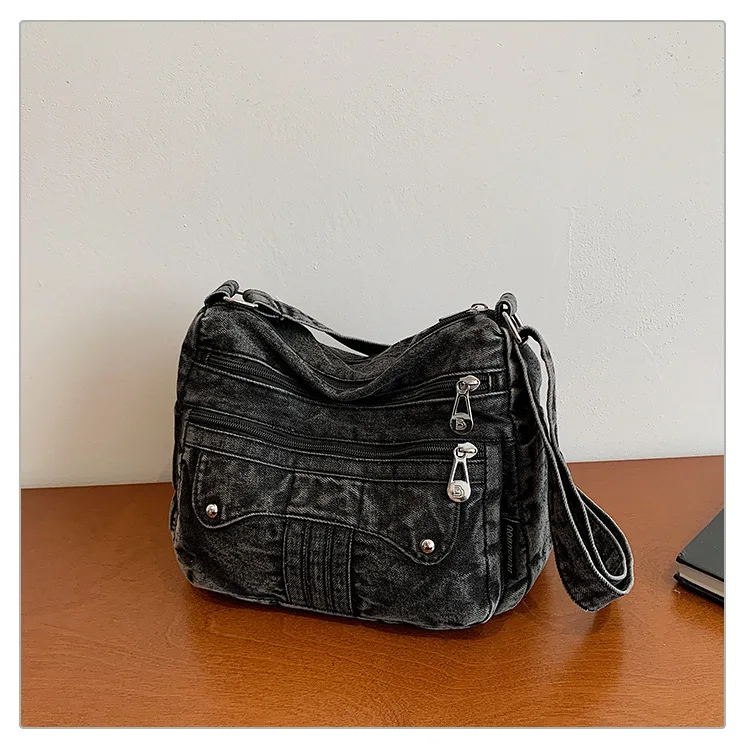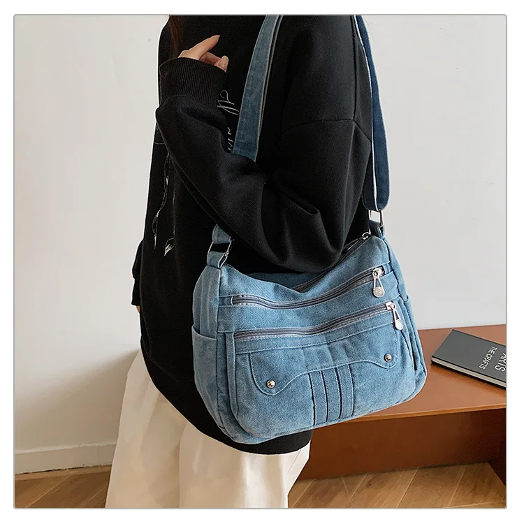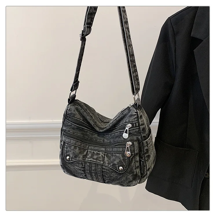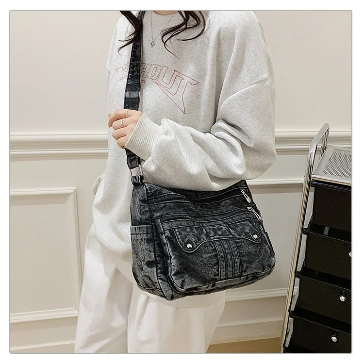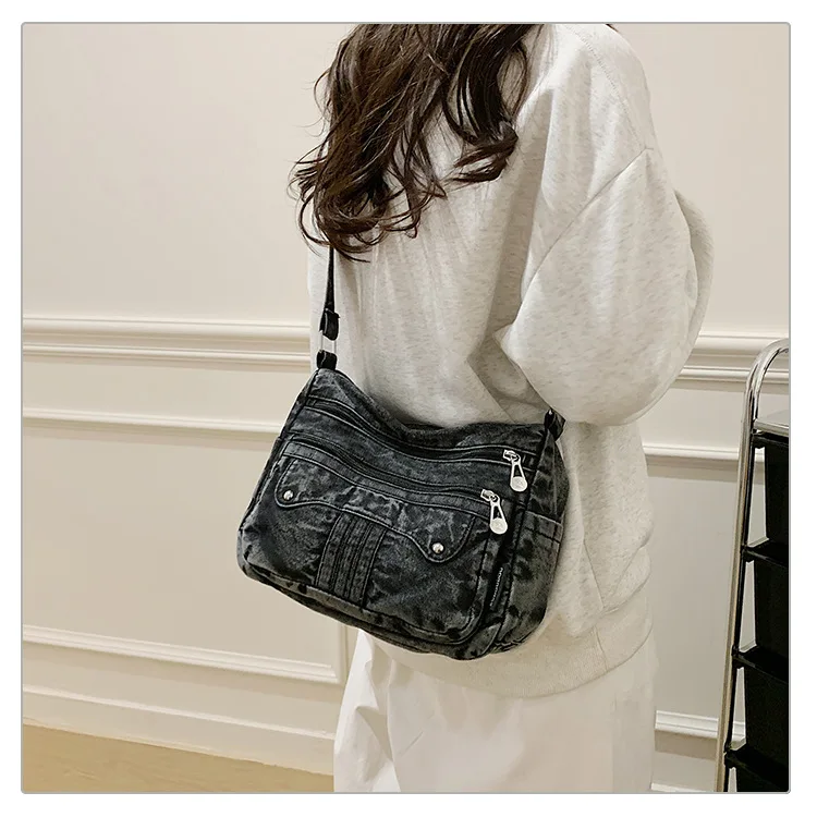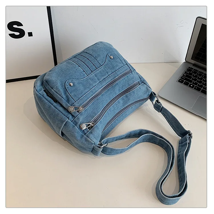 Esta bolsa jeans apresenta um estilo casual, perfeita para uso diário e viagens de lazer.Sua simplicidade e versatilidade fazem dele um acessório indispensável para qualquer look.