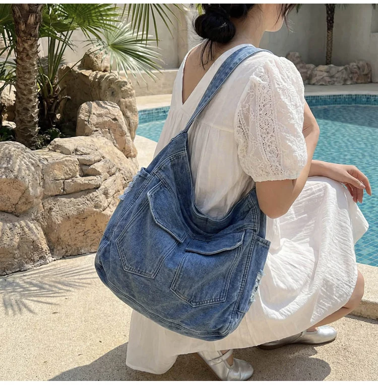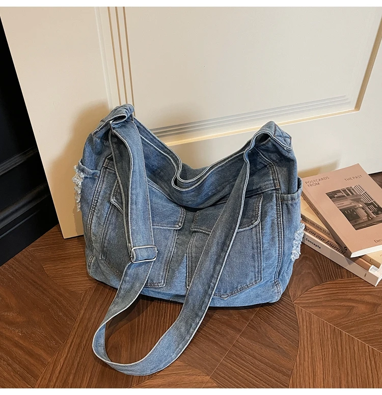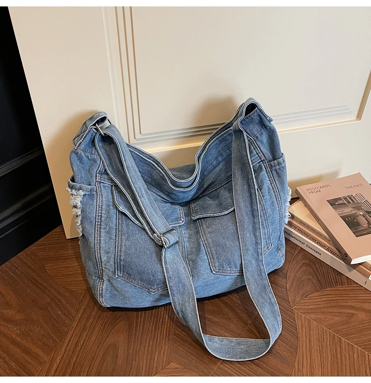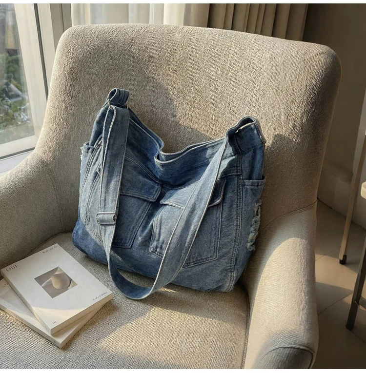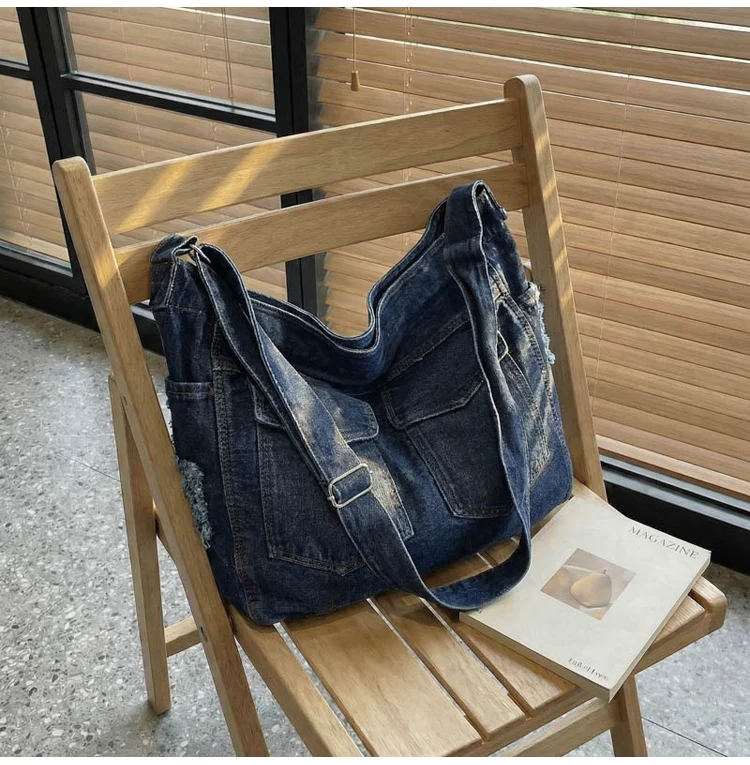 Traga um toque despojado e autêntico ao seu look com a nossa Bolsa Jeans Denim. Perfeita para mulheres modernas que adoram a versatilidade do tecido mais clássico do mundo. Combinando com praticamente qualquer peça do seu guarda-roupa, ela oferece um visual jovem, resistente e super prático para todas as ocasiões.