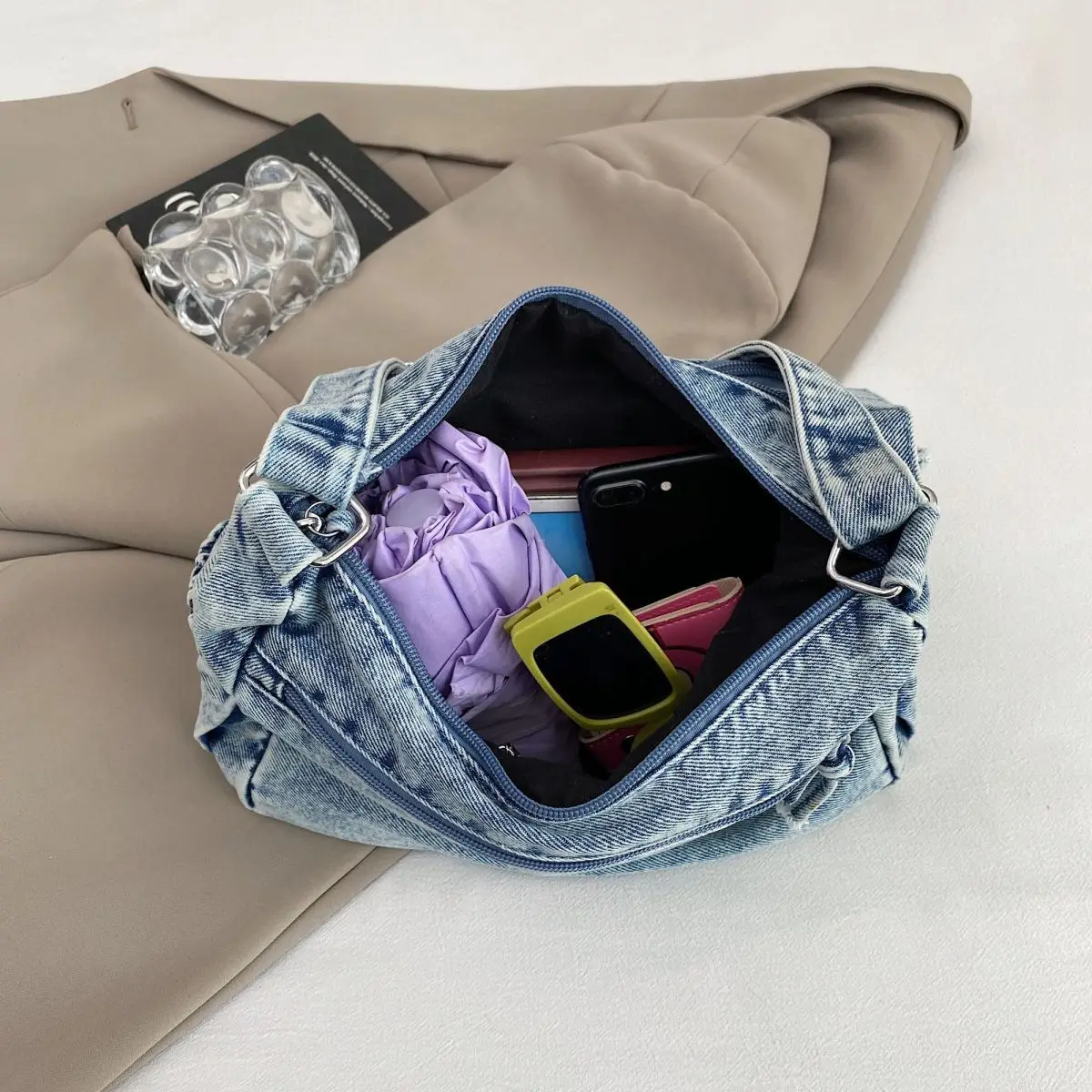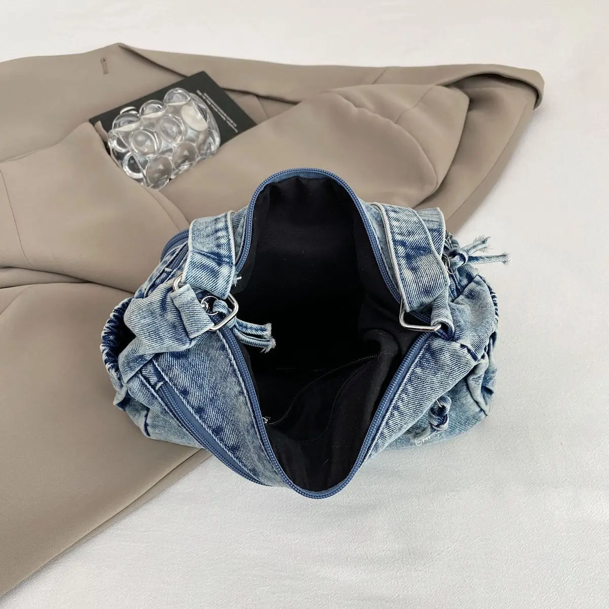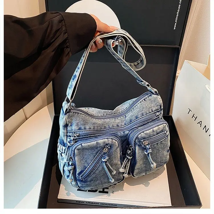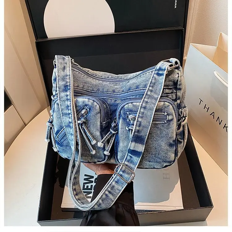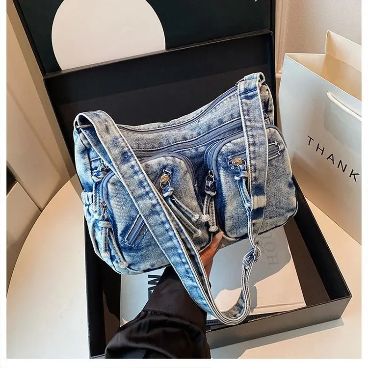 Traga um toque despojado e autêntico ao seu look com a nossa Bolsa Jeans Denim. Perfeita para mulheres modernas que adoram a versatilidade do tecido mais clássico do mundo. Combinando com praticamente qualquer peça do seu guarda-roupa, ela oferece um visual jovem, resistente e super prático para todas as ocasiões.