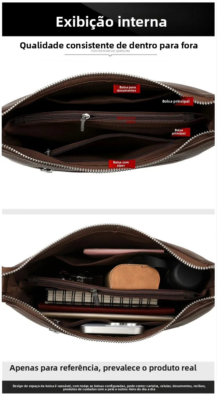 Este saco possui vários bolsos internos, incluindo um para celular, permitindo que você organize seus itens de forma eficiente.