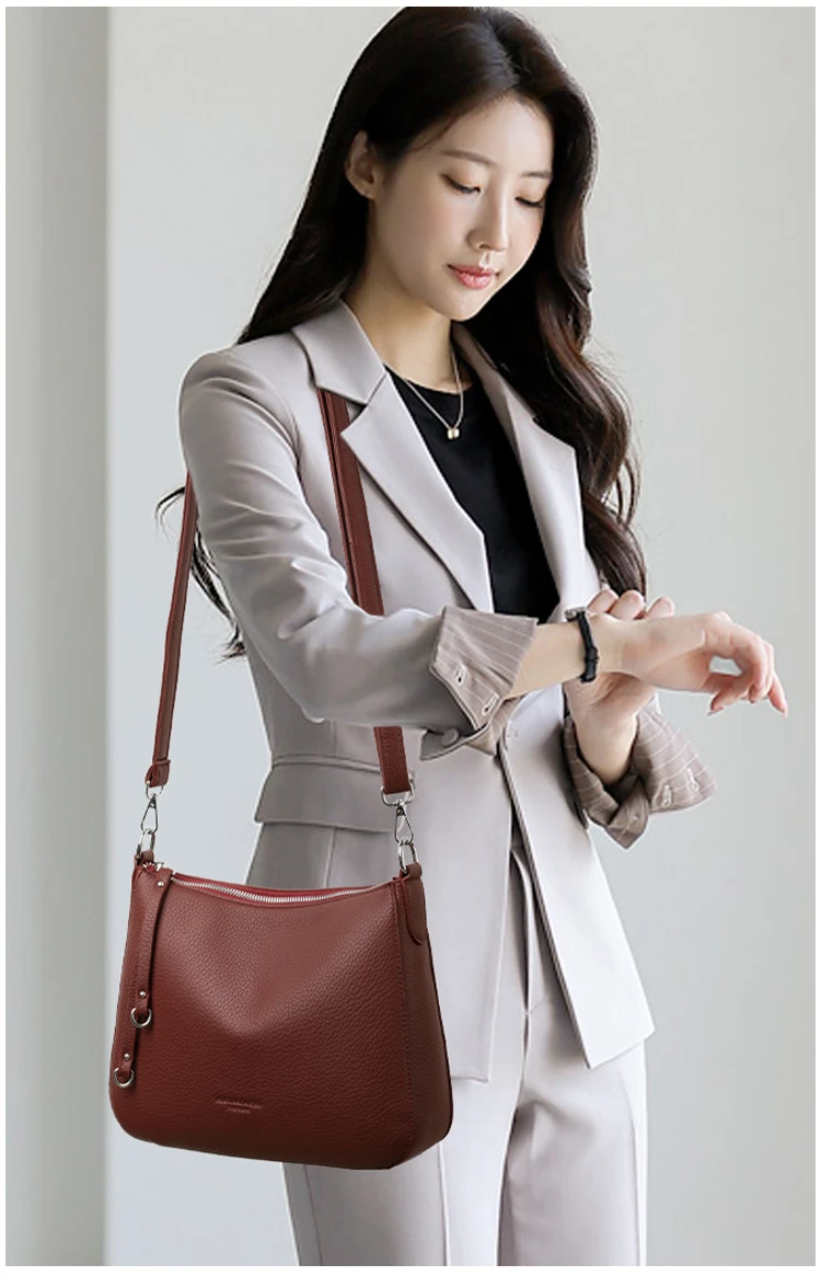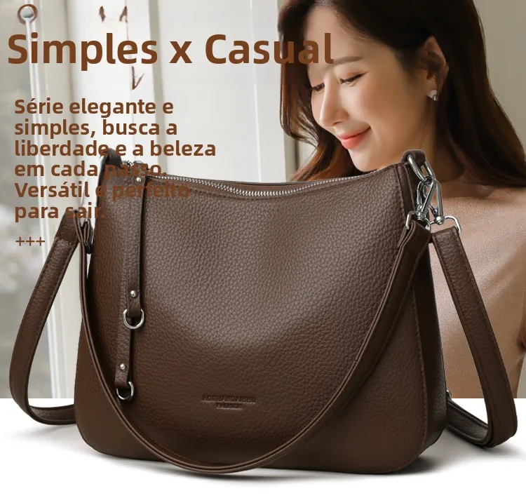 Este saco de couro para mulheres apresenta um design simples e casual, perfeito para qualquer ocasião.