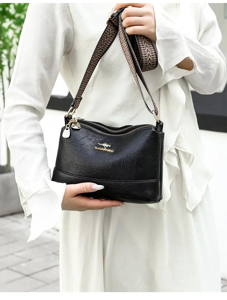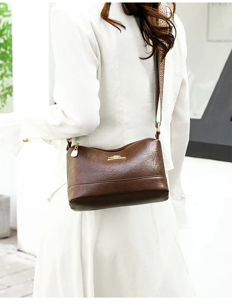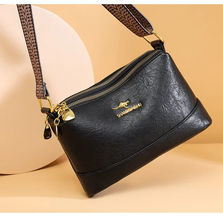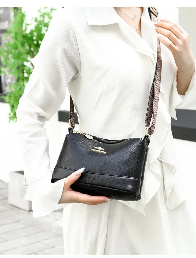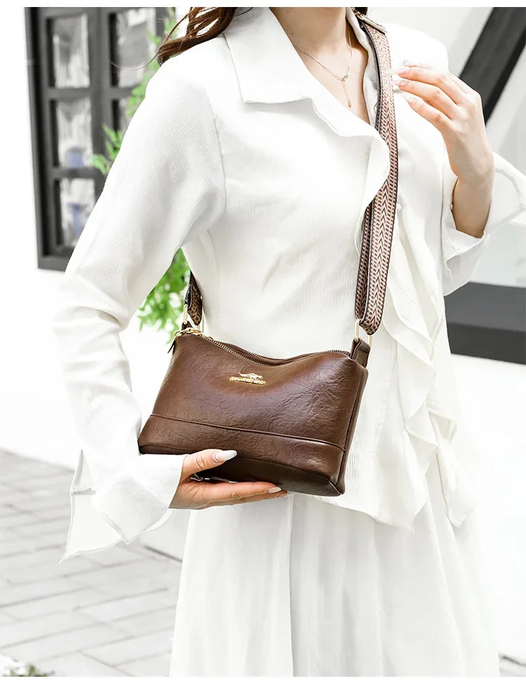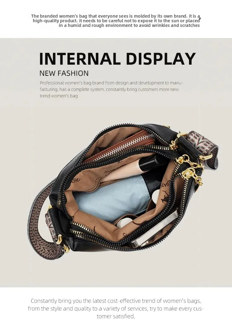 • Material de couro macio:Confeccionada em couro macio, esta bolsa crossbody oferece toque luxuoso e durabilidade, perfeita para o uso diário.
