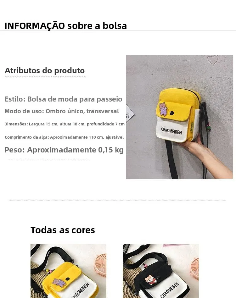 Aposte na durabilidade e no charme descontraído da nossa Bolsa Feminina Estilosa de Lona. Feita para acompanhar a sua rotina agitada com muita personalidade e resistência.
