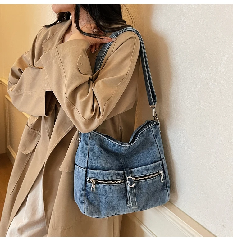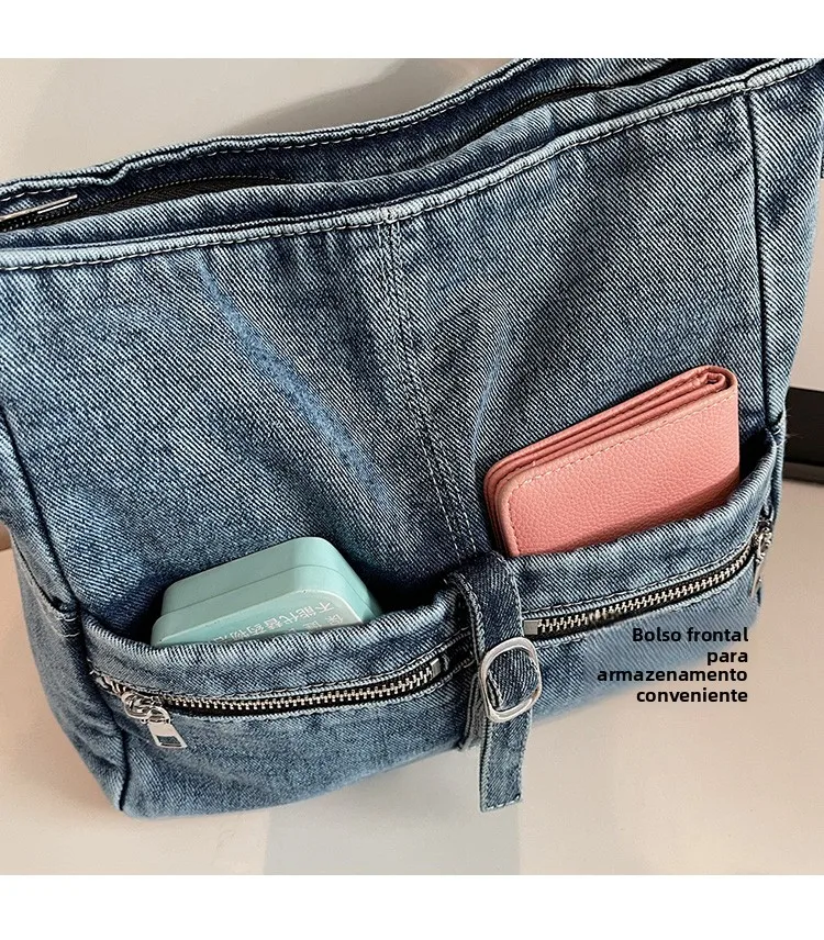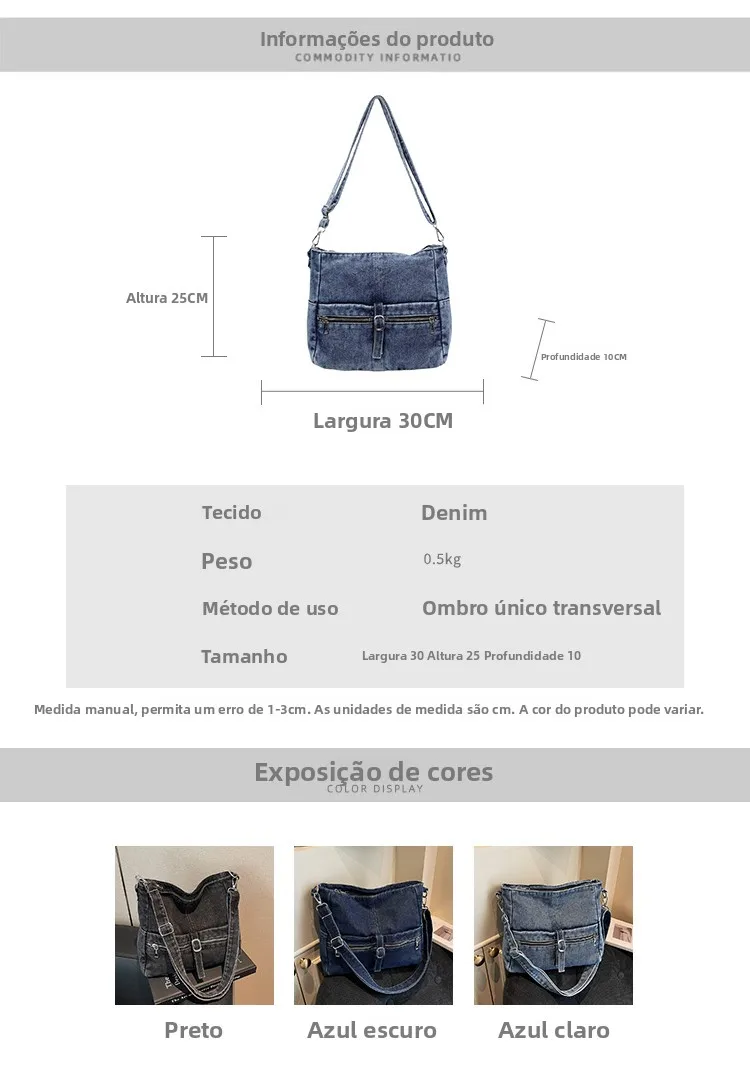 Traga um toque despojado e autêntico ao seu look com a nossa Bolsa Jeans Denim. Perfeita para mulheres modernas que adoram a versatilidade do tecido mais clássico do mundo. Combinando com praticamente qualquer peça do seu guarda-roupa, ela oferece um visual jovem, resistente e super prático para todas as ocasiões.