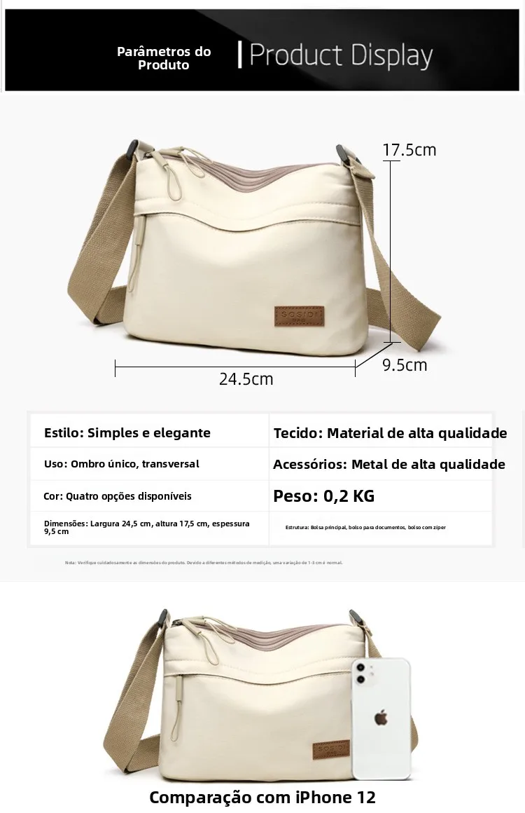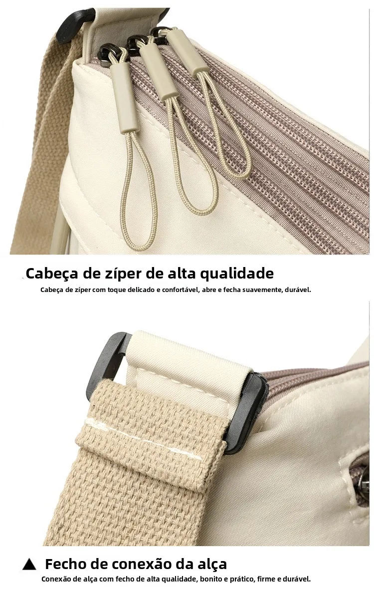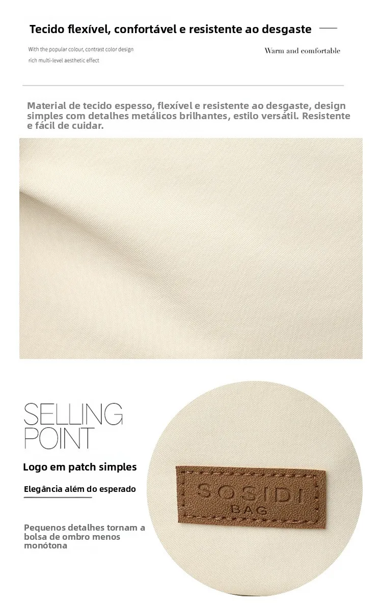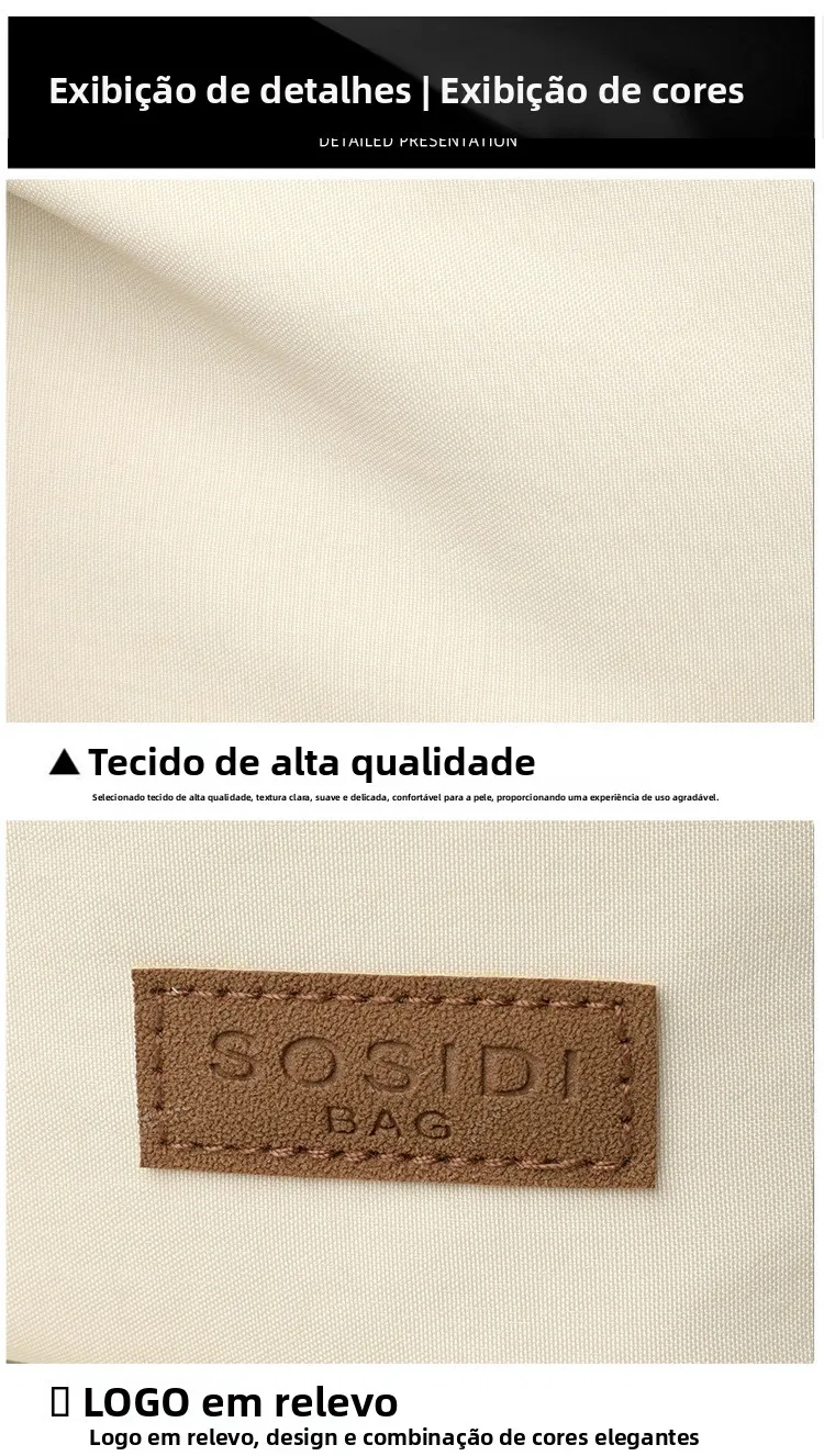 Este pequeno saco de moda é feito de tecido Oxford leve, proporcionando conforto e durabilidade.