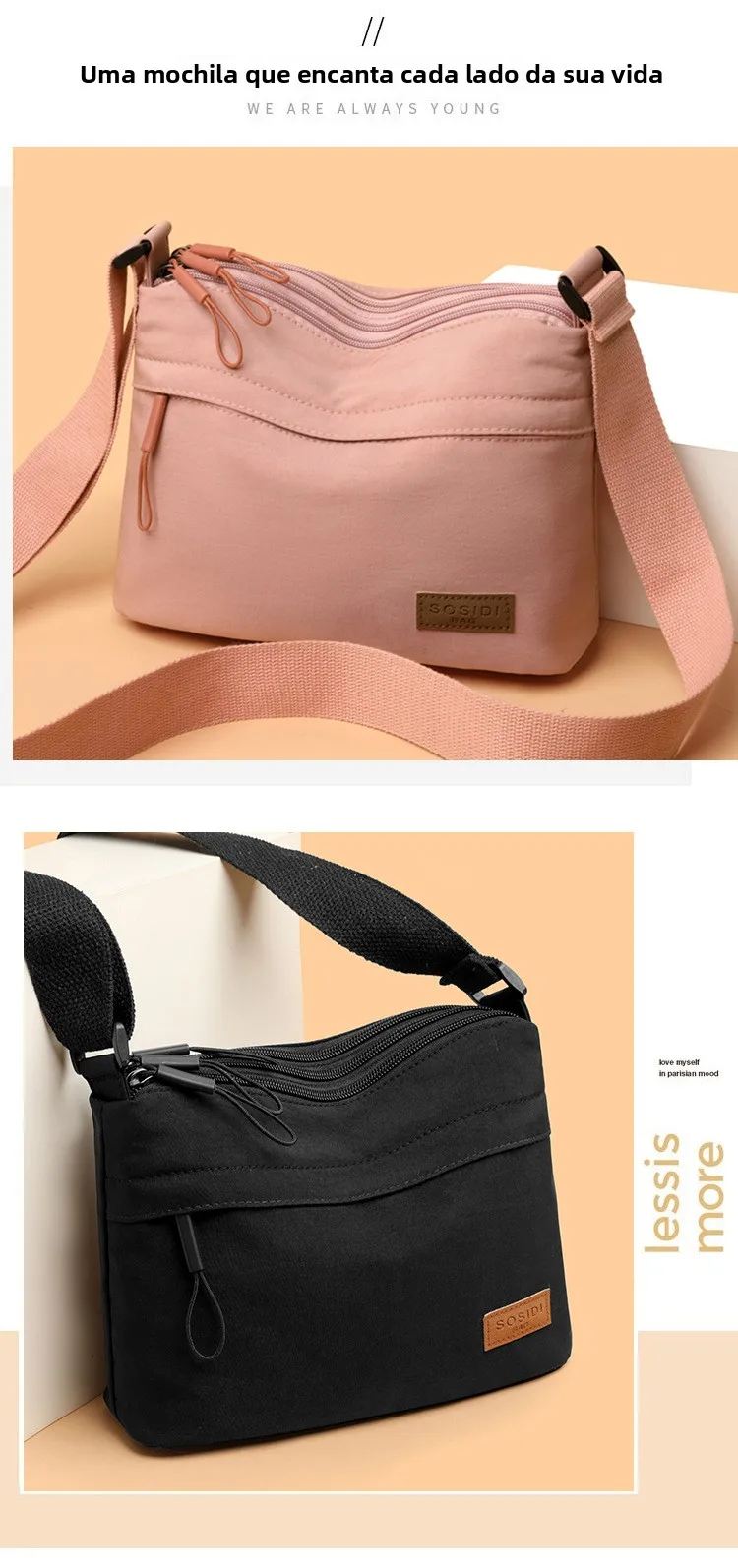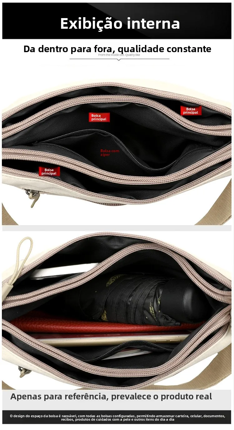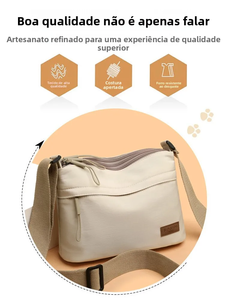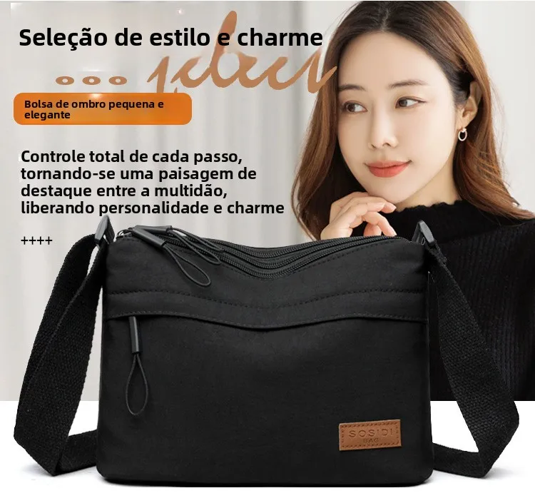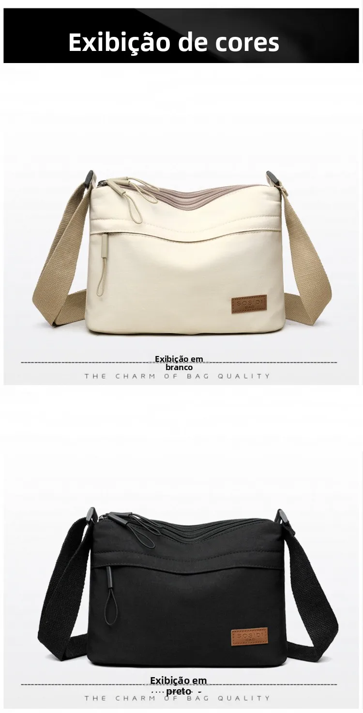 Este pequeno saco de moda é feito de tecido Oxford leve, proporcionando conforto e durabilidade.