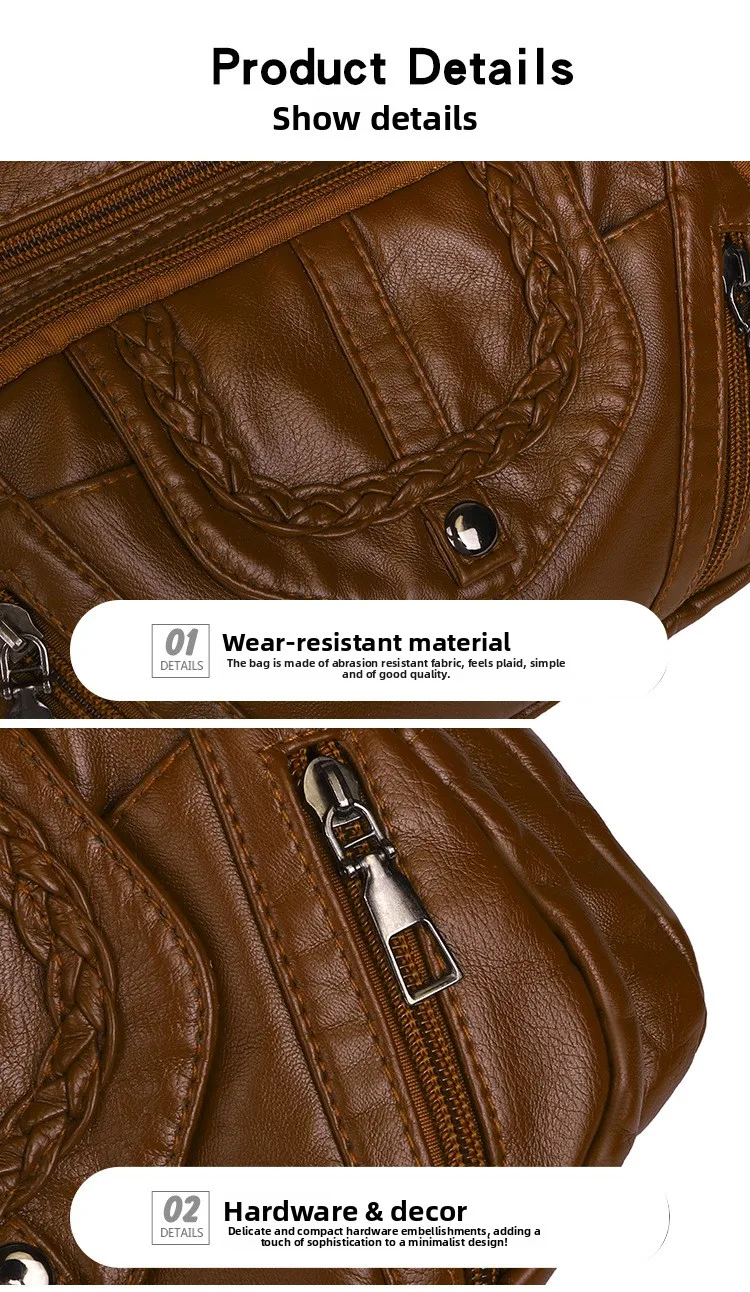 Fabricada em material PU macio, esta bolsa combina durabilidade com uma sensação luxuosa.