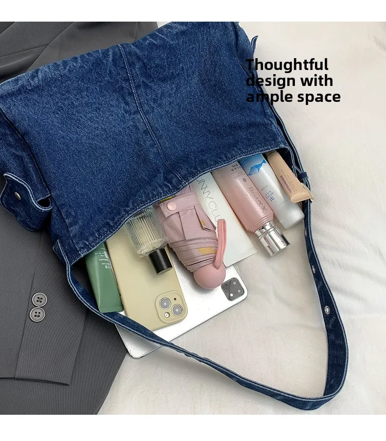 Traga um toque despojado e autêntico ao seu look com a nossa Bolsa Jeans Denim. Perfeita para mulheres modernas que adoram a versatilidade do tecido mais clássico do mundo. Combinando com praticamente qualquer peça do seu guarda-roupa, ela oferece um visual jovem, resistente e super prático para todas as ocasiões.