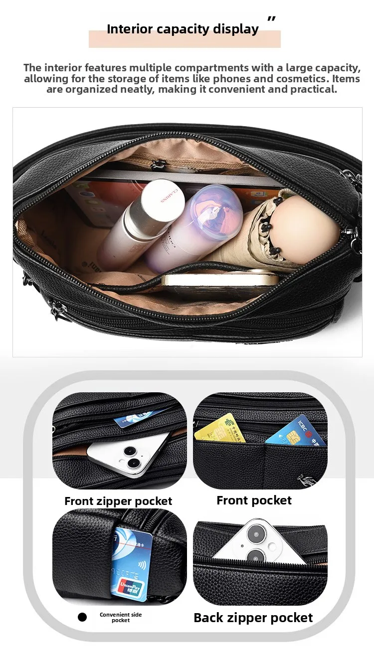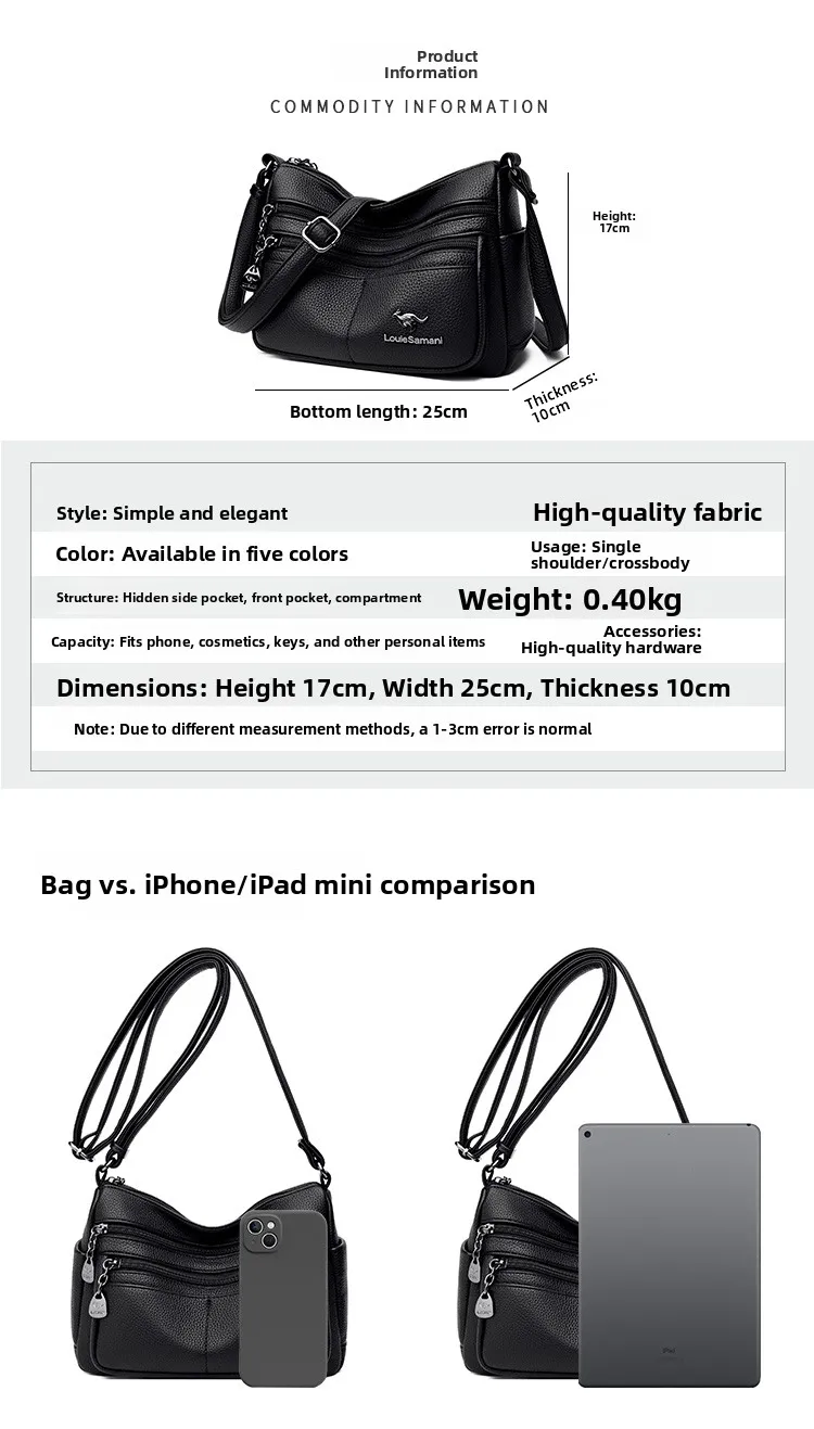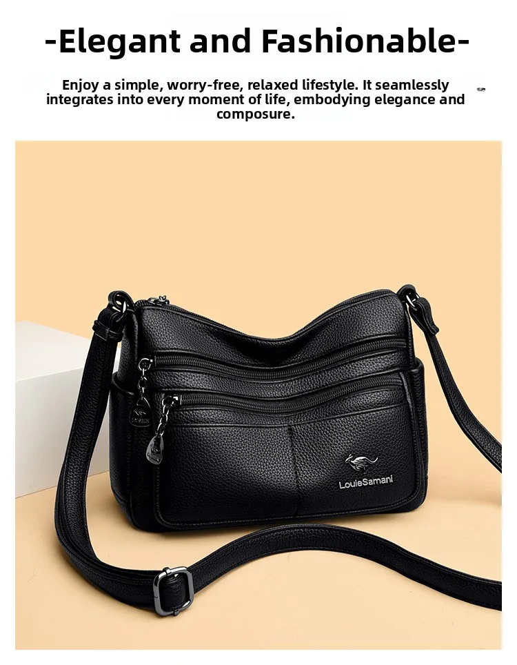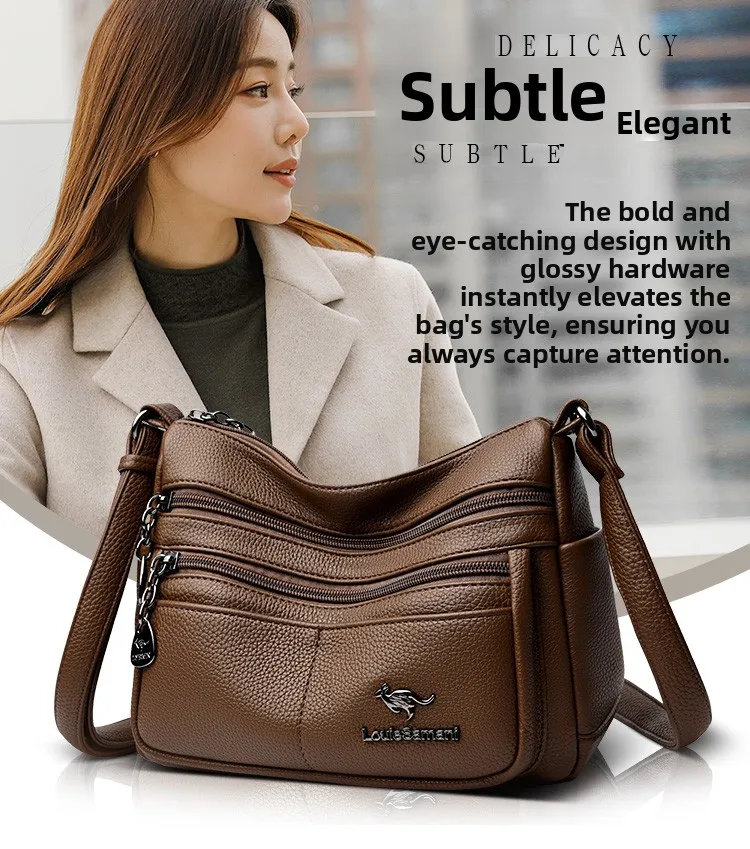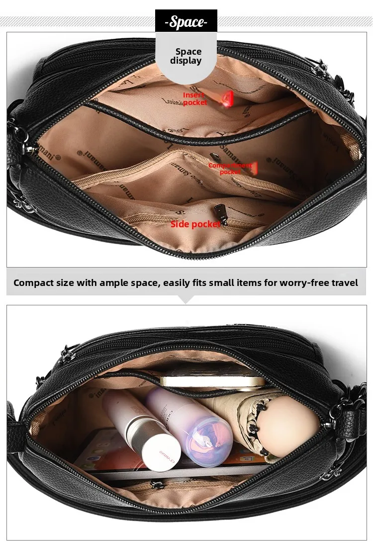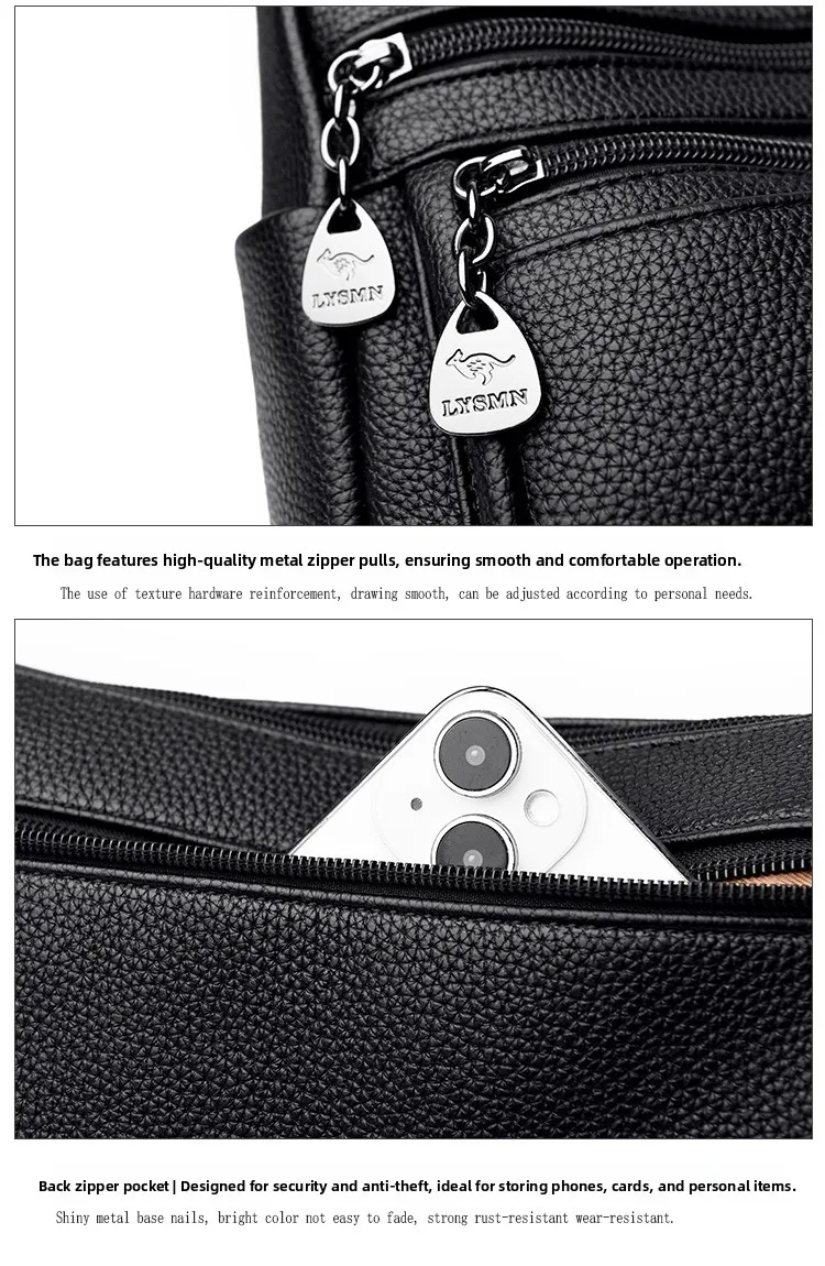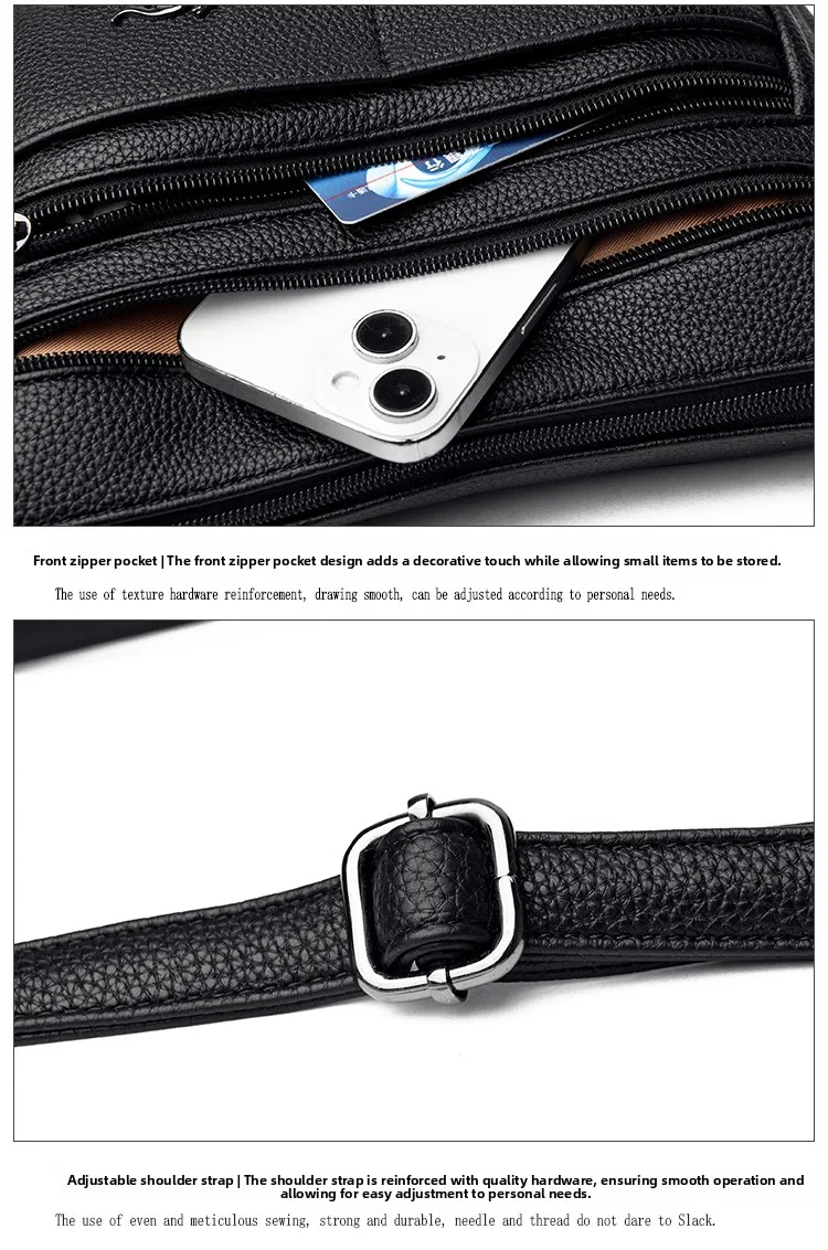 Feita de couro de vaca de segunda camada, esta bolsa é macia e durável, garantindo um longo tempo de uso.