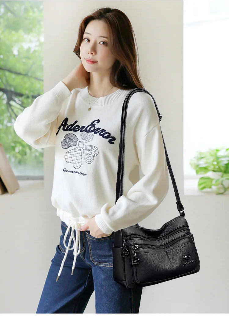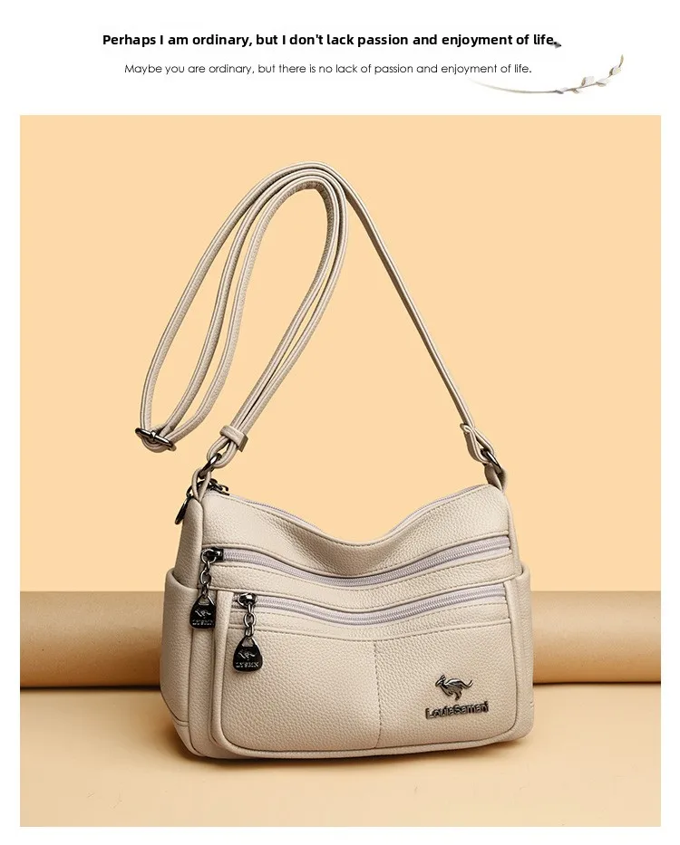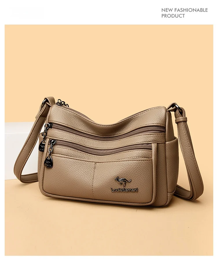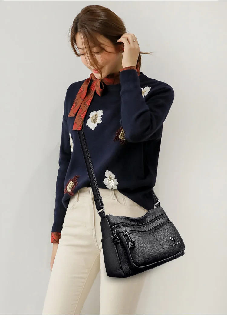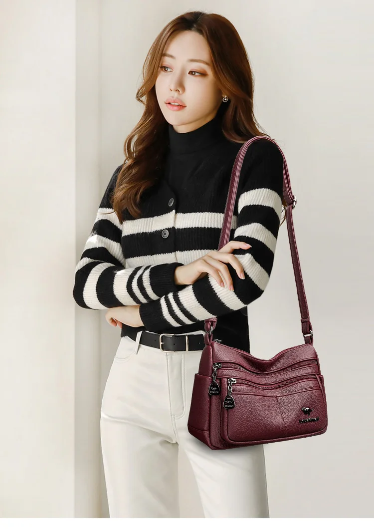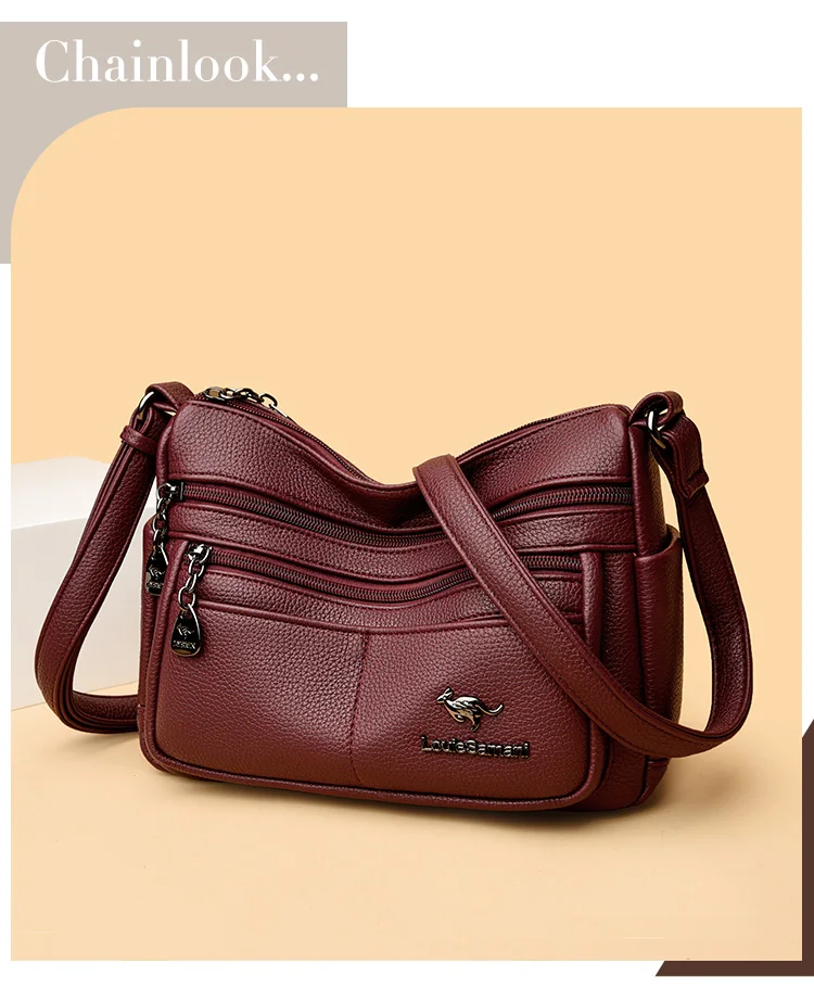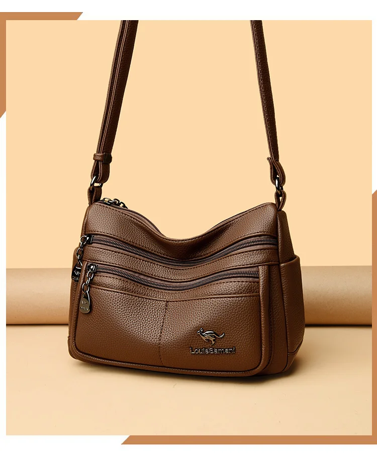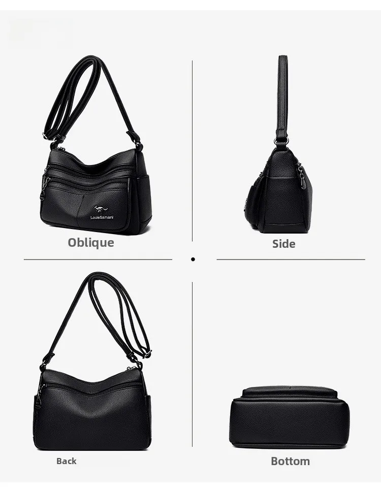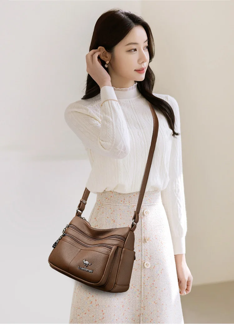 Feita de couro de vaca de segunda camada, esta bolsa é macia e durável, garantindo um longo tempo de uso.