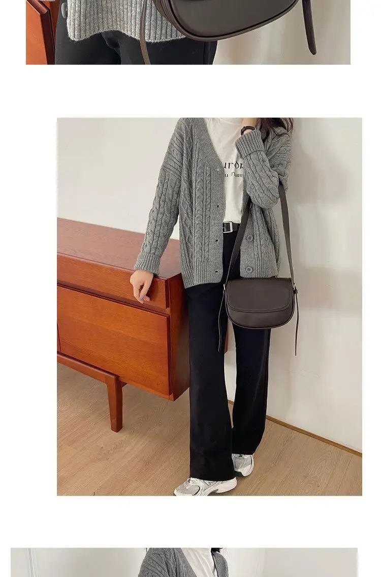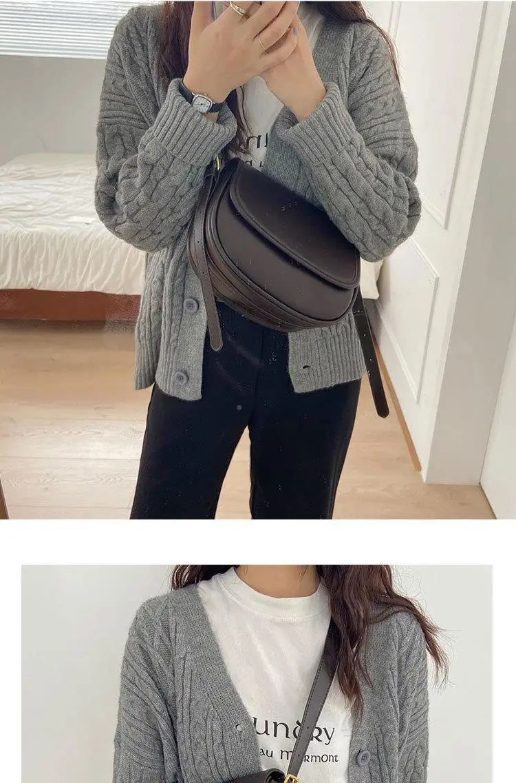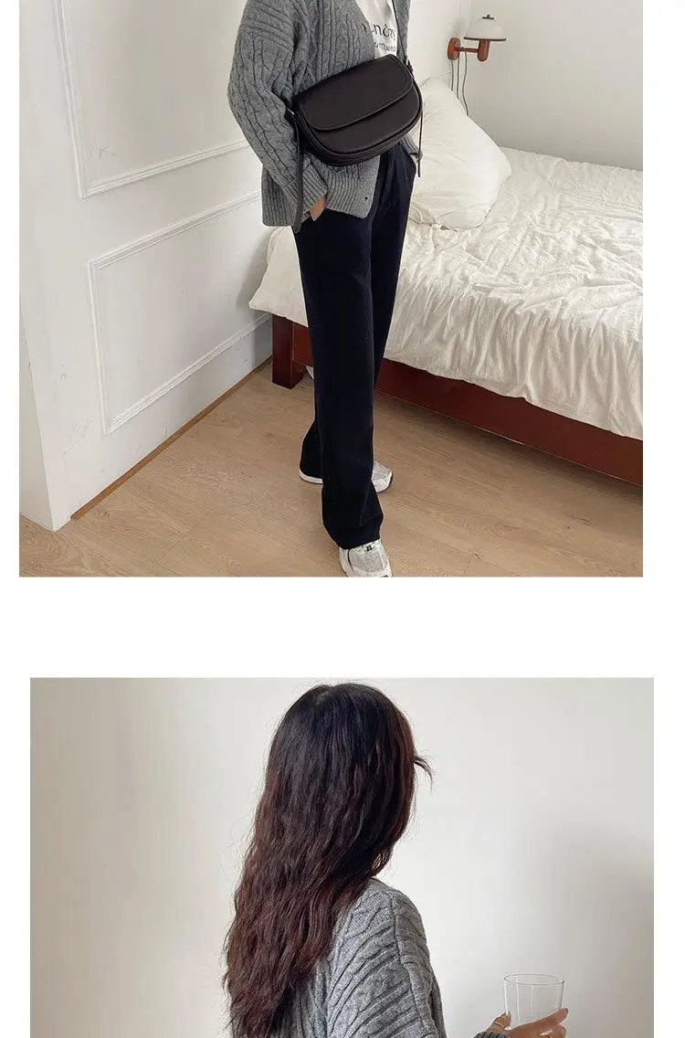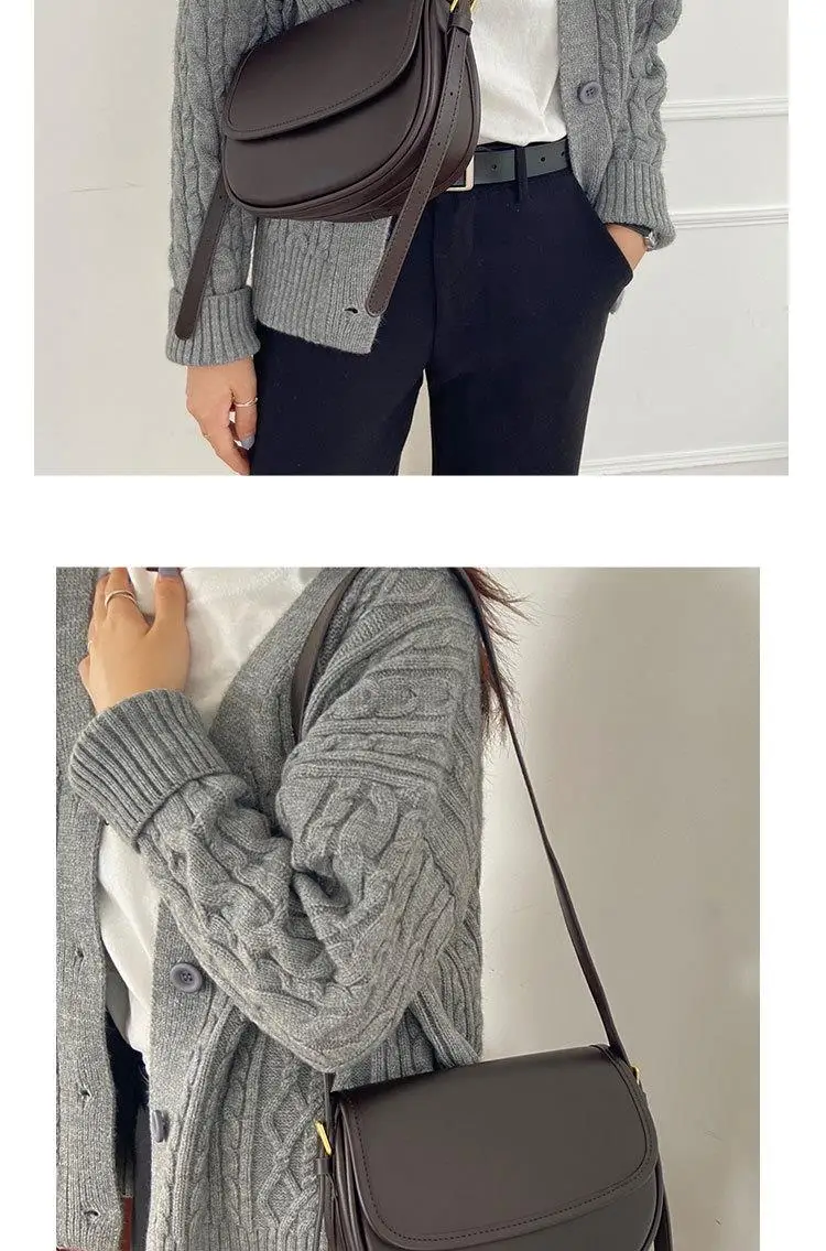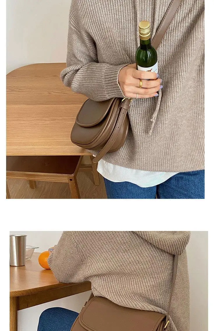Este saco de cavalo apresenta um design coreano moderno e elegante, perfeito para a mulher contemporânea.
