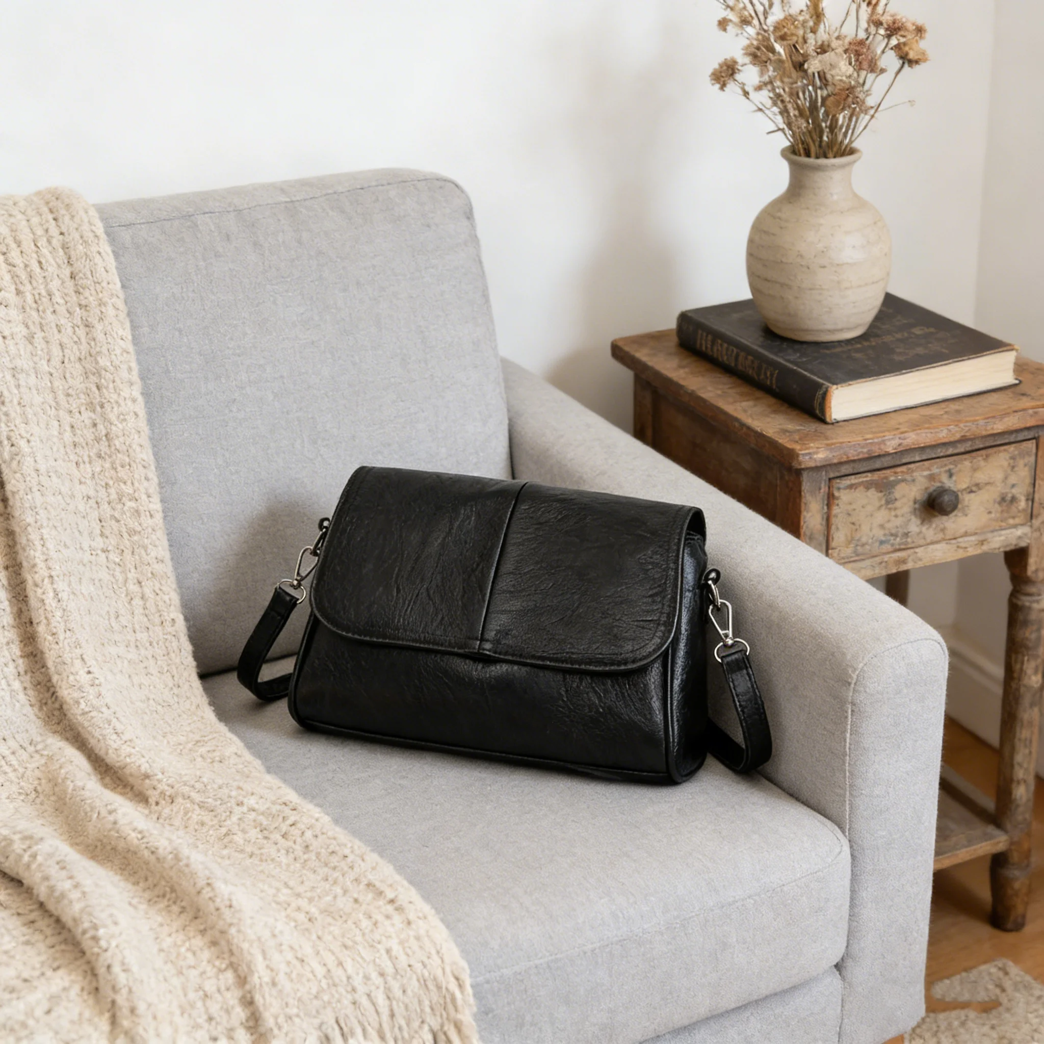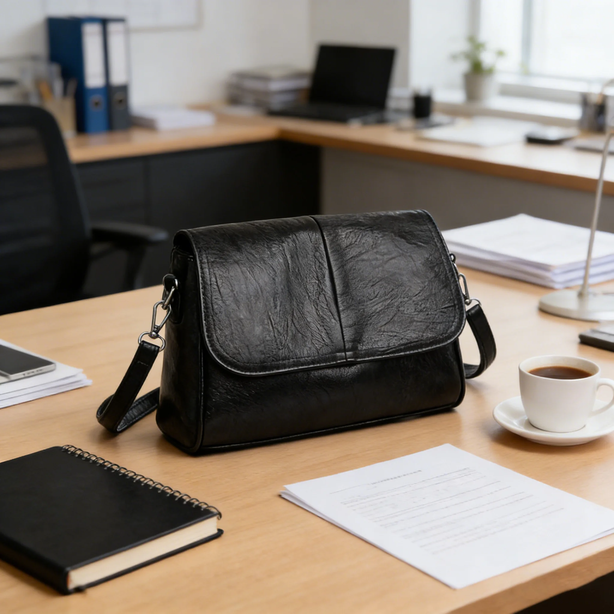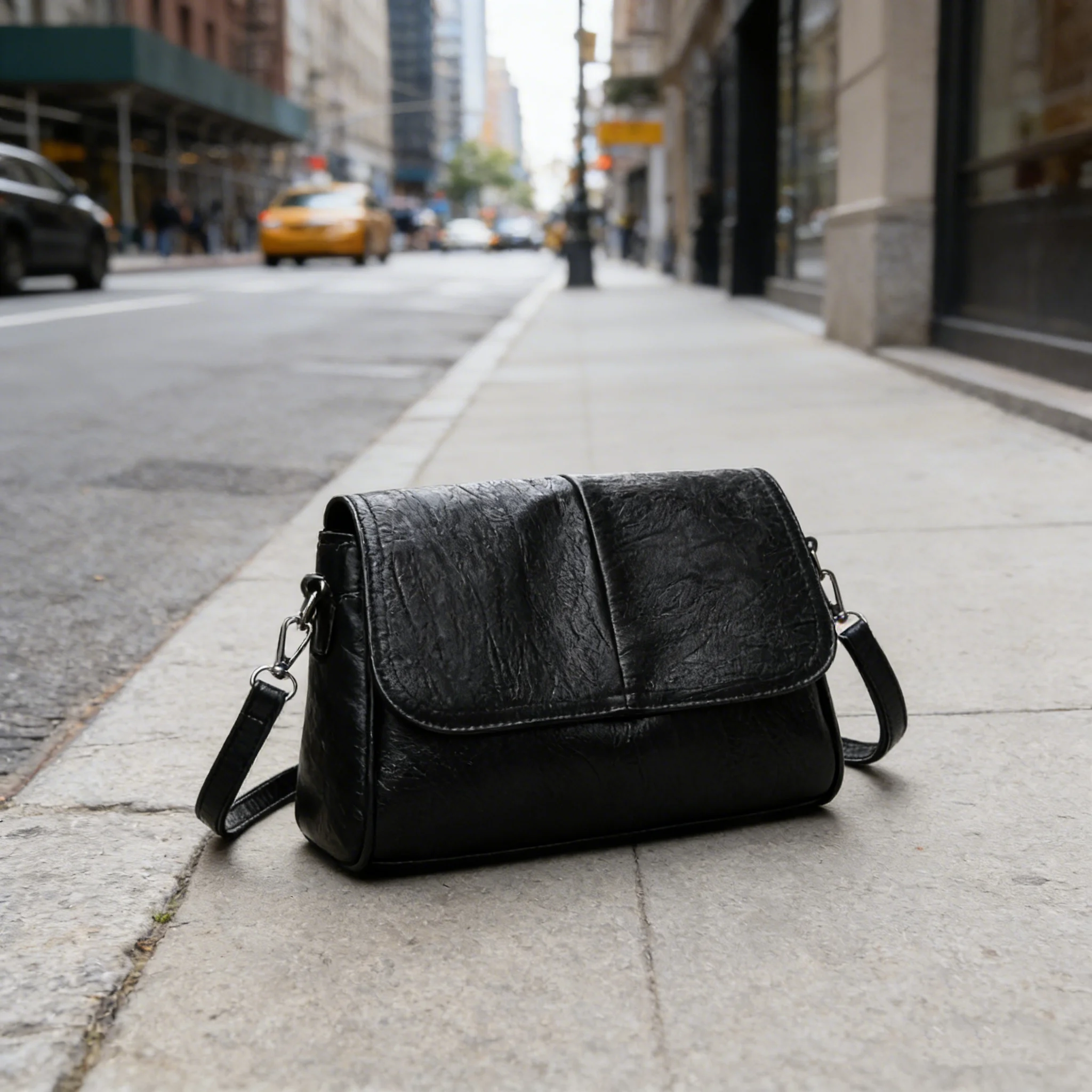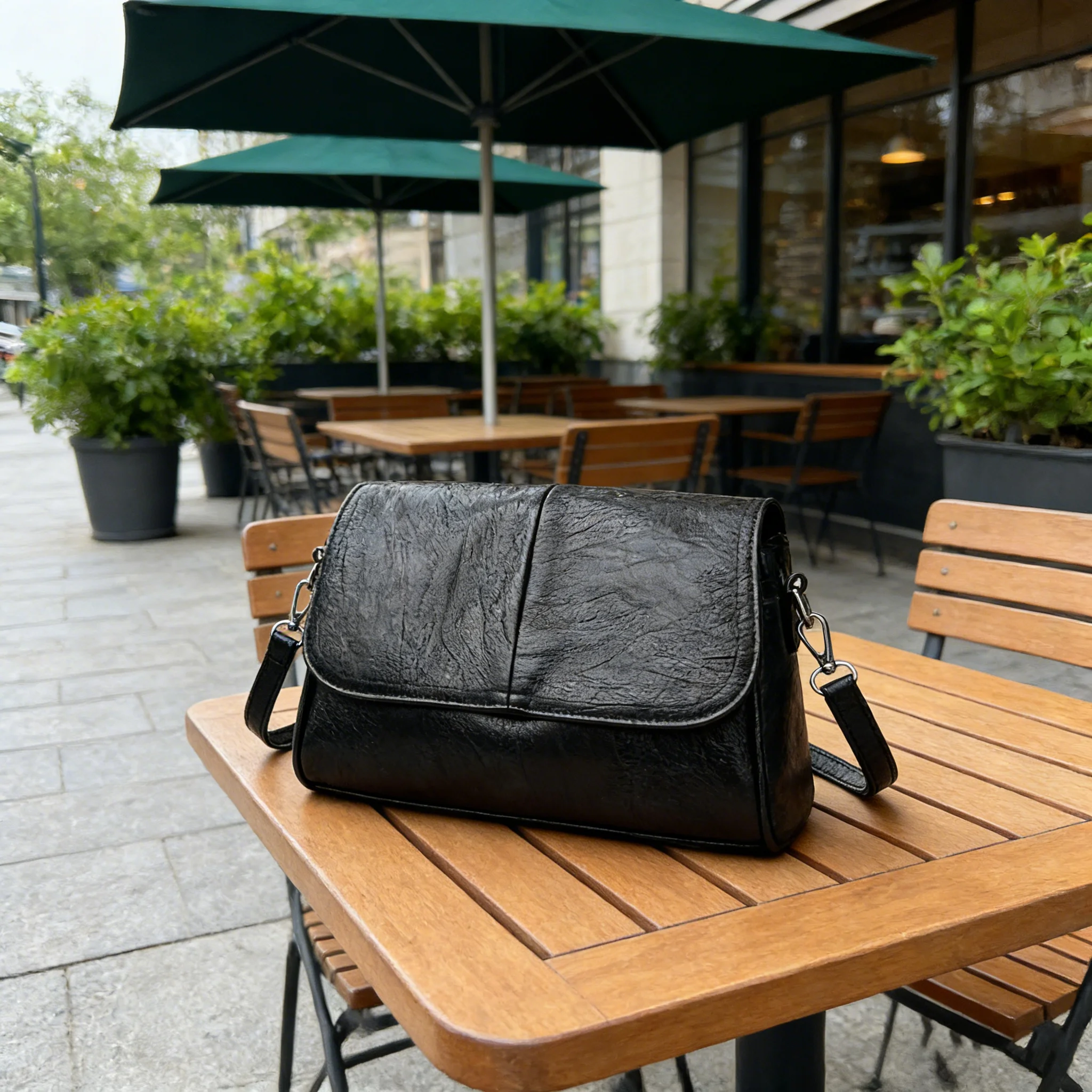 Bolsa Transversal de Couro Encerado Retrô, com Textura e Toque Vintage, Design de Aba Simples e Elegante, e Alça de Ombro Ajustável.