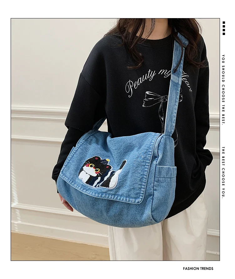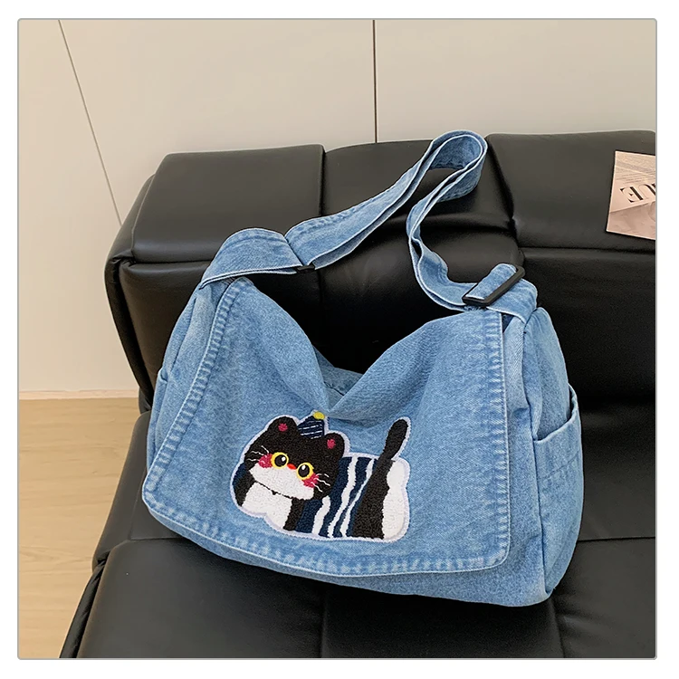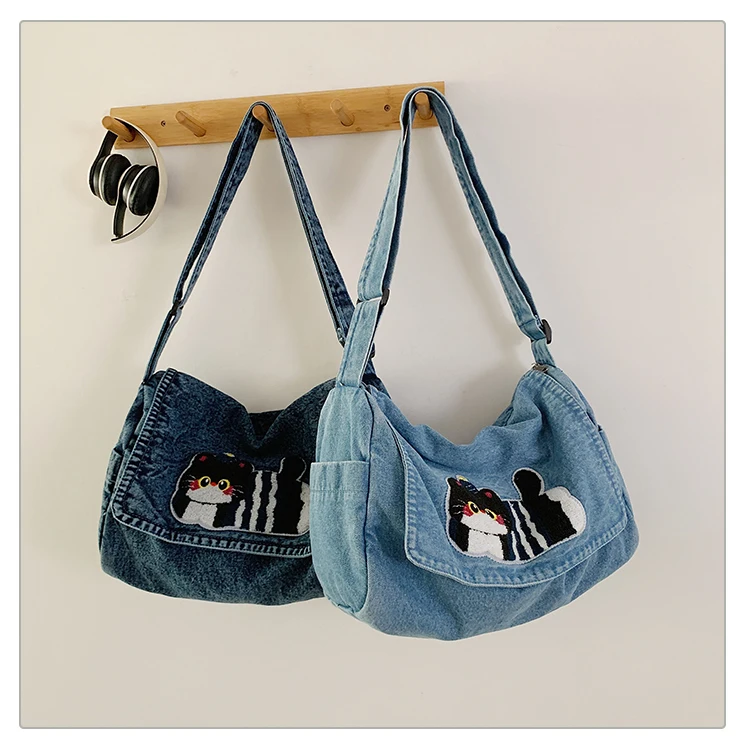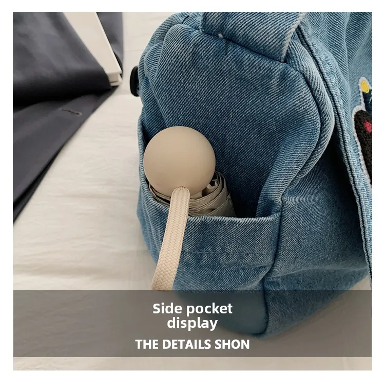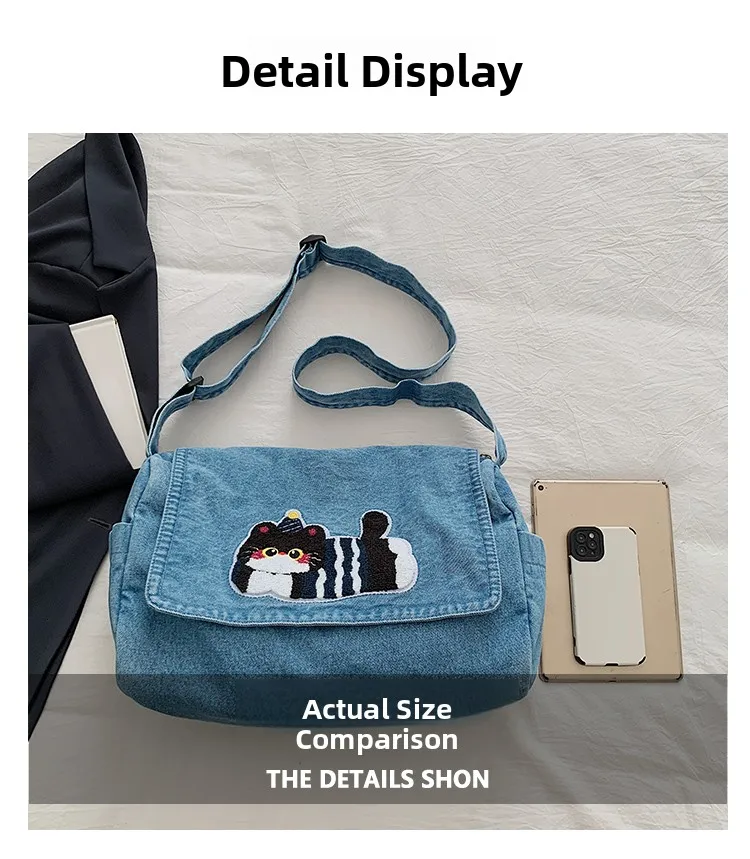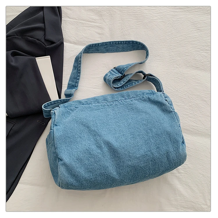 Feito de lona de jeans, este saco de mochila é durável e resistente, ideal para uso diário.