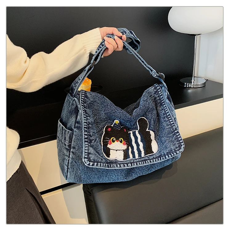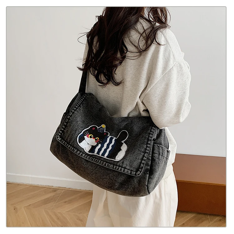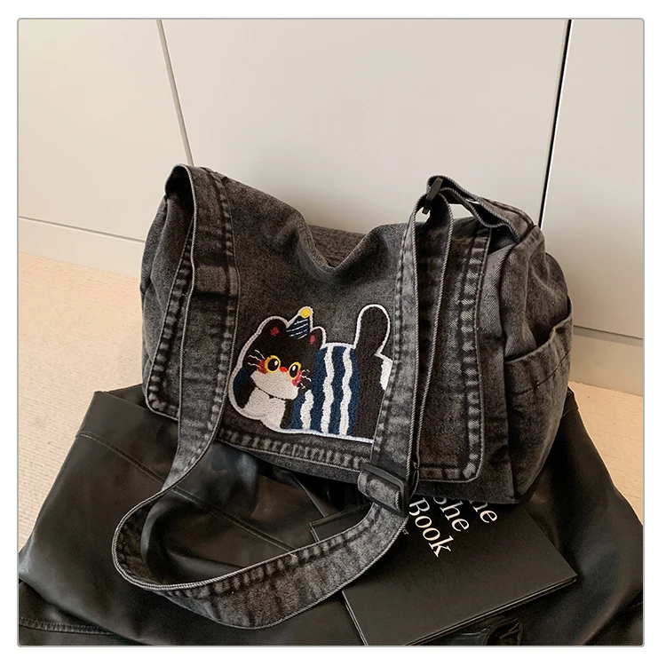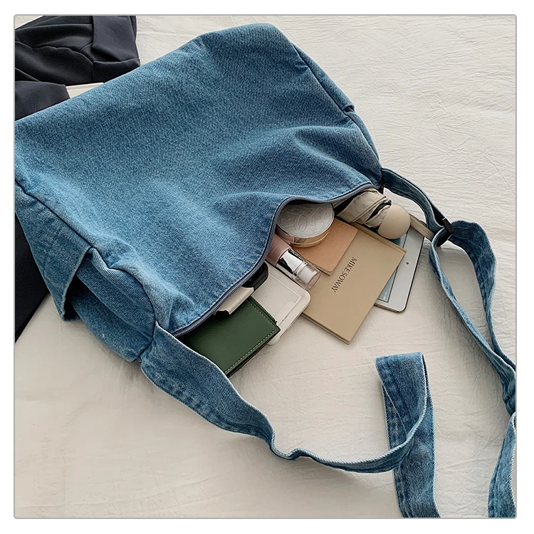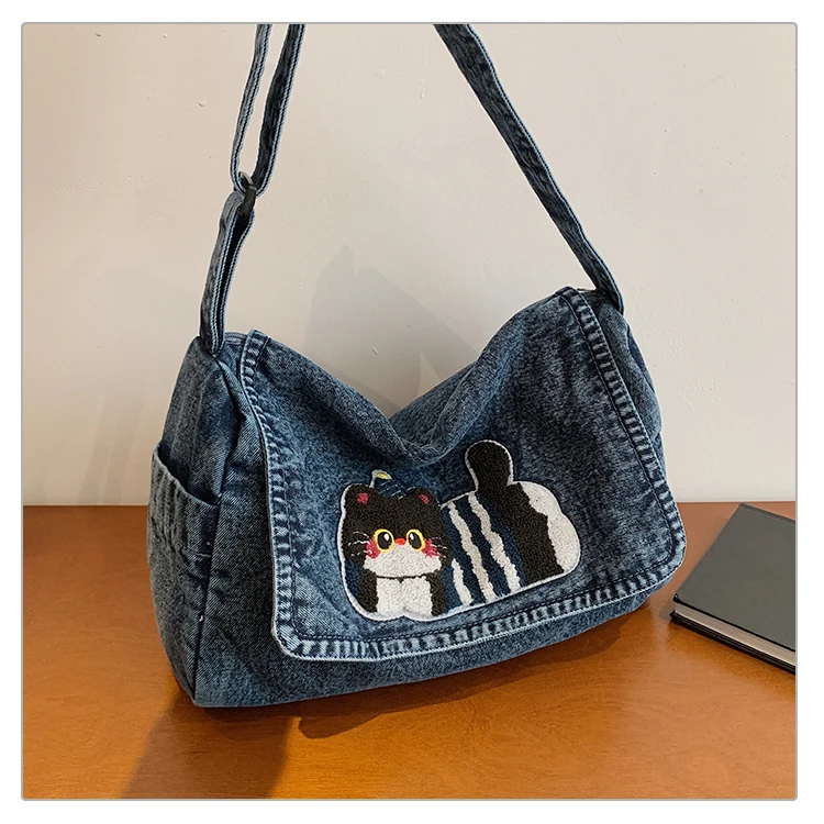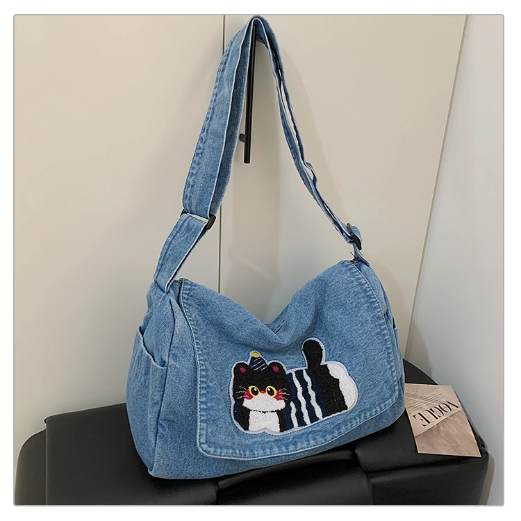 Feito de lona de jeans, este saco de mochila é durável e resistente, ideal para uso diário.