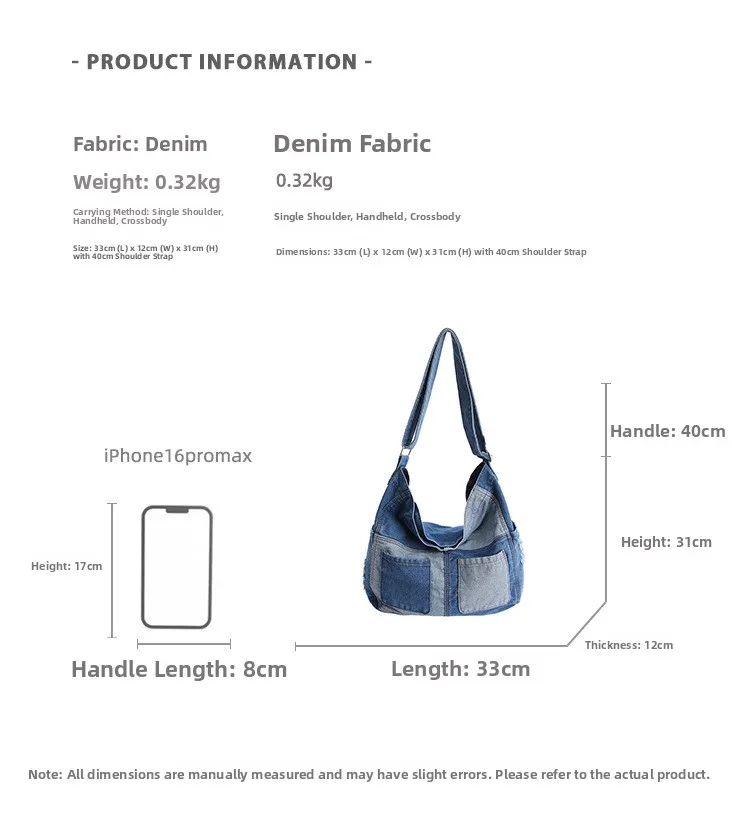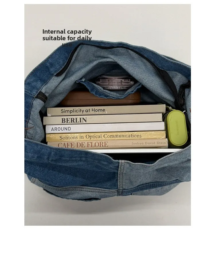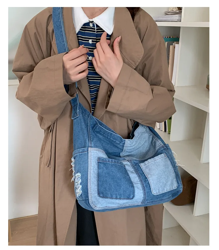 Feita em lona jeans durável, esta bolsa oferece uma combinação de estilo e funcionalidade, perfeita para o uso diário.