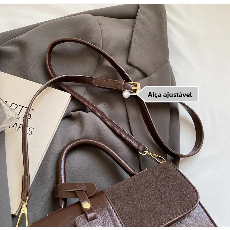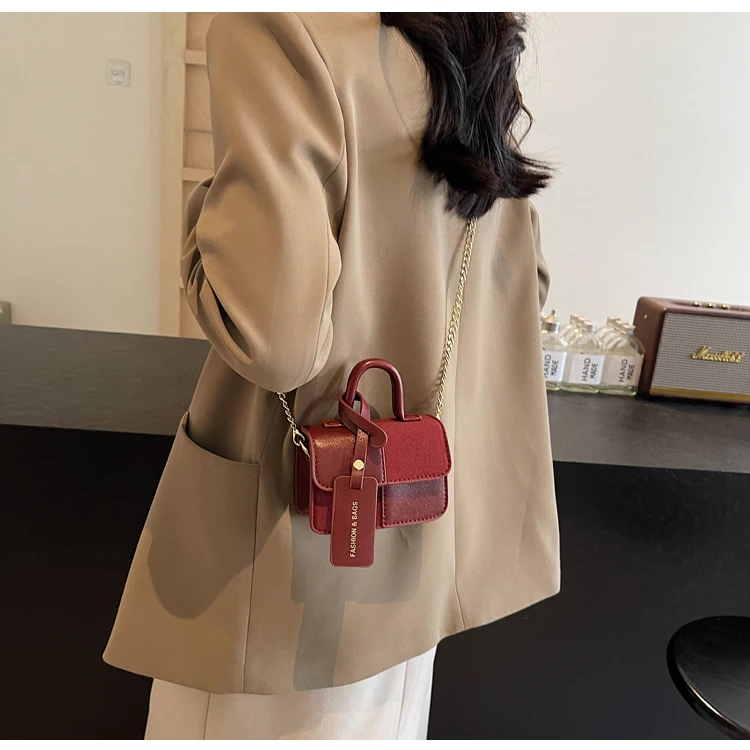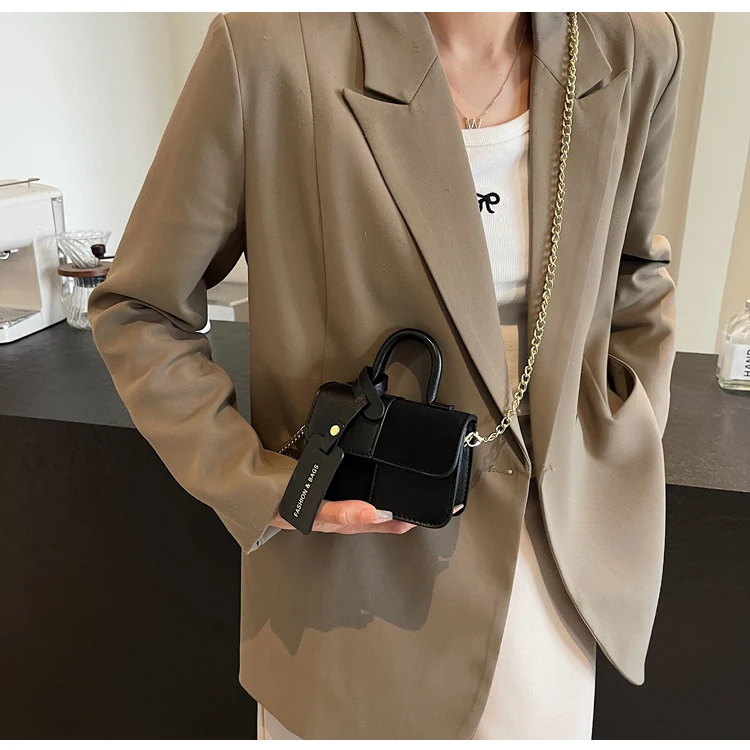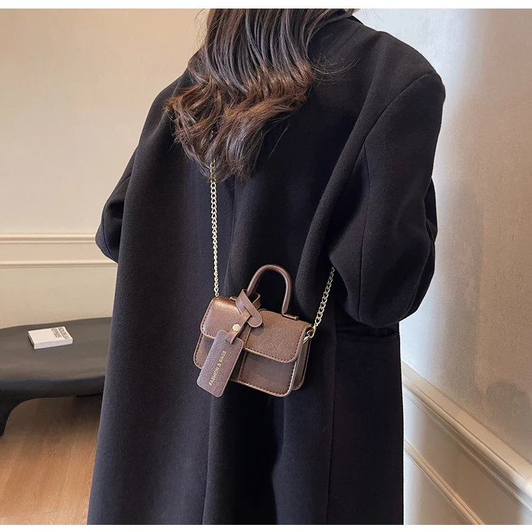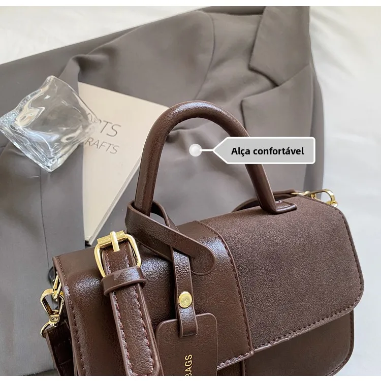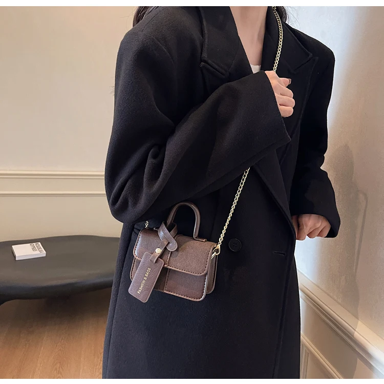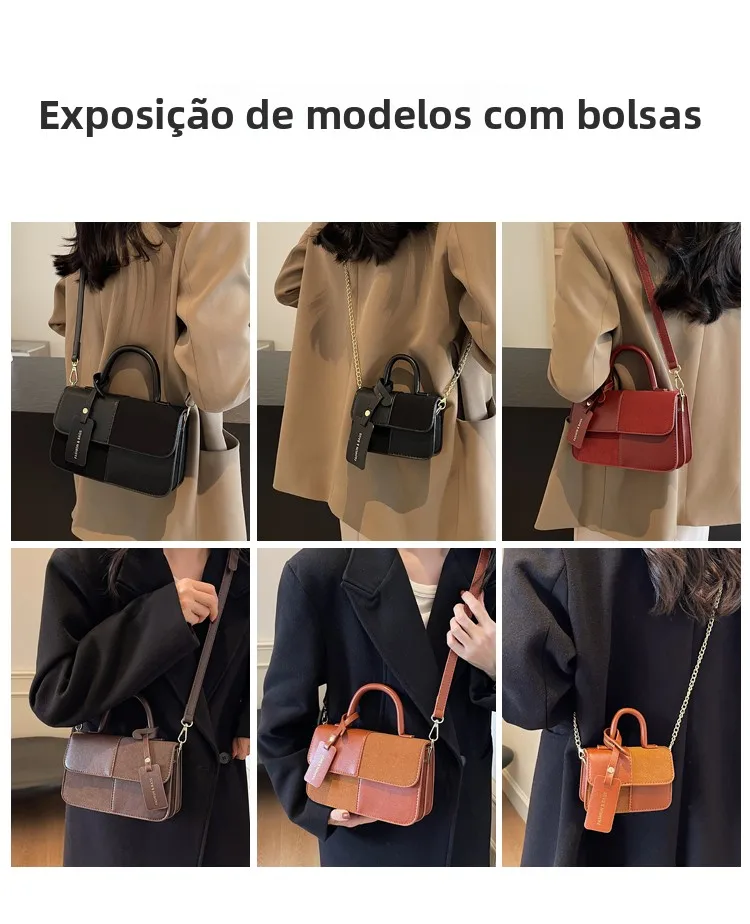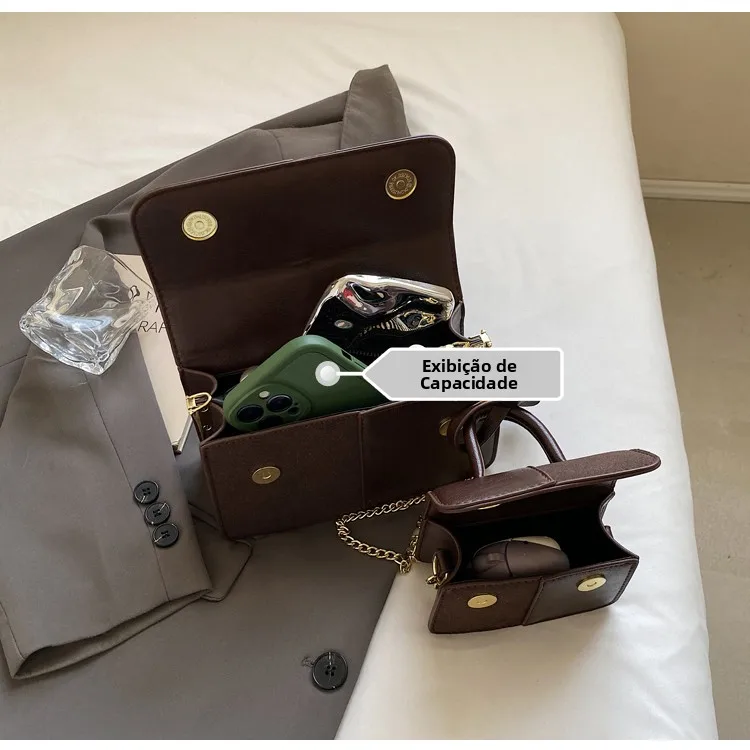 Este mini bolsa feminina apresenta um estilo retro, combinando perfeitamente com o conceito de moda de 2024.