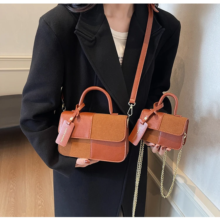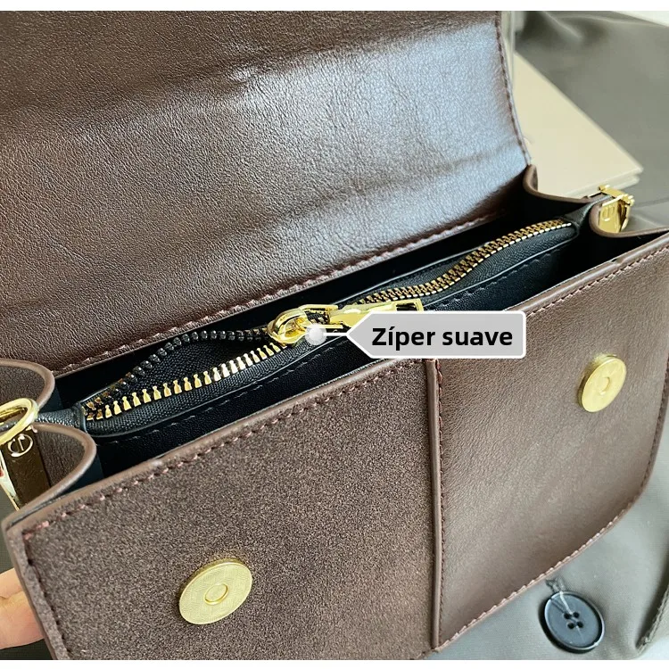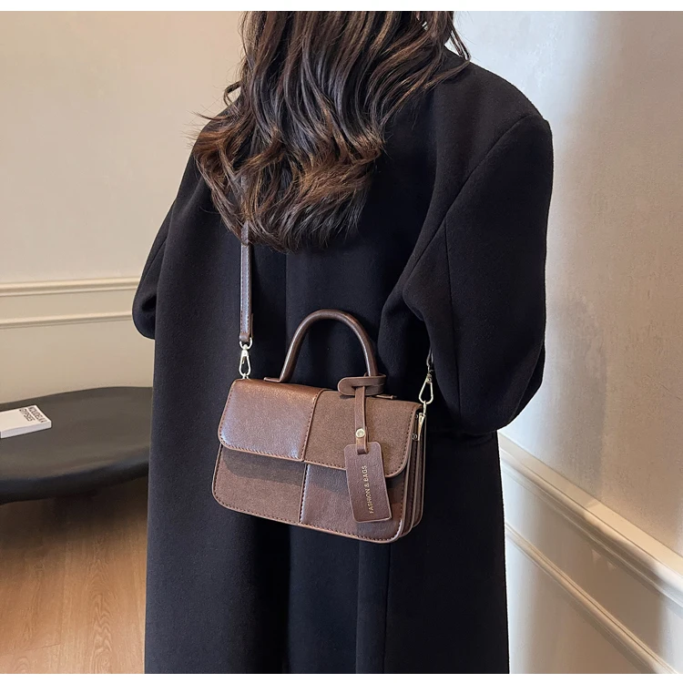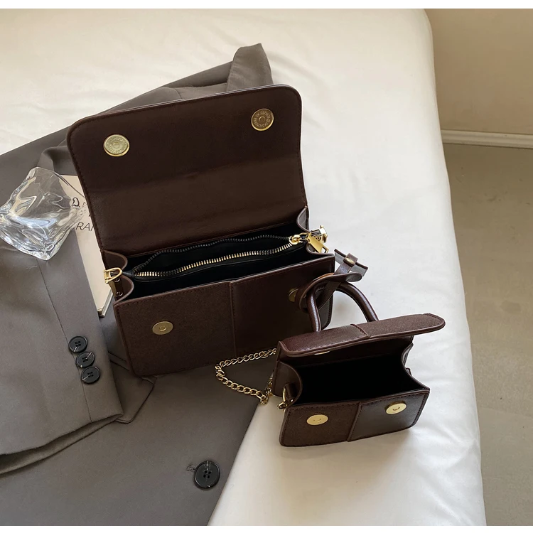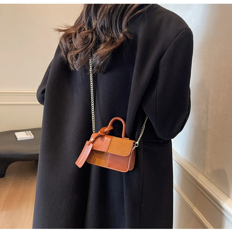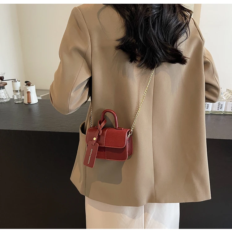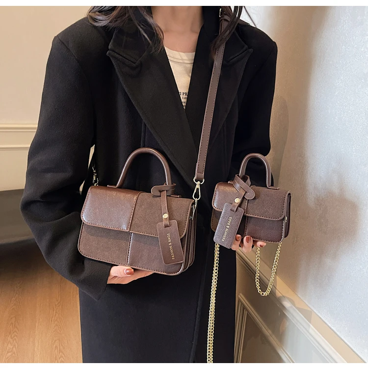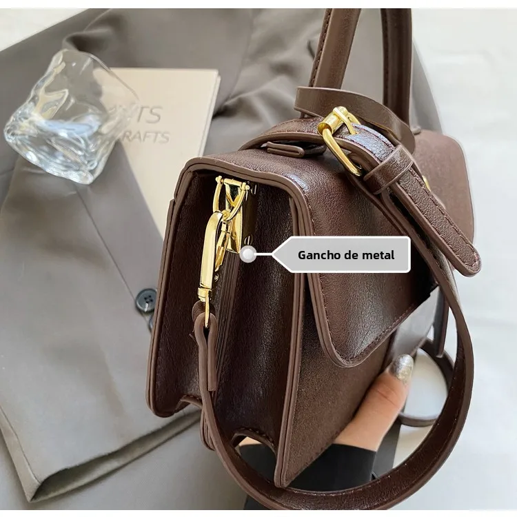 Este mini bolsa feminina apresenta um estilo retro, combinando perfeitamente com o conceito de moda de 2024.