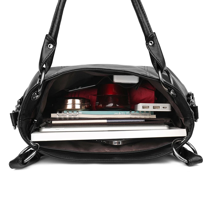 Para mulheres que precisam levar a vida na bolsa, apresentamos a nossa Bolsa Feminina Grande Espaçosa e Moderna. A combinação perfeita entre funcionalidade e sofisticação. Com espaço generoso, ela é ideal para acomodar o seu portátil (notebook), cadernos, nécessaire e tudo o que a sua rotina agitada exige.