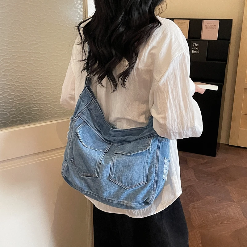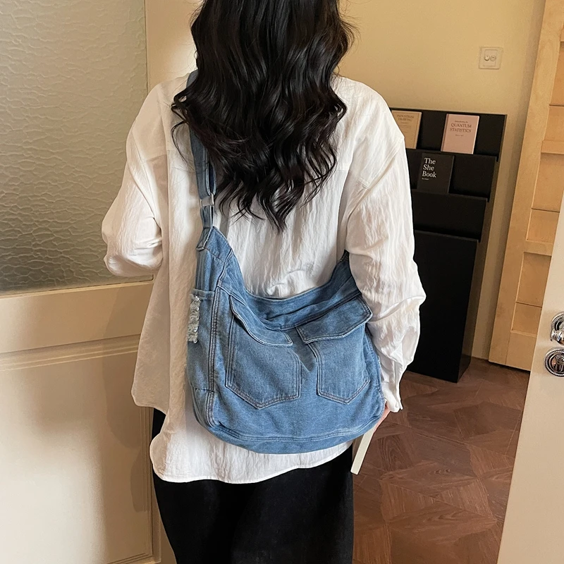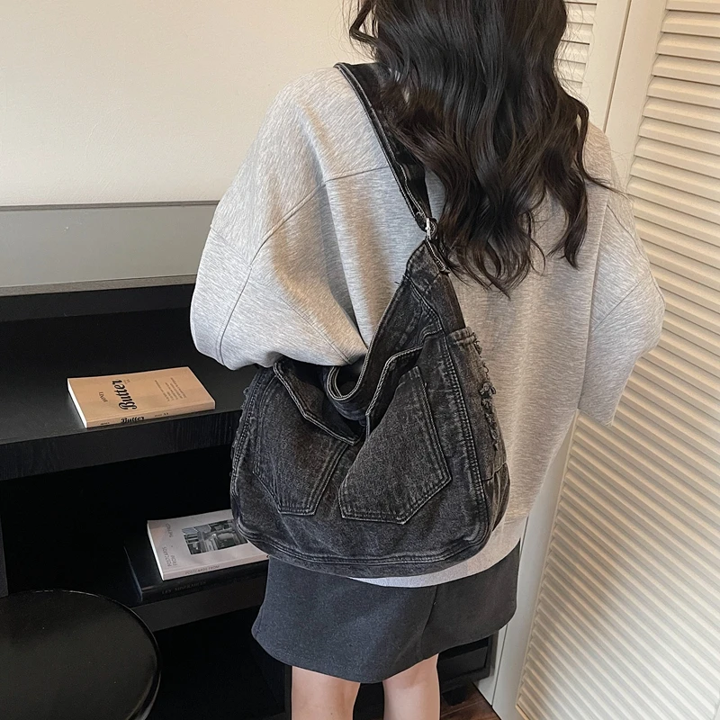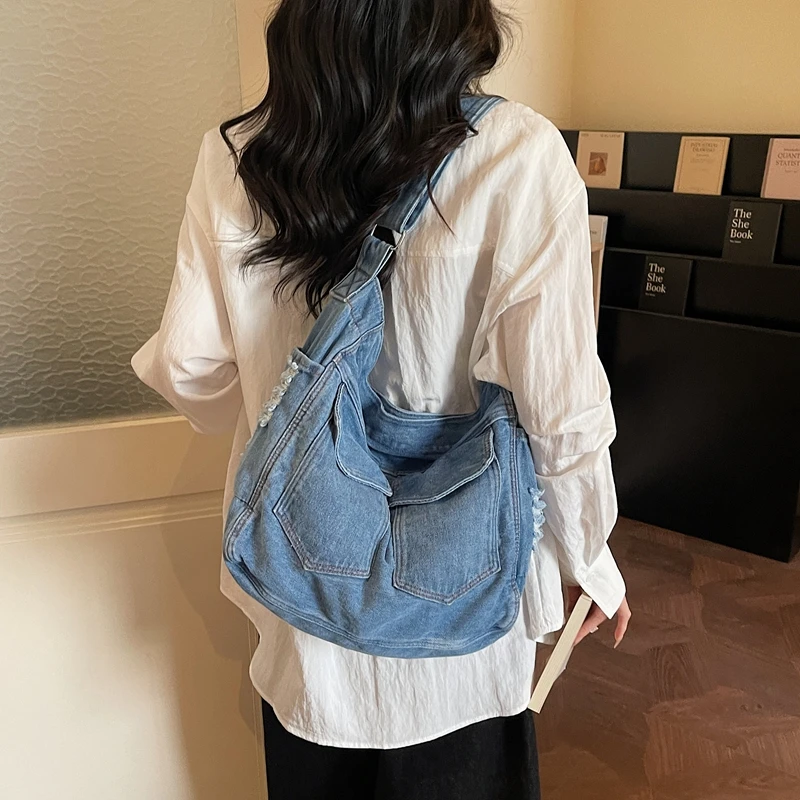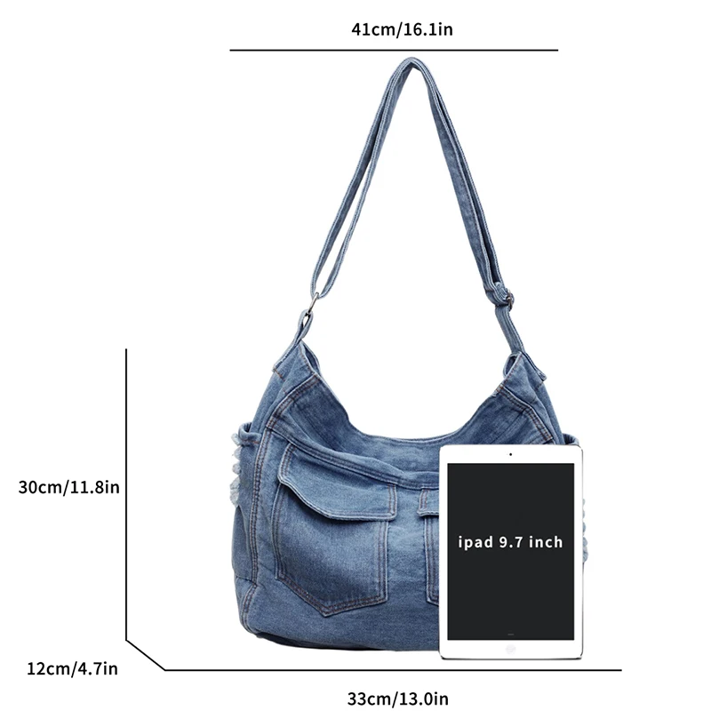 Traga um toque despojado e autêntico ao seu look com a nossa Bolsa Jeans Denim. Perfeita para mulheres modernas que adoram a versatilidade do tecido mais clássico do mundo. Combinando com praticamente qualquer peça do seu guarda-roupa, ela oferece um visual jovem, resistente e super prático para todas as ocasiões.
