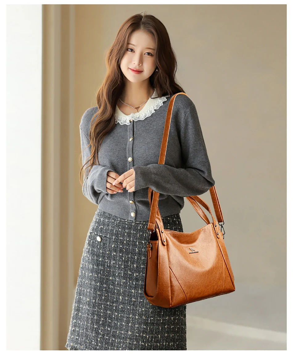 Bolsa Tote Feminina Casual de Luxo, Bolsa de Mão Feminina de Couro de Alta Qualidade, Bolsa de Ombro Feminina, Bolsas Transversais Grandes, Sac A Main.