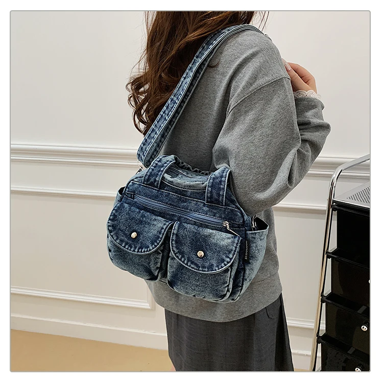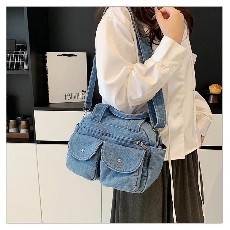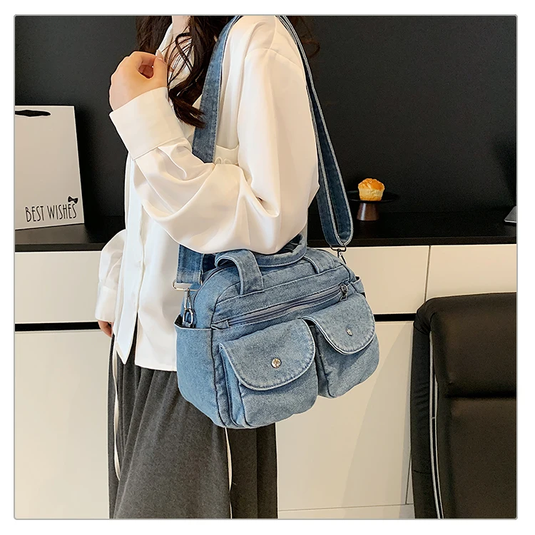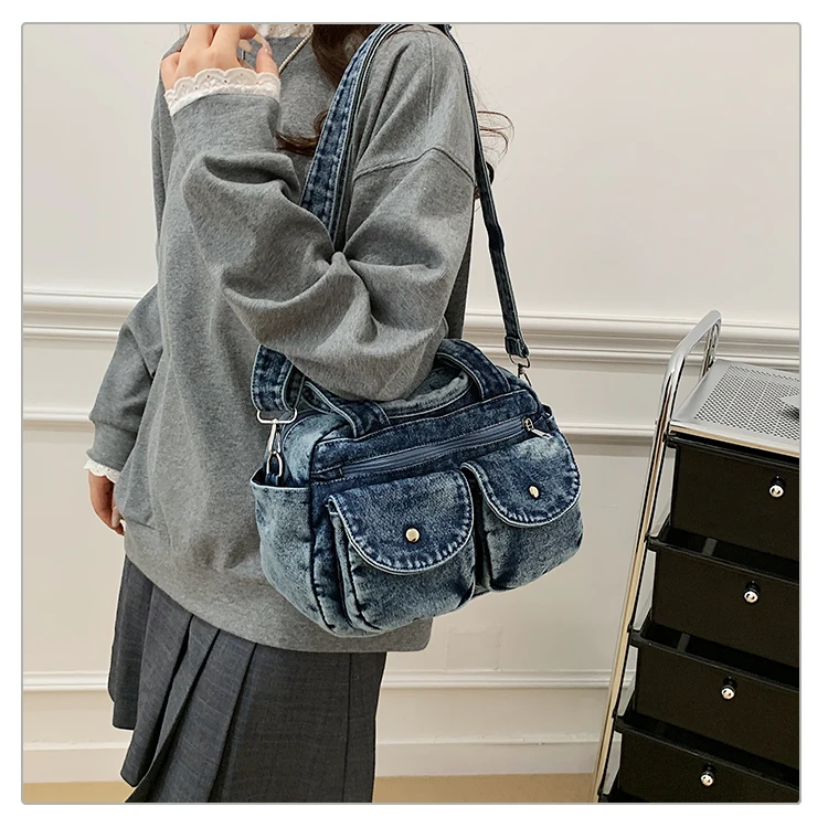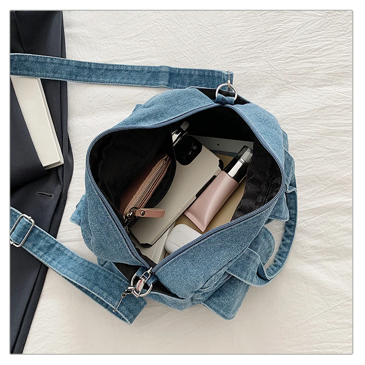 Traga um toque despojado e autêntico ao seu look com a nossa Bolsa Jeans Denim. Perfeita para mulheres modernas que adoram a versatilidade do tecido mais clássico do mundo. Combinando com praticamente qualquer peça do seu guarda-roupa, ela oferece um visual jovem, resistente e super prático para todas as ocasiões.