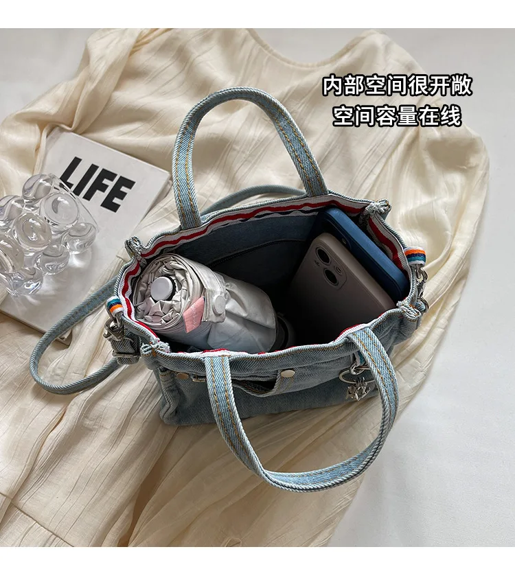 Traga um toque despojado e autêntico ao seu look com a nossa Bolsa Jeans Denim. Perfeita para mulheres modernas que adoram a versatilidade do tecido mais clássico do mundo. Combinando com praticamente qualquer peça do seu guarda-roupa, ela oferece um visual jovem, resistente e super prático para todas as ocasiões.